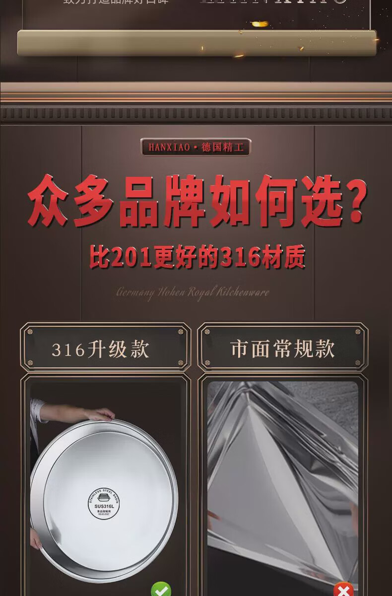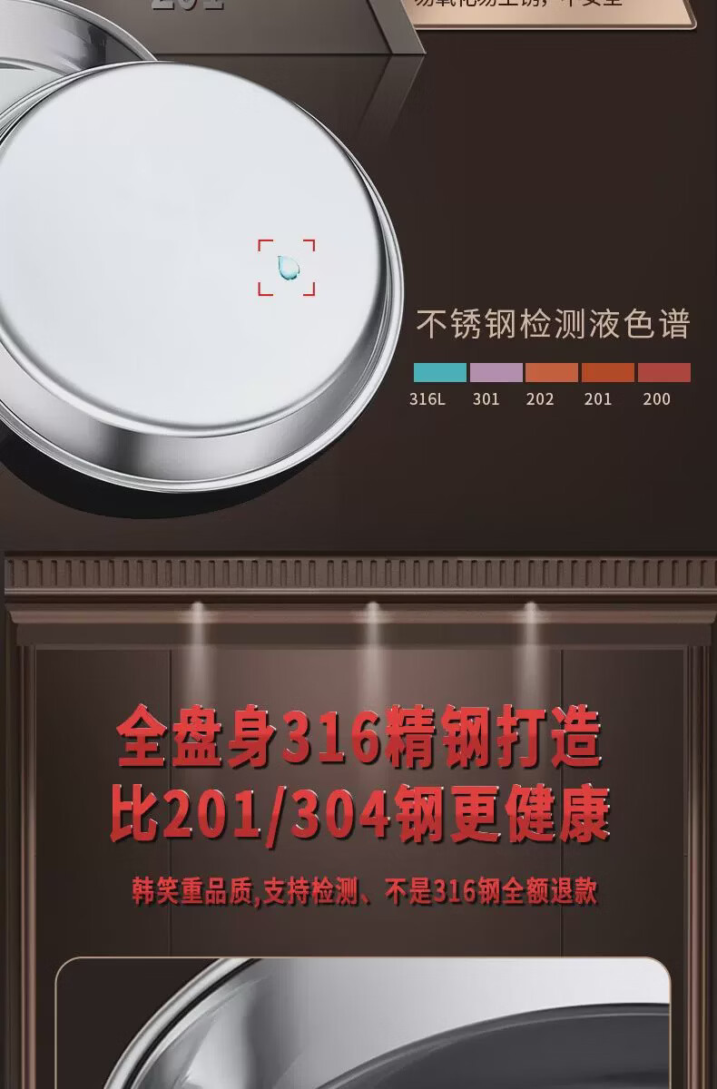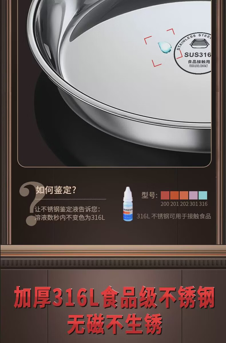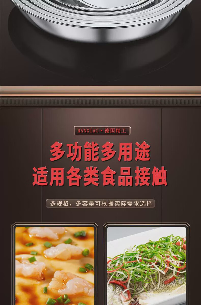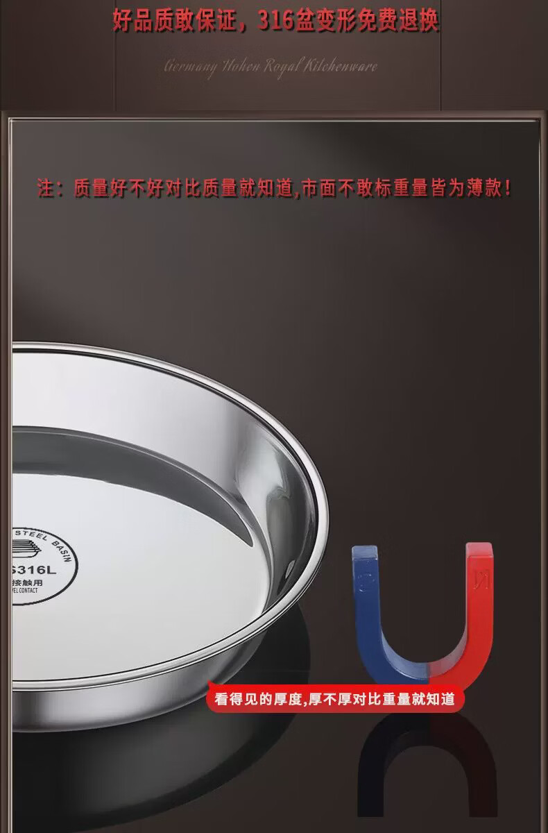 Fantasy food-grade stainless steel plate round plate household shallow plate cool skin steaming plate round tray dish plate thickened 316 stainless steel round plate 30cm