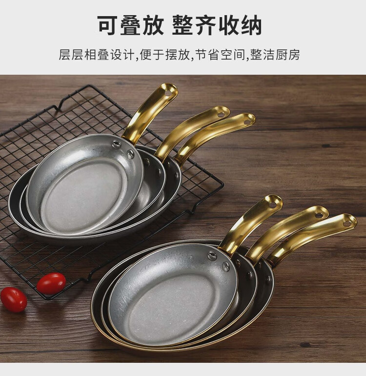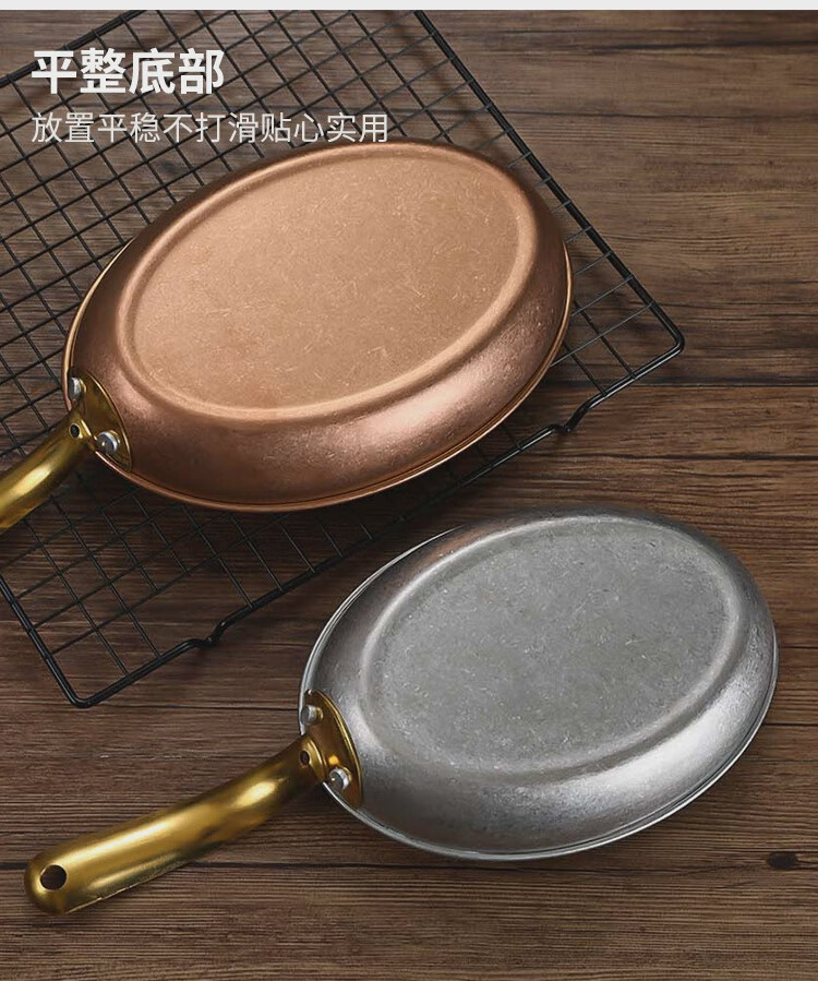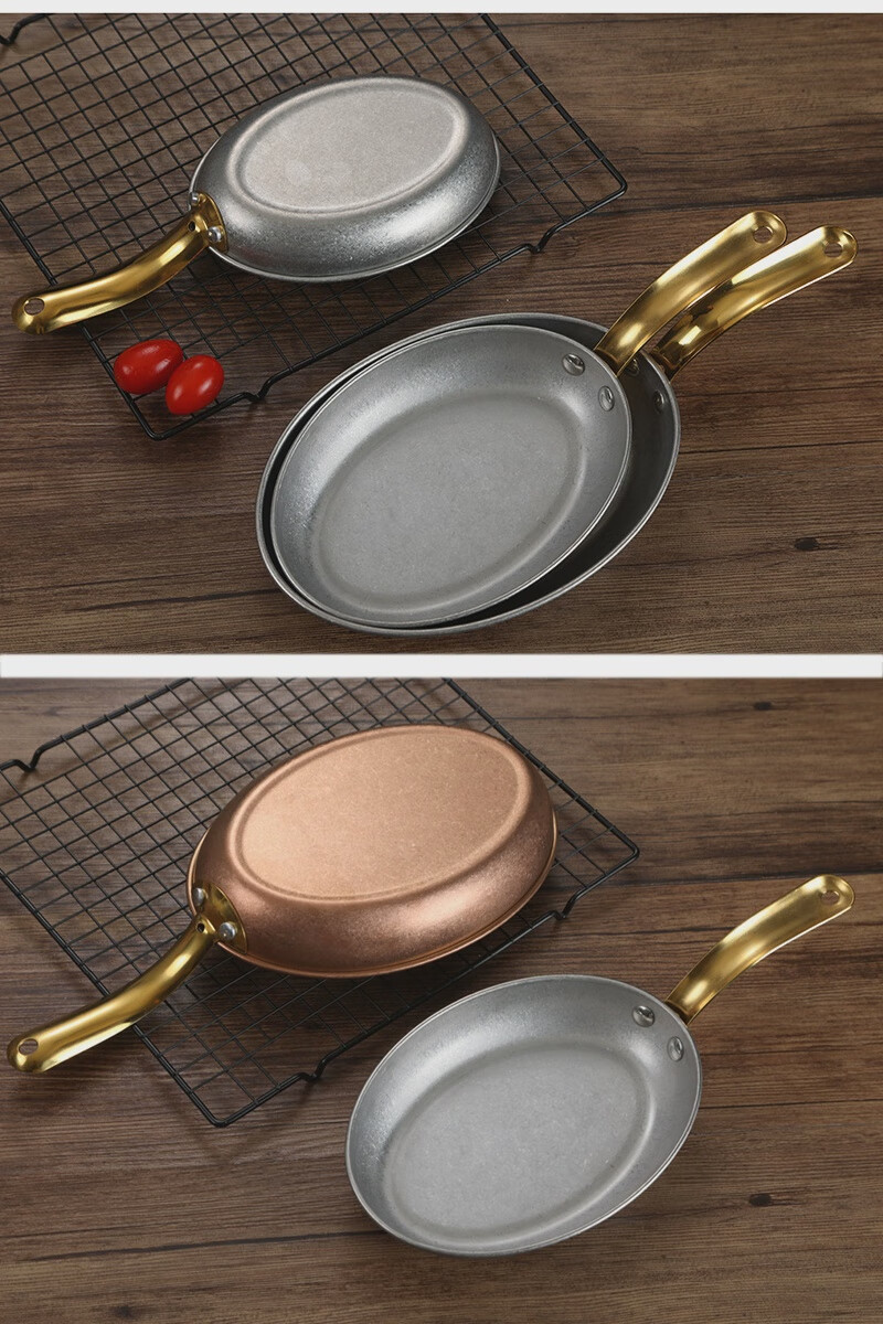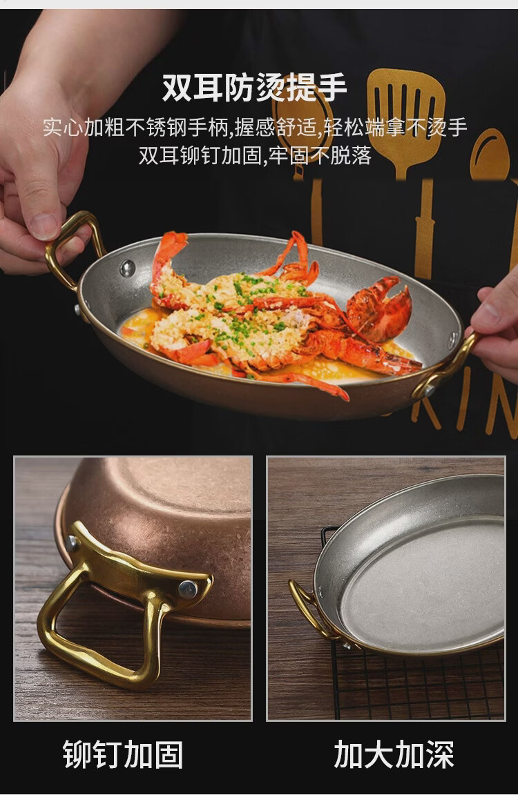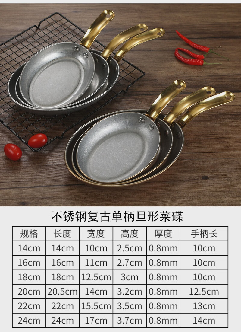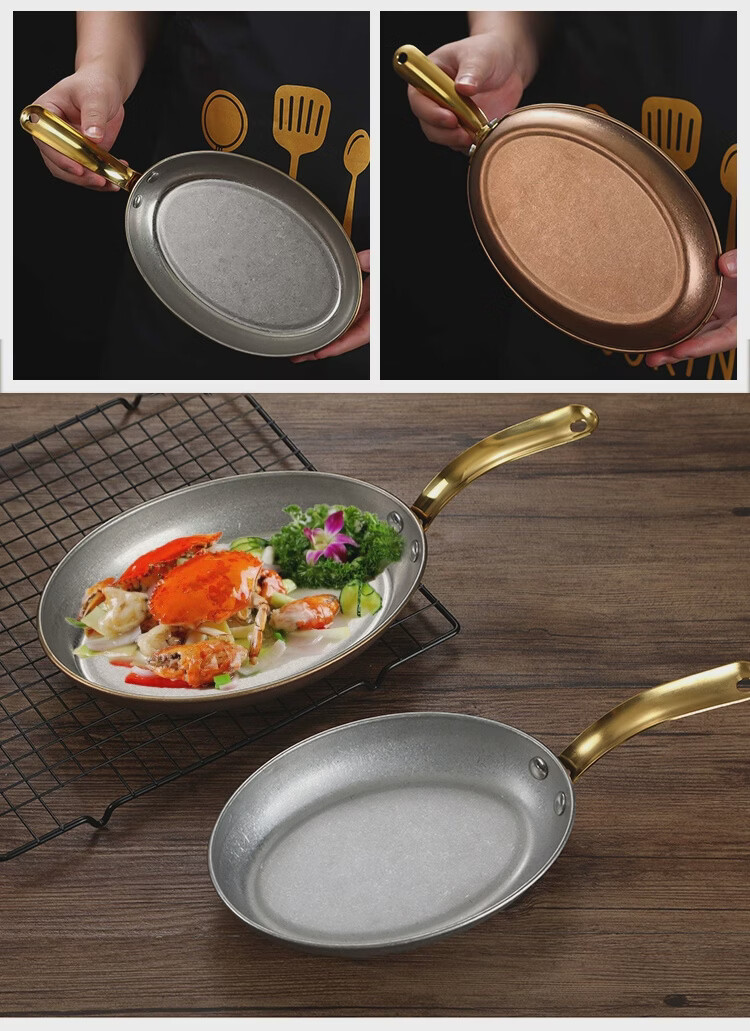 Fantasy Western-style food serving plate double-ear oval flat plate tray stainless steel seafood plate high-end steak retro double-ear dan-shaped gold flower plate 20.5cm