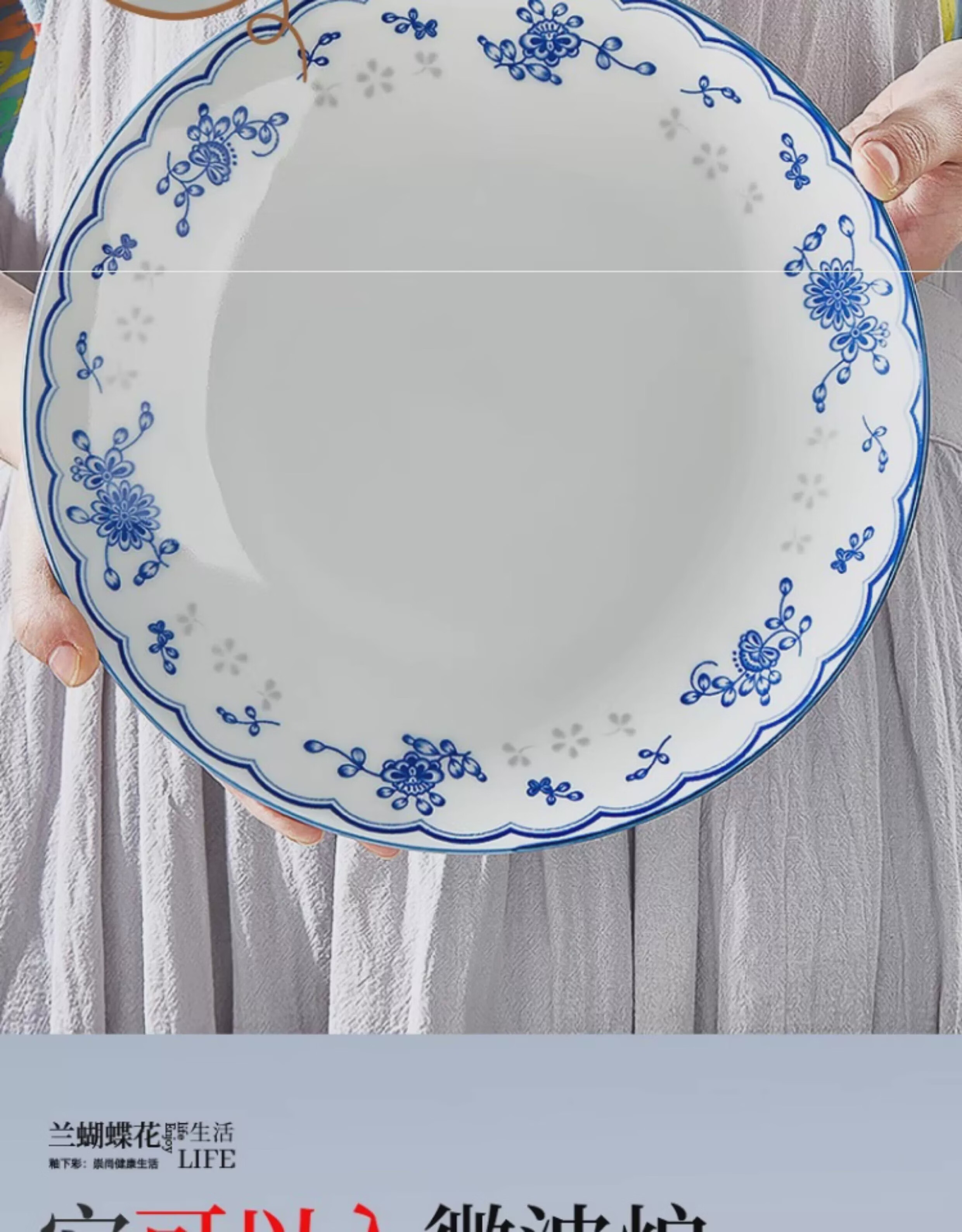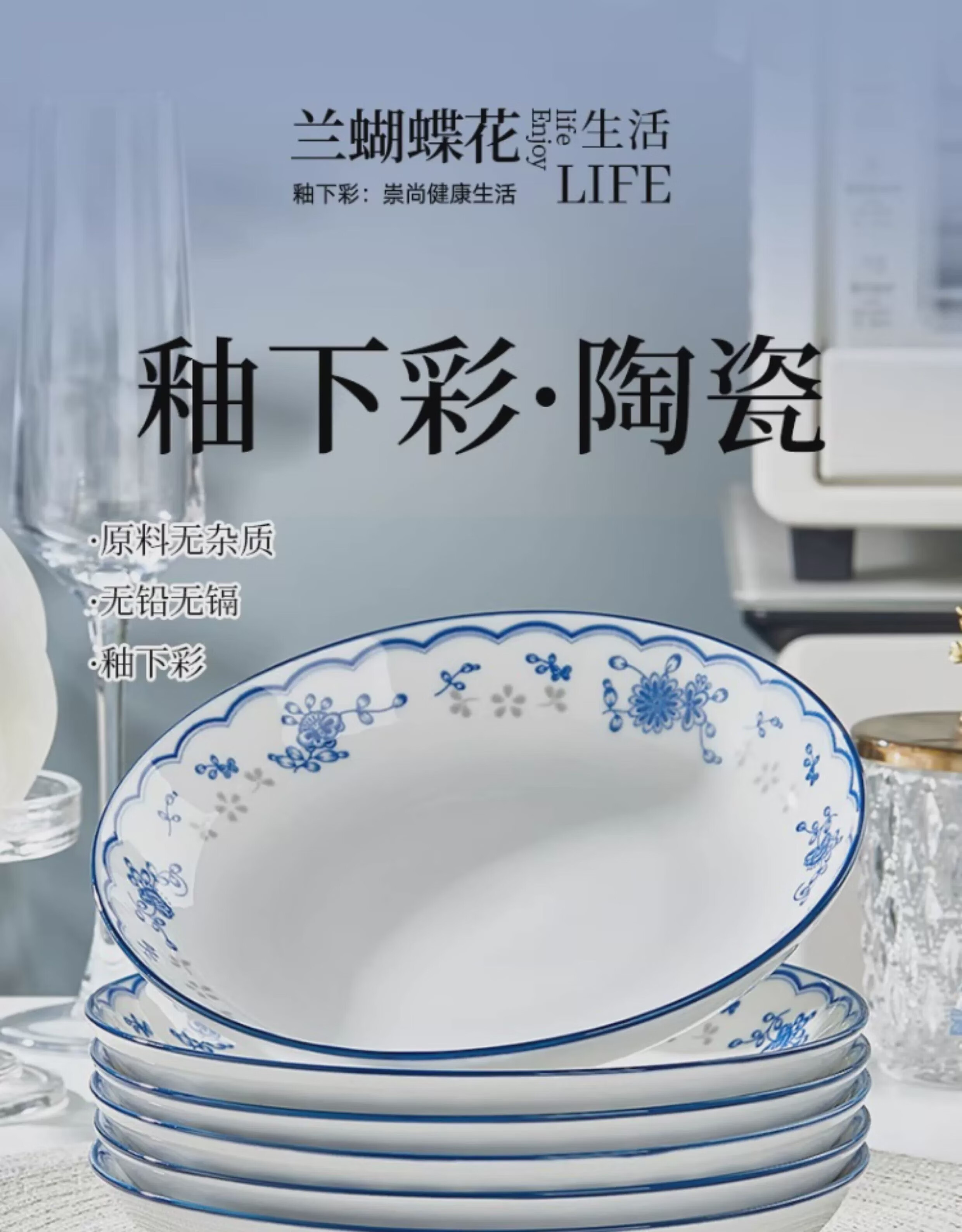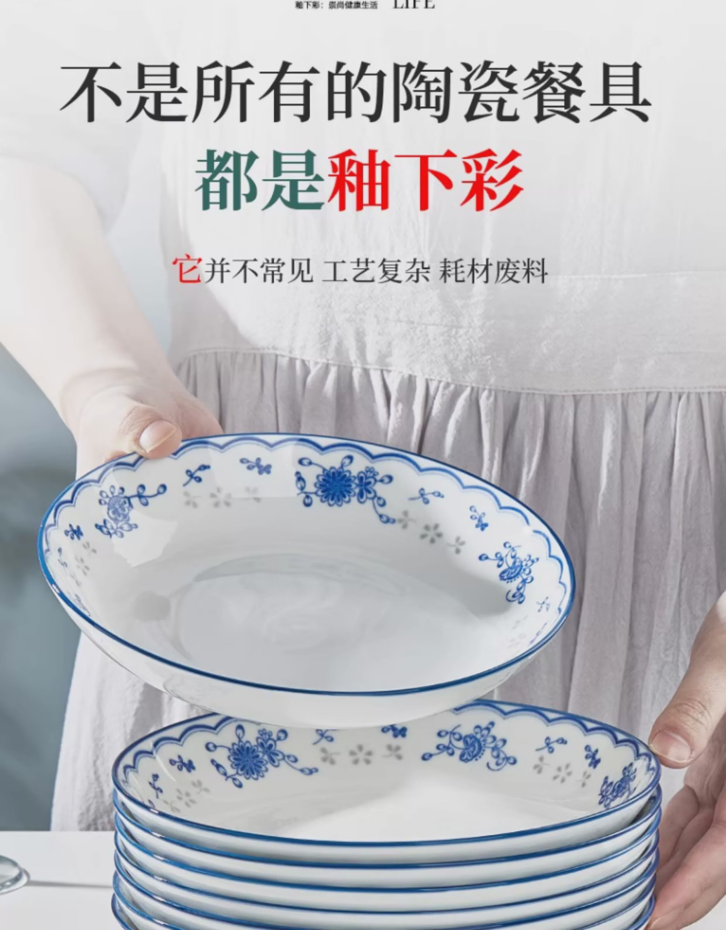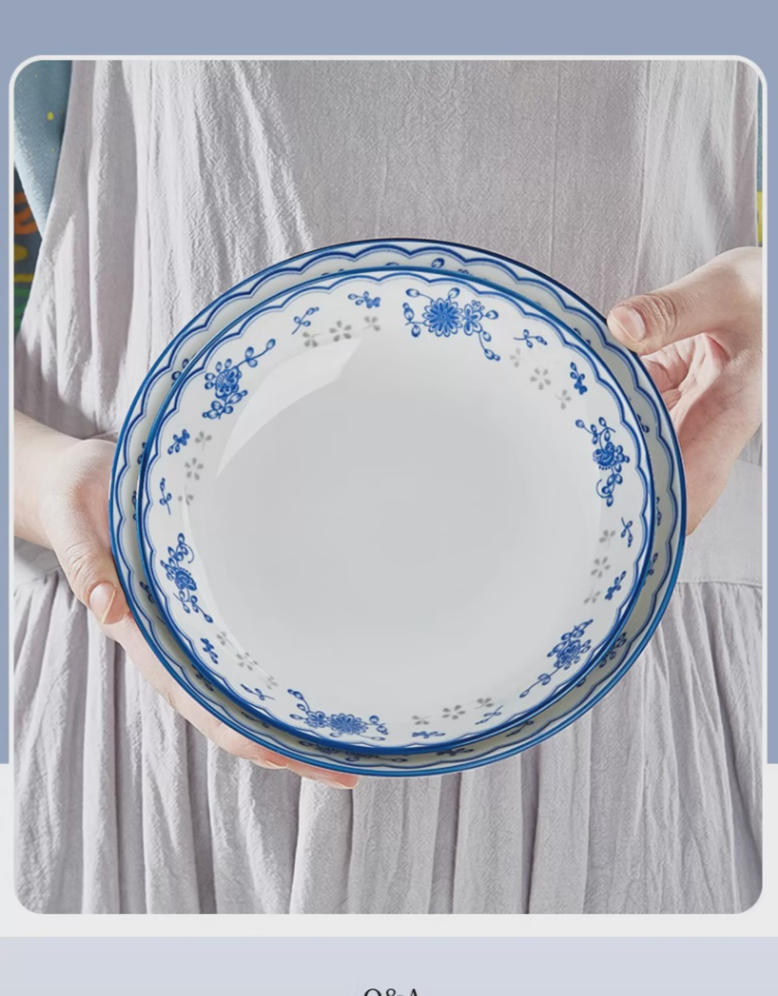 Fantasy plates, dishes, household underglaze color tableware, new ceramic plates, Chinese-style thickened bowls and plates, 10 bowls, 10 plates, 4.6-inch Jingde bowl + 8-inch round plate