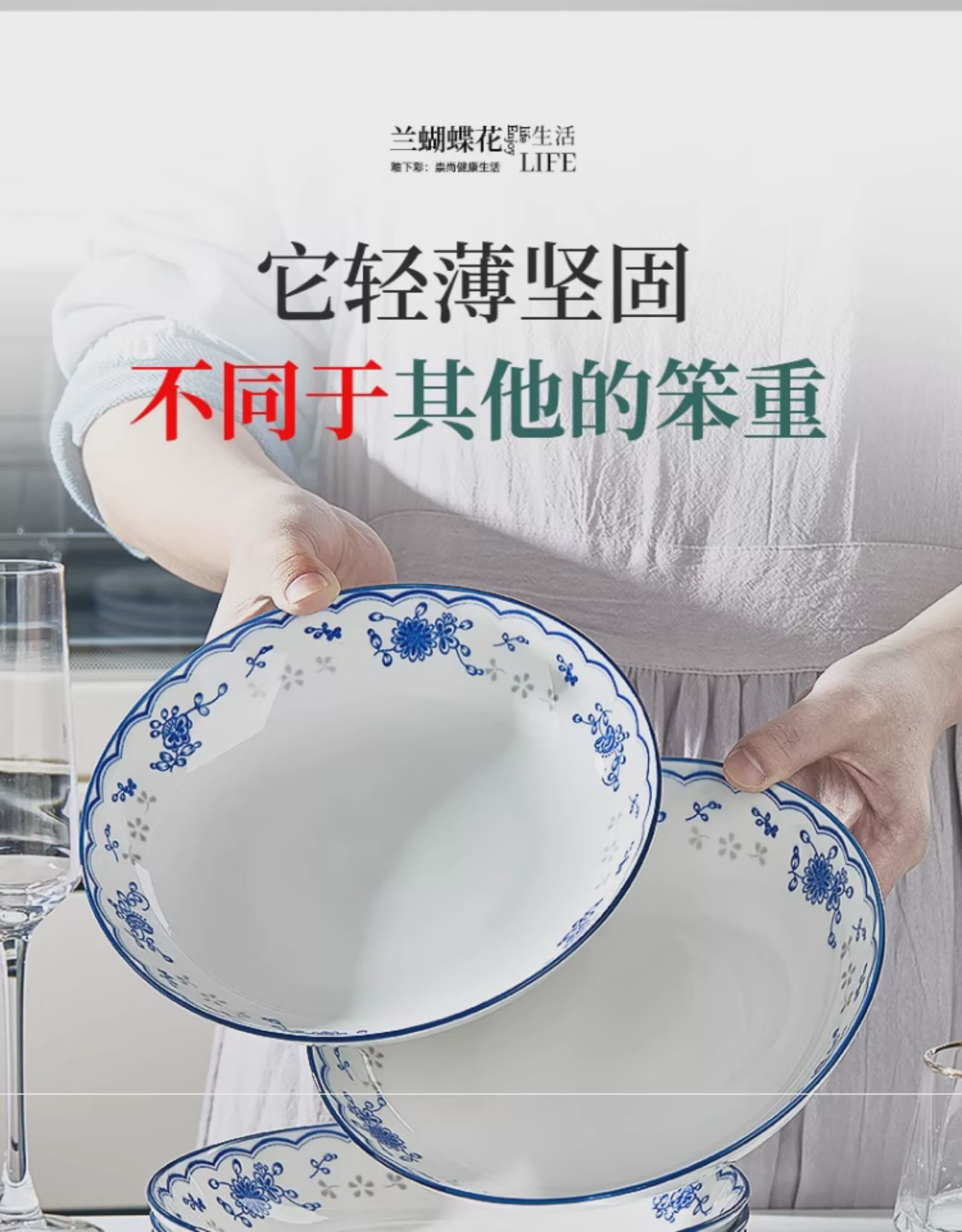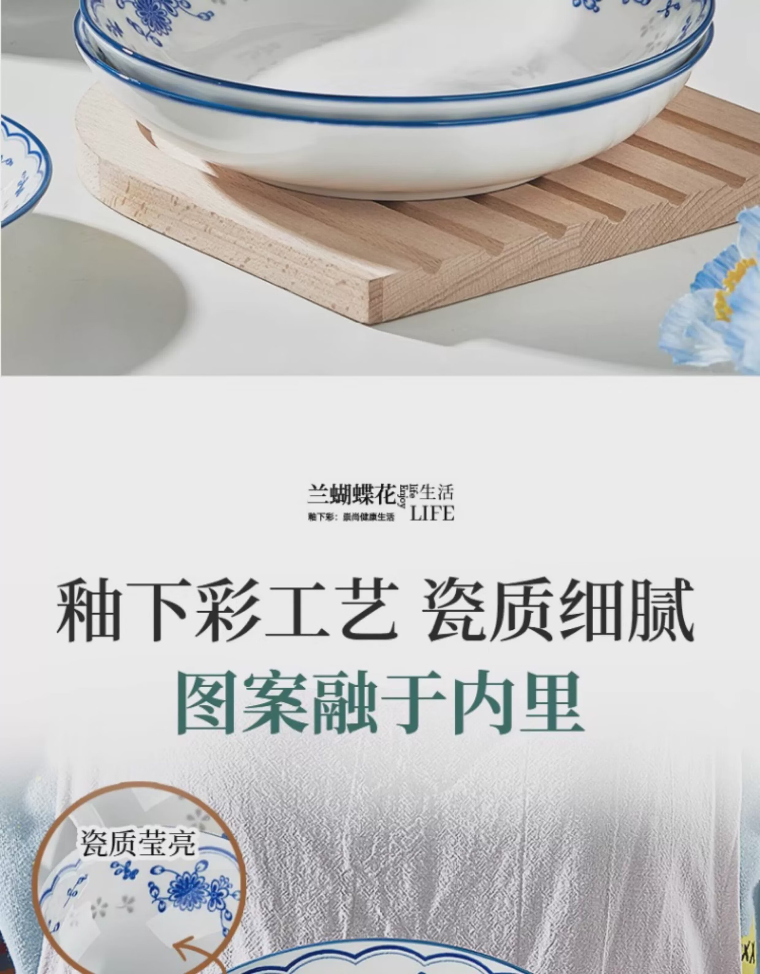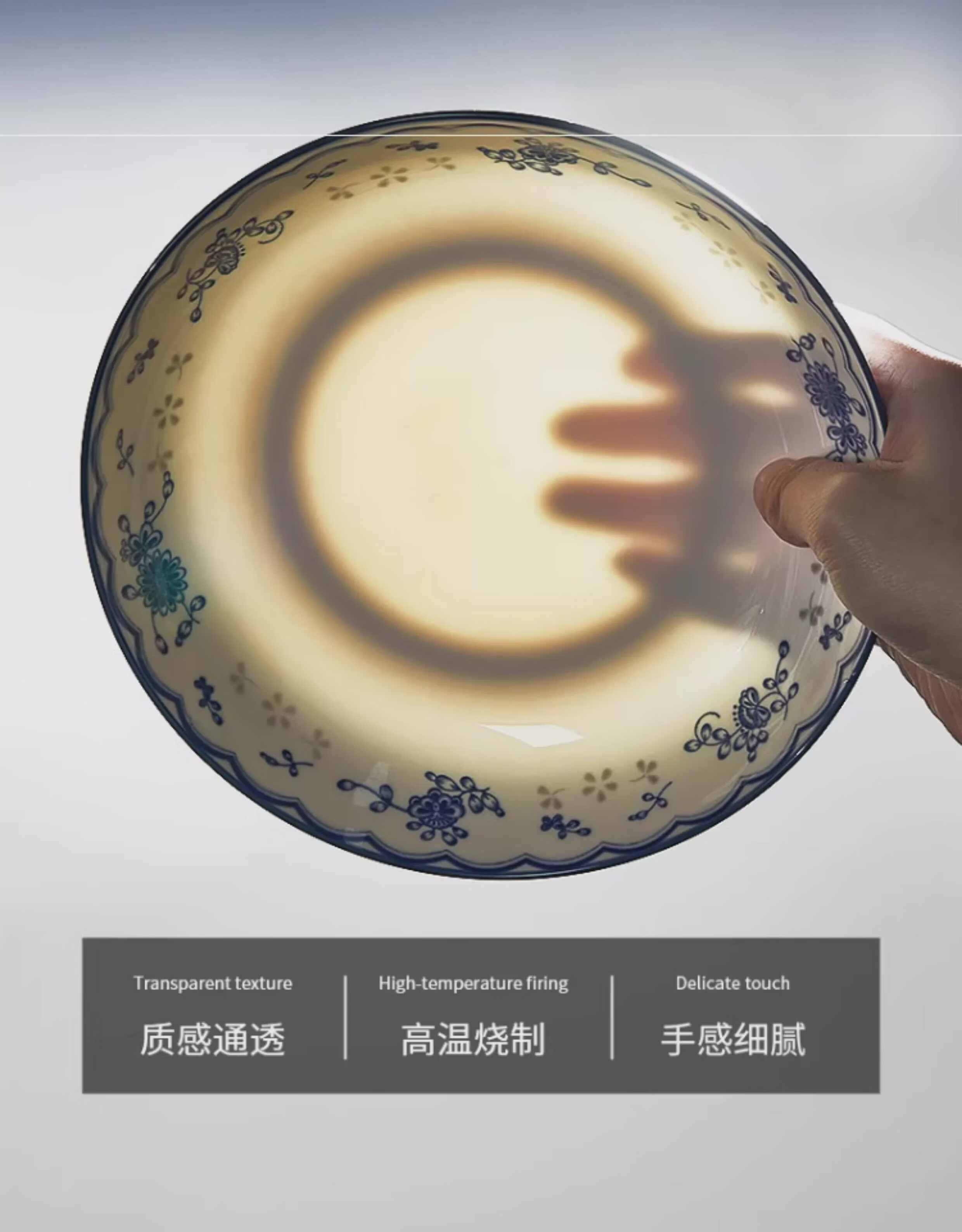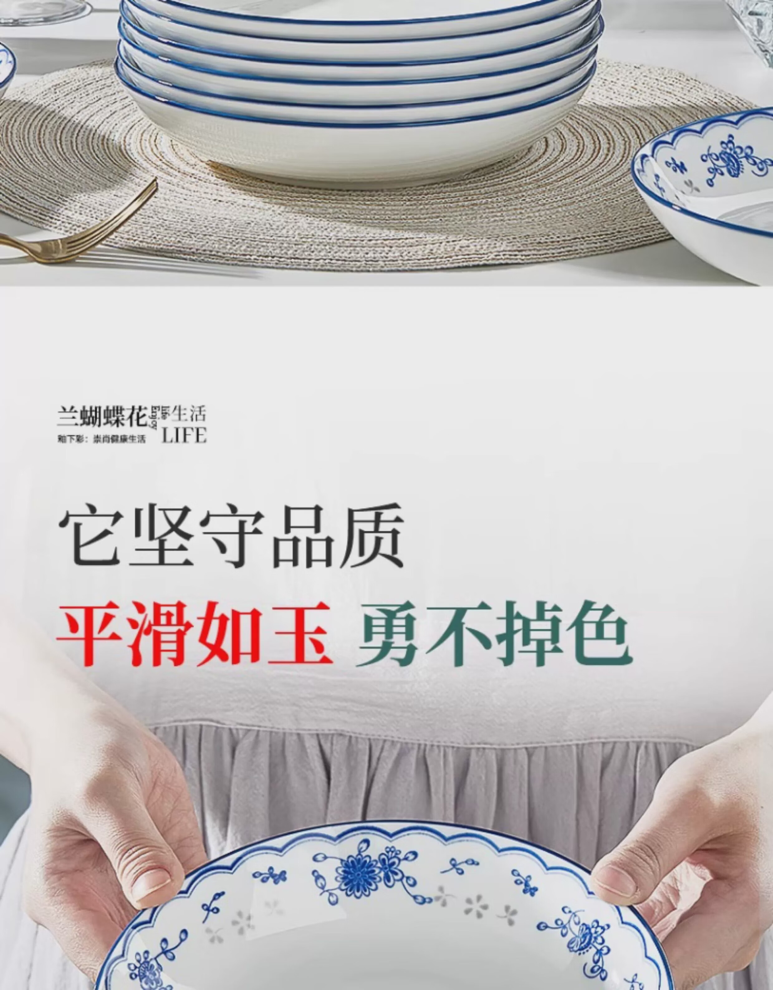Fantasy plates, dishes, household underglaze color tableware, new ceramic plates, Chinese-style thickened bowls and plates, 10 bowls, 10 plates, 4.6-inch Jingde bowl + 8-inch round plate