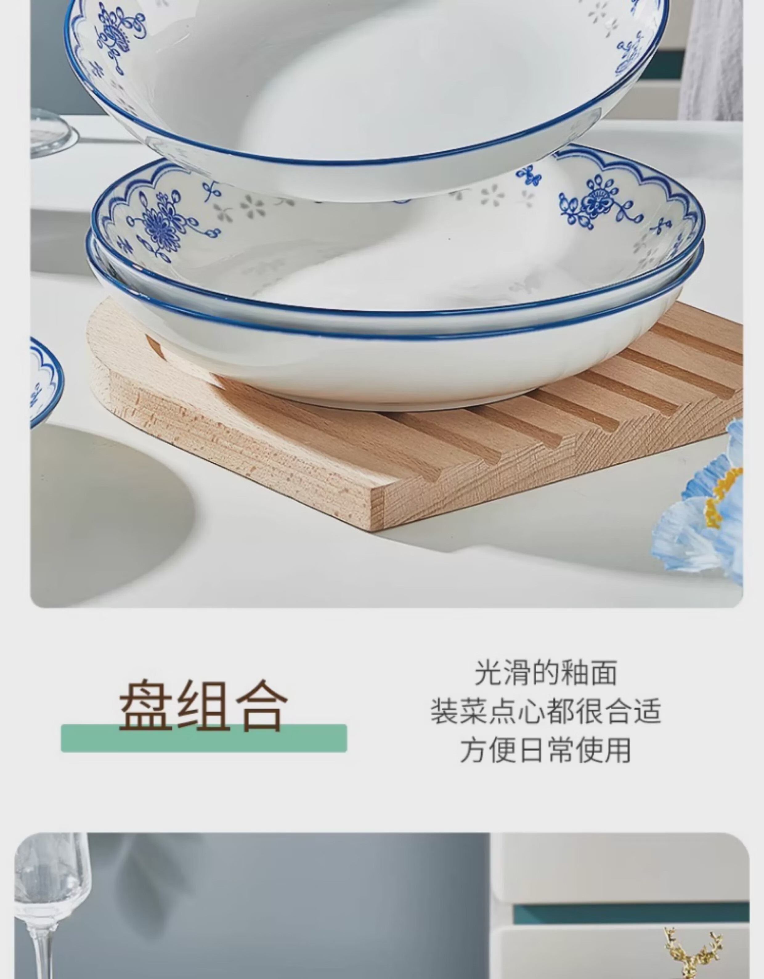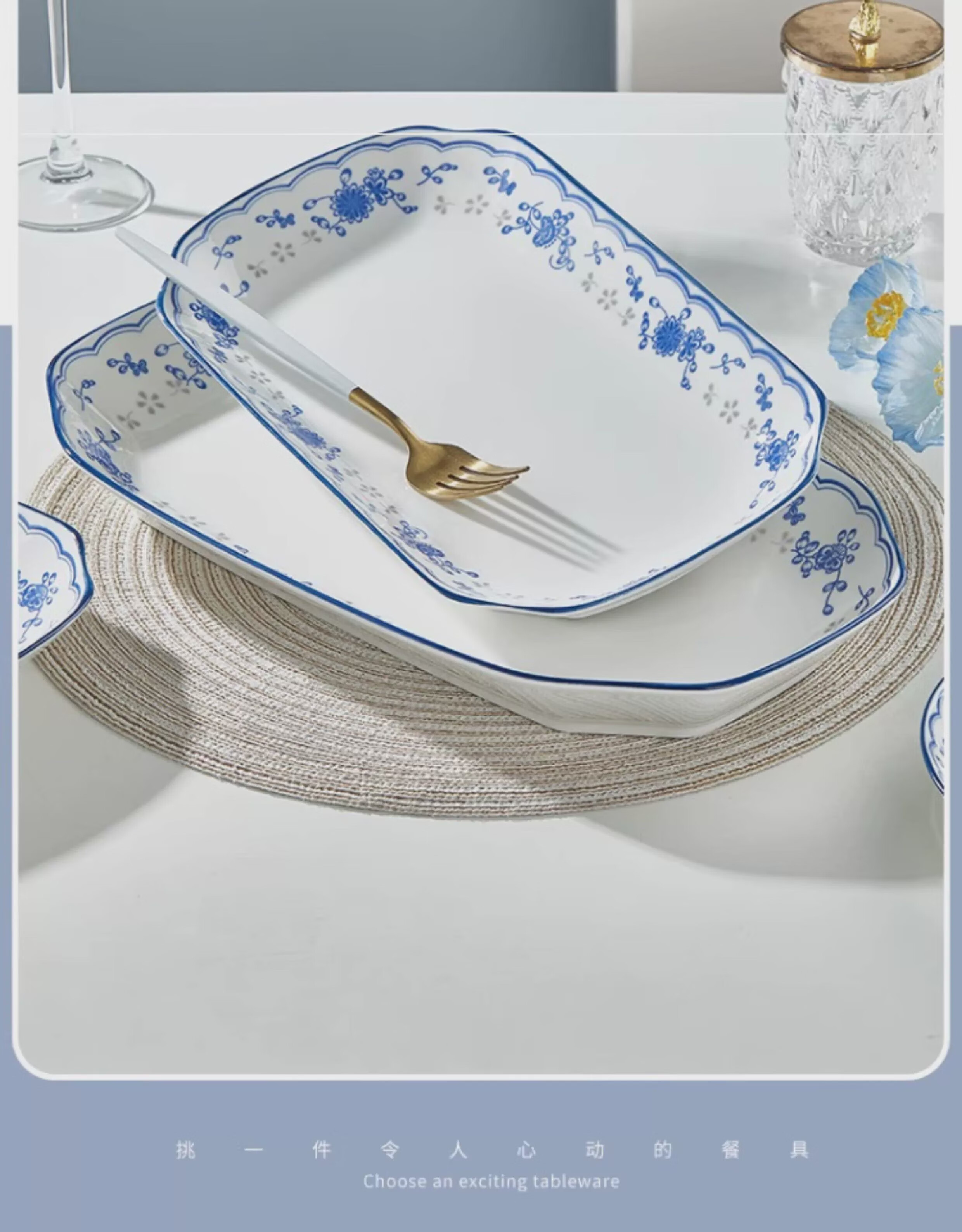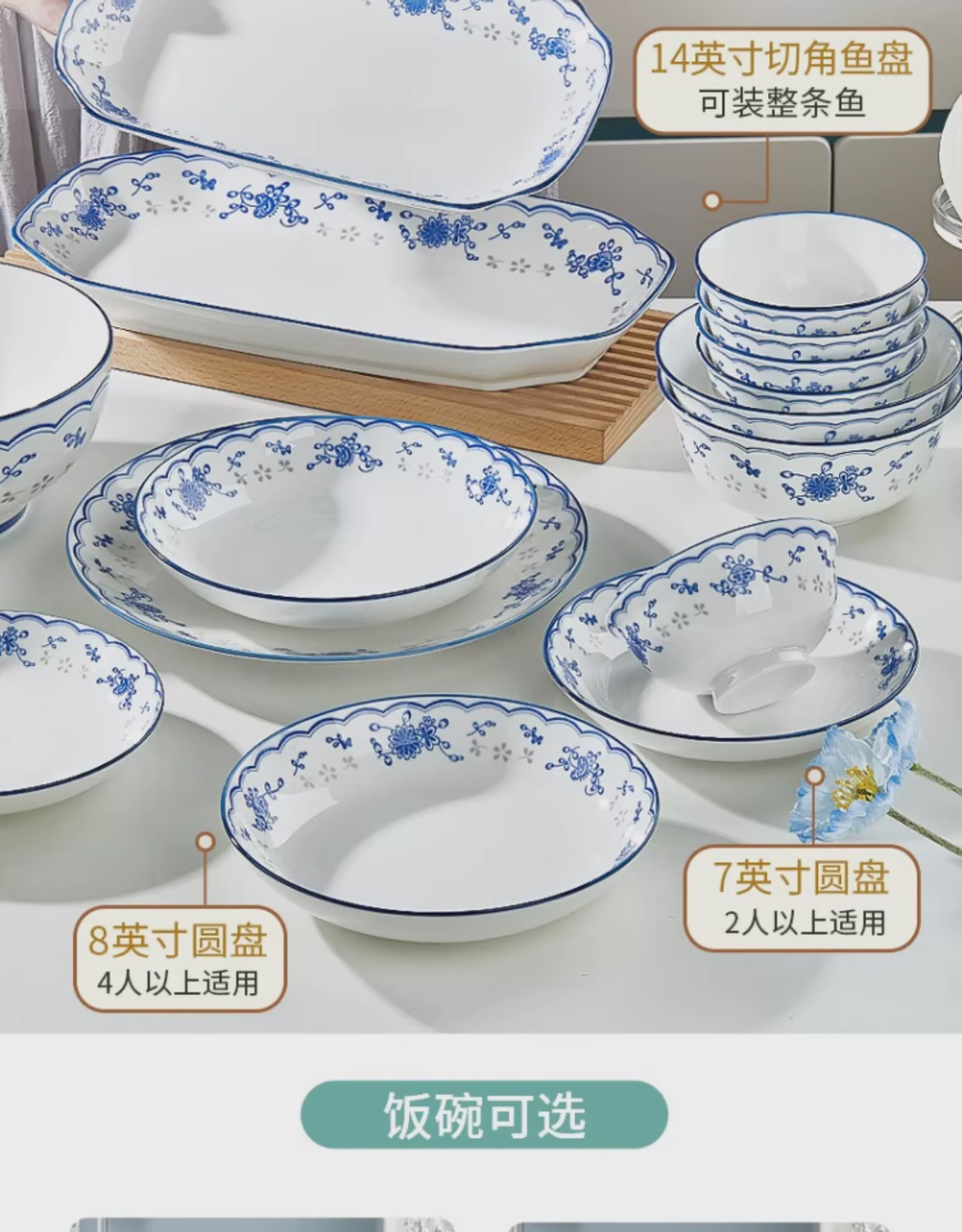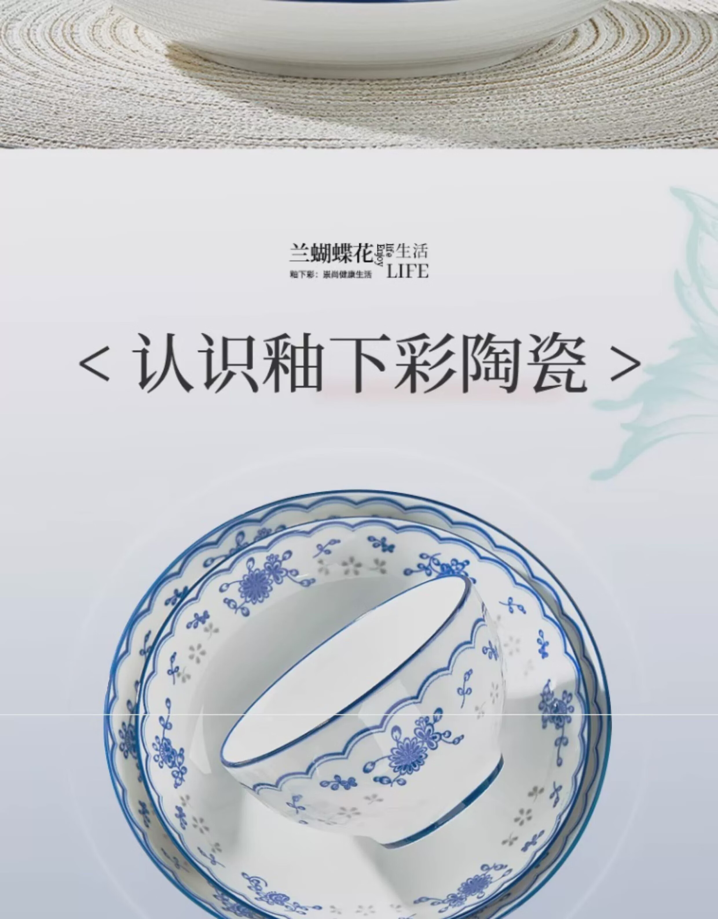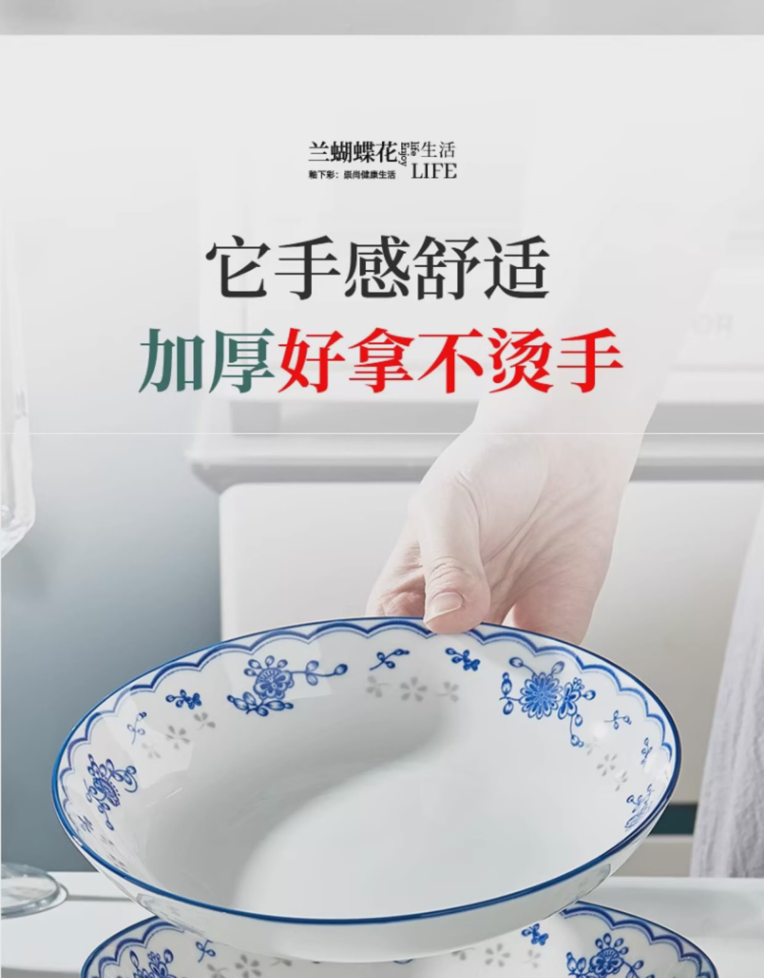 Fantasy plates, dishes, household underglaze color tableware, new ceramic plates, Chinese-style thickened bowls and plates, 10 bowls, 10 plates, 4.6-inch Jingde bowl + 8-inch round plate