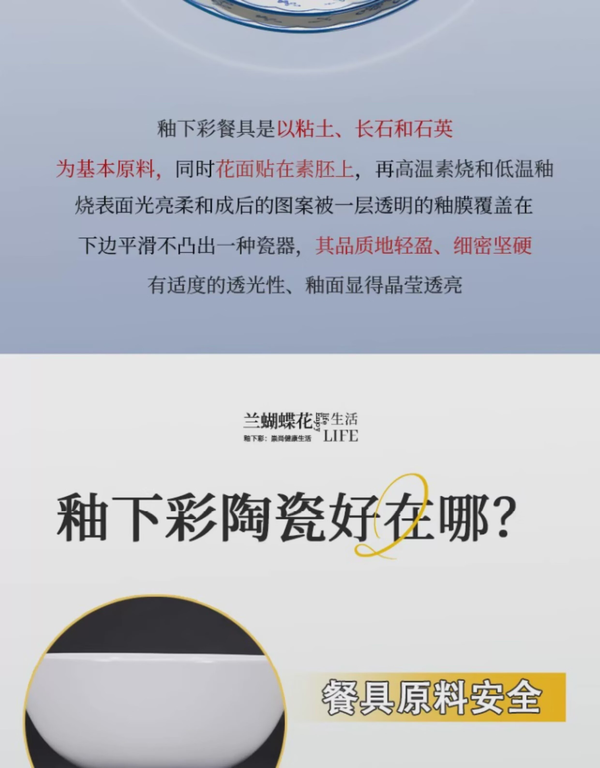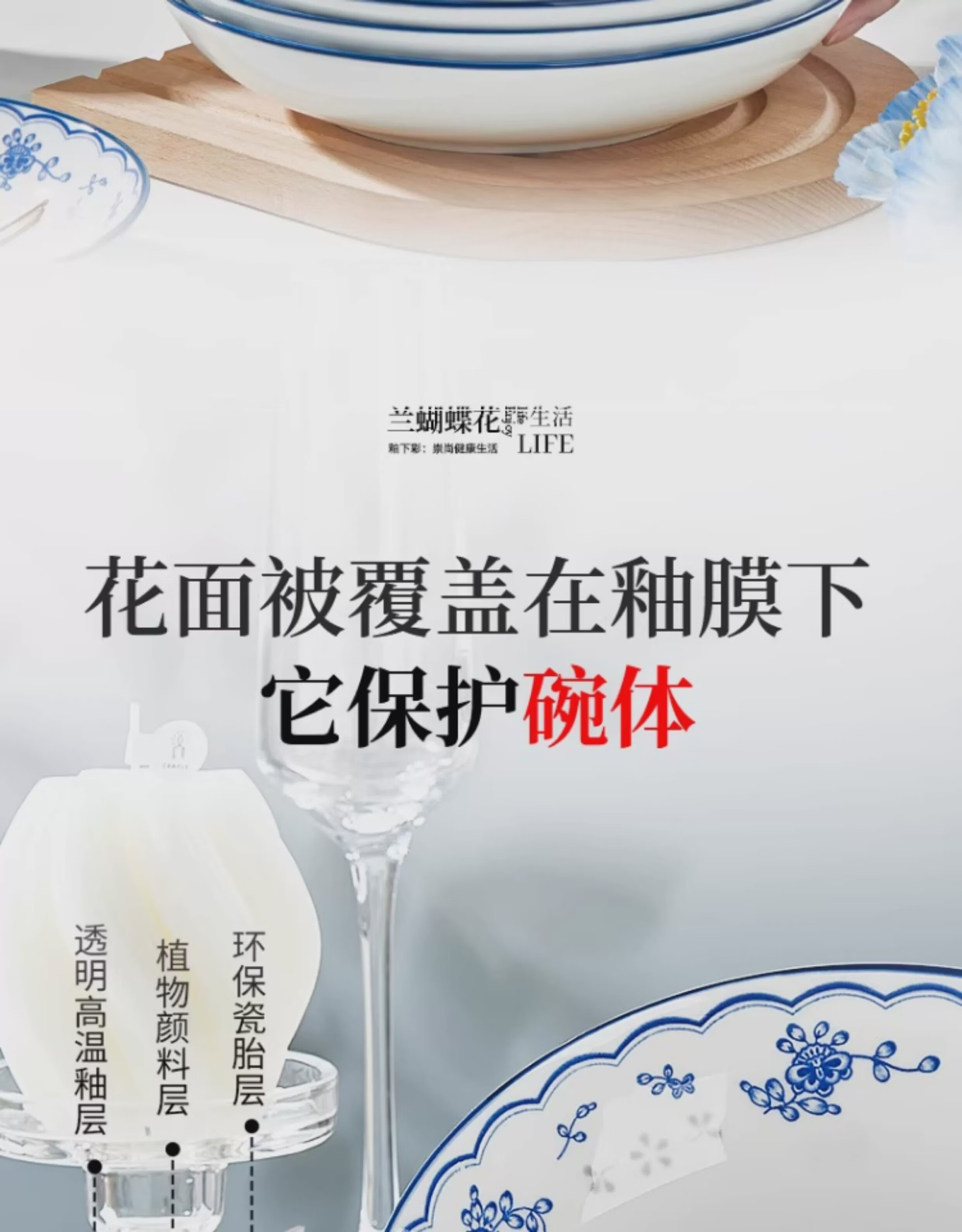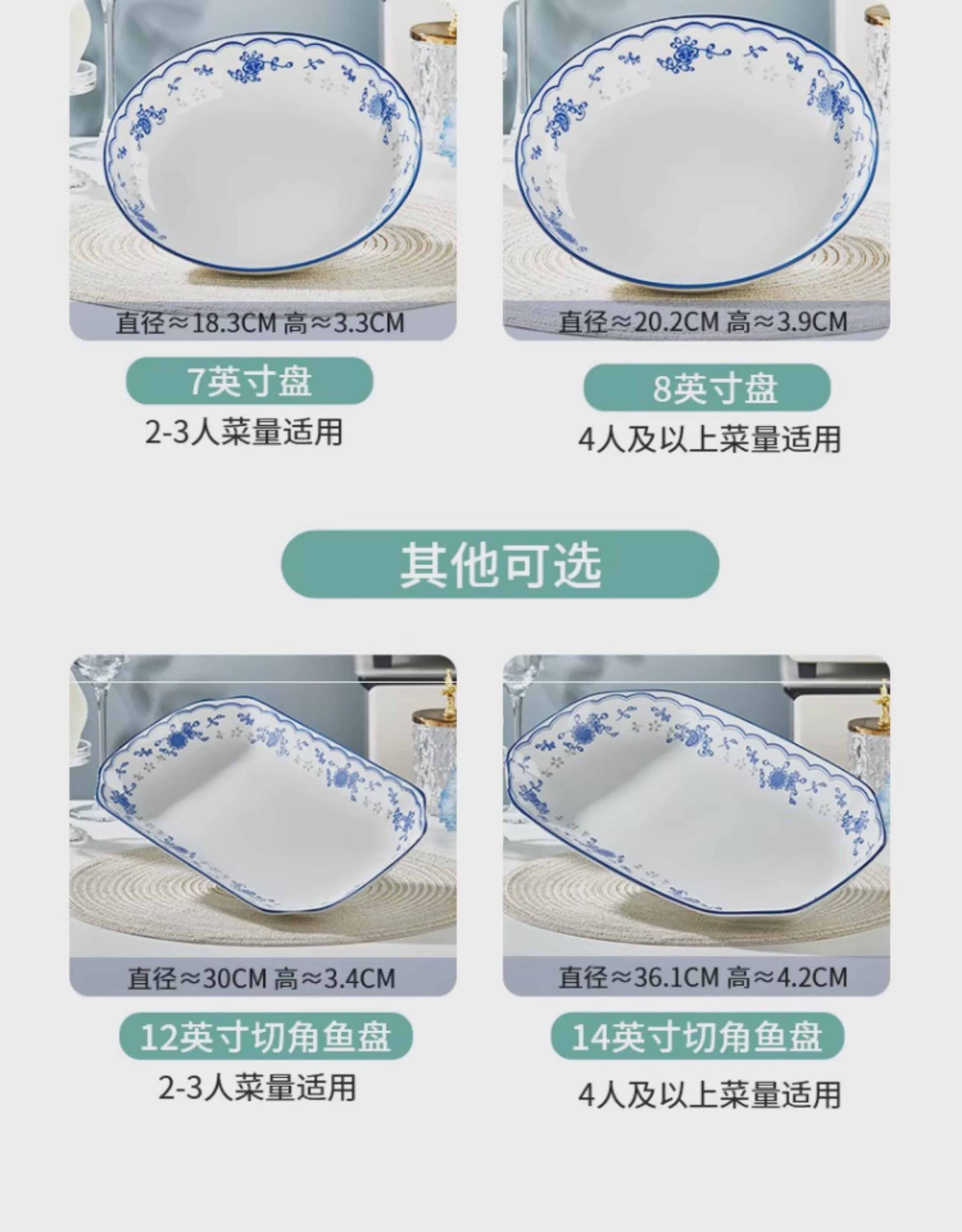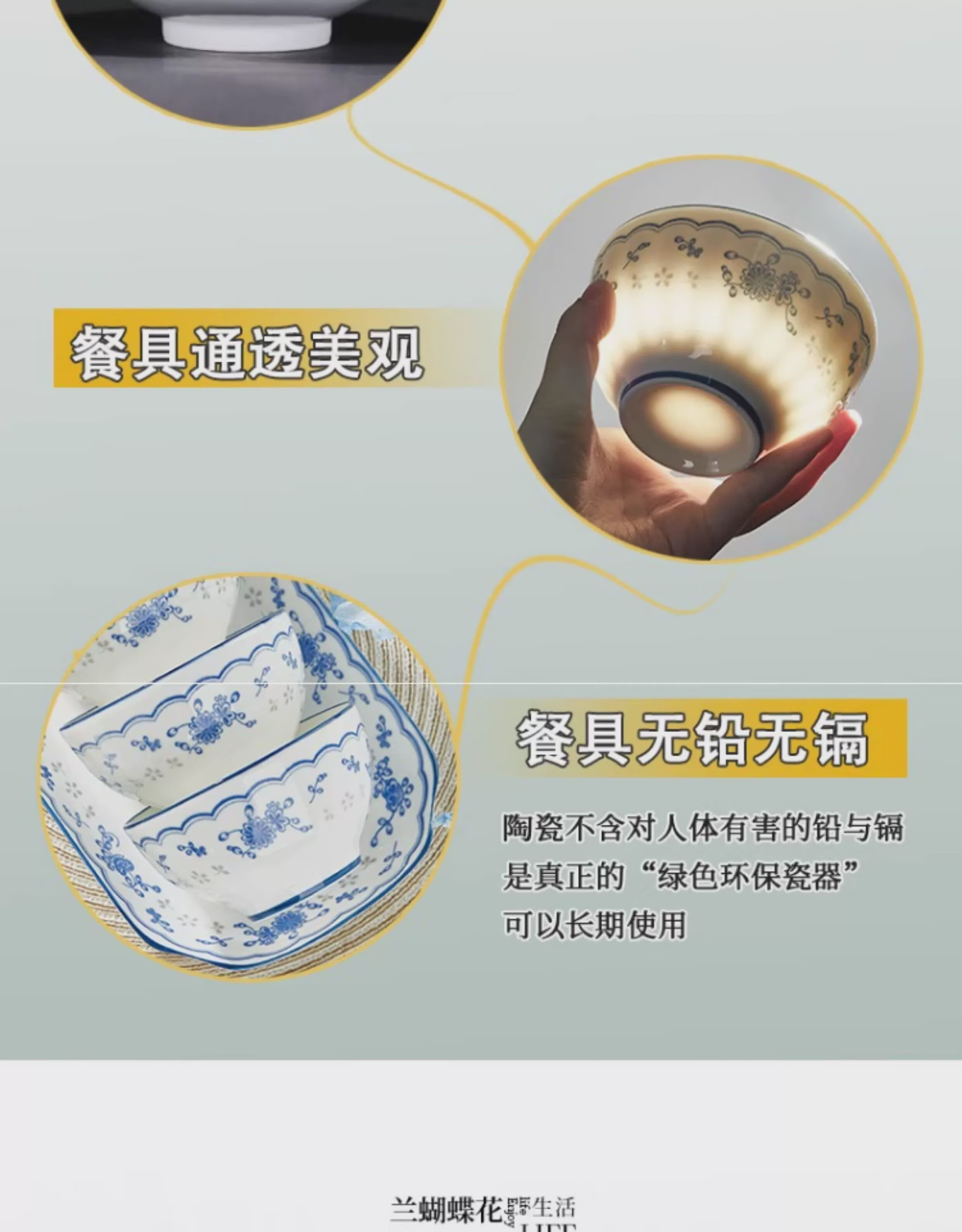 Fantasy plates, dishes, household underglaze color tableware, new ceramic plates, Chinese-style thickened bowls and plates, 10 bowls, 10 plates, 4.6-inch Jingde bowl + 8-inch round plate