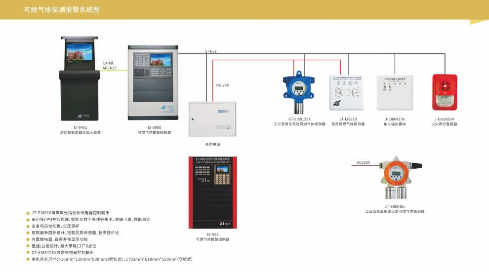 Bengbu Yiai fire combustible gas alarm controller household type detection gas natural gas combustible gas host 8800L (128_points)
