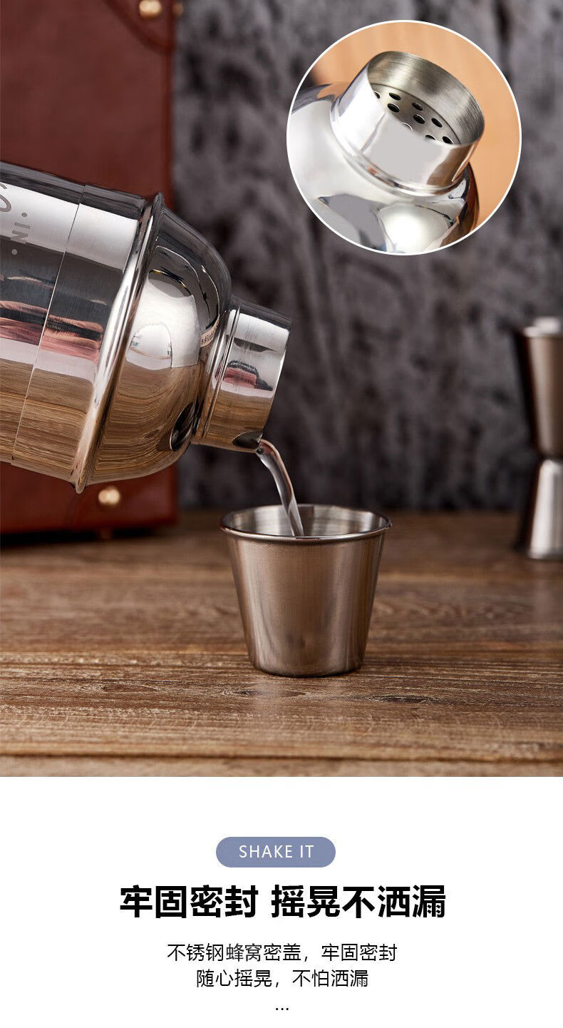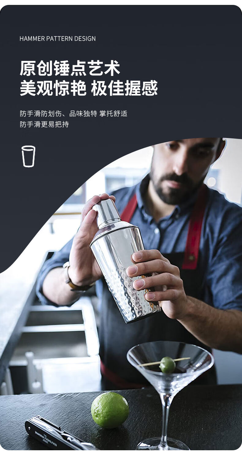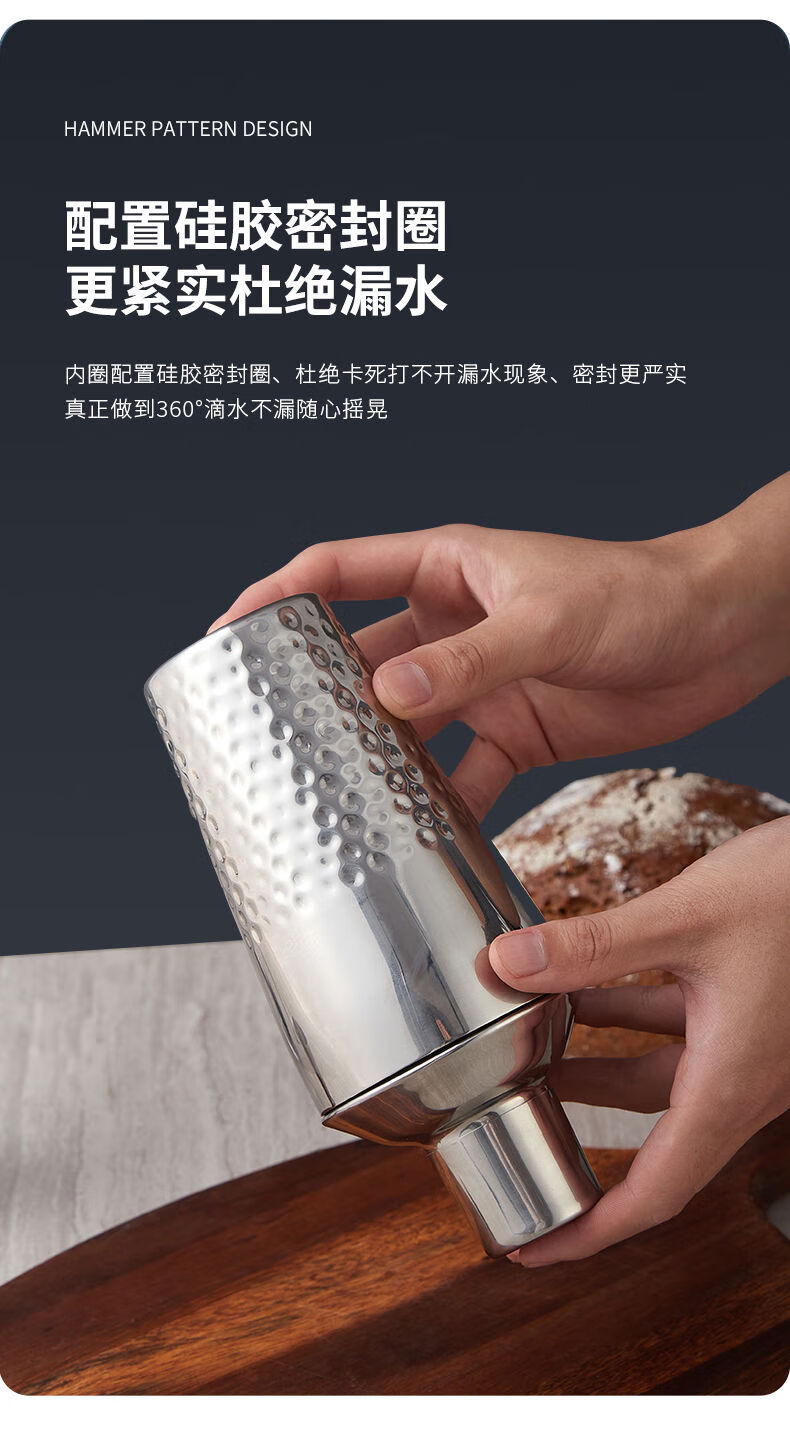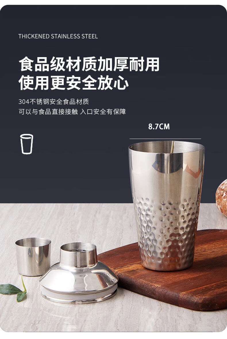 Thickened 304 stainless steel shaker cocktail set hand shaker bar shaker 700ml hammer dot silver 600ml 4-piece set recommended for beginners