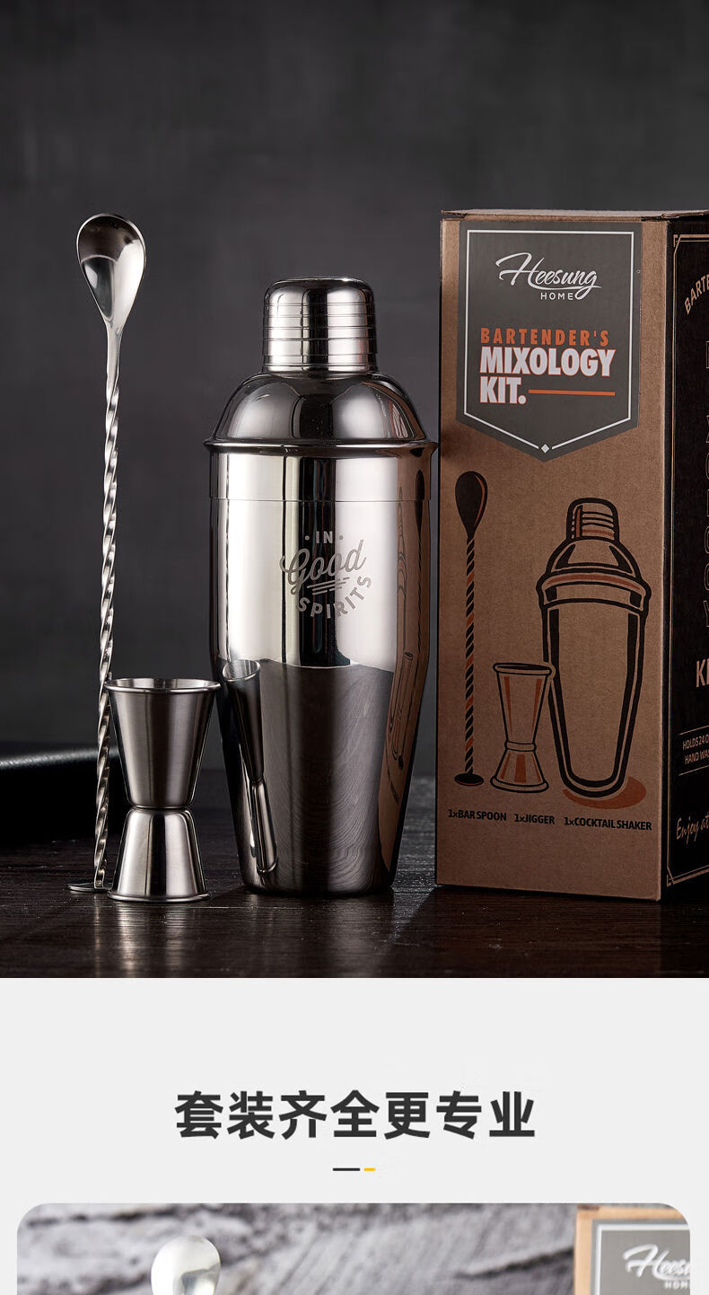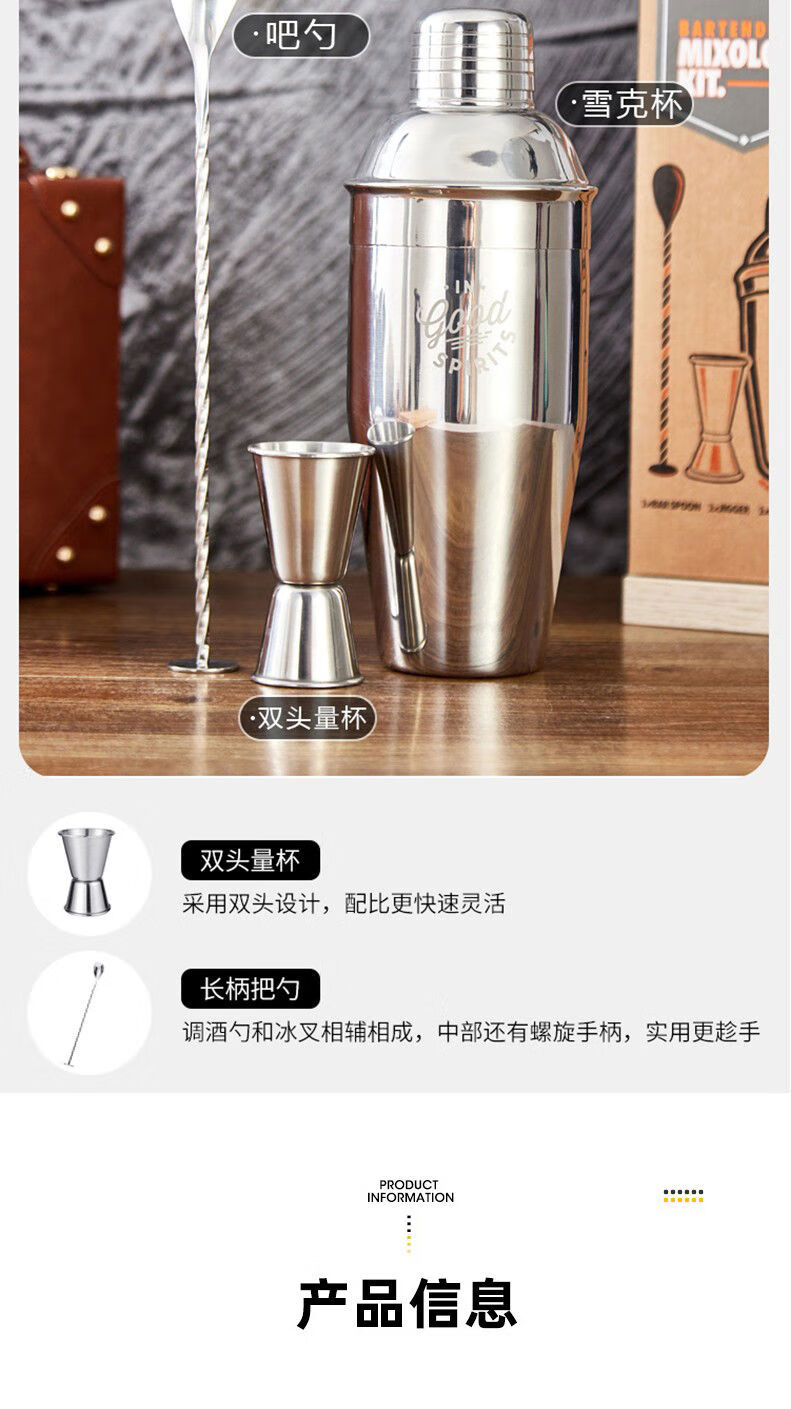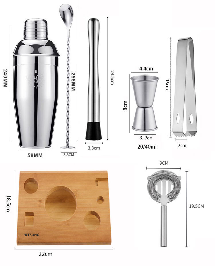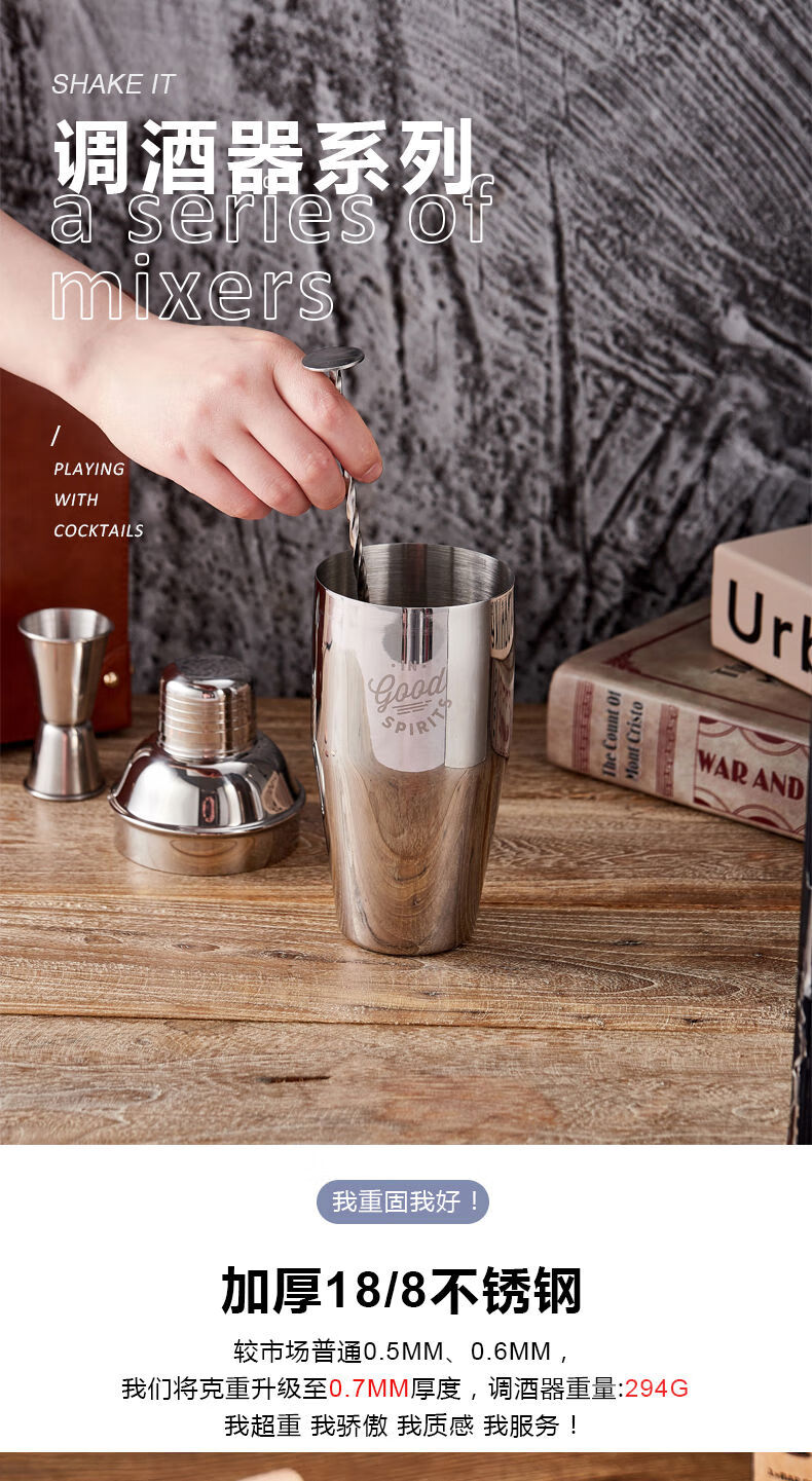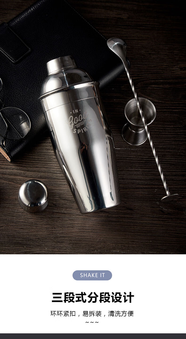 Thickened 304 stainless steel shaker cocktail set hand shaker bar shaker 700ml hammer dot silver 600ml 4-piece set recommended for beginners