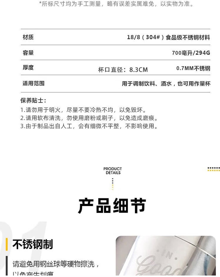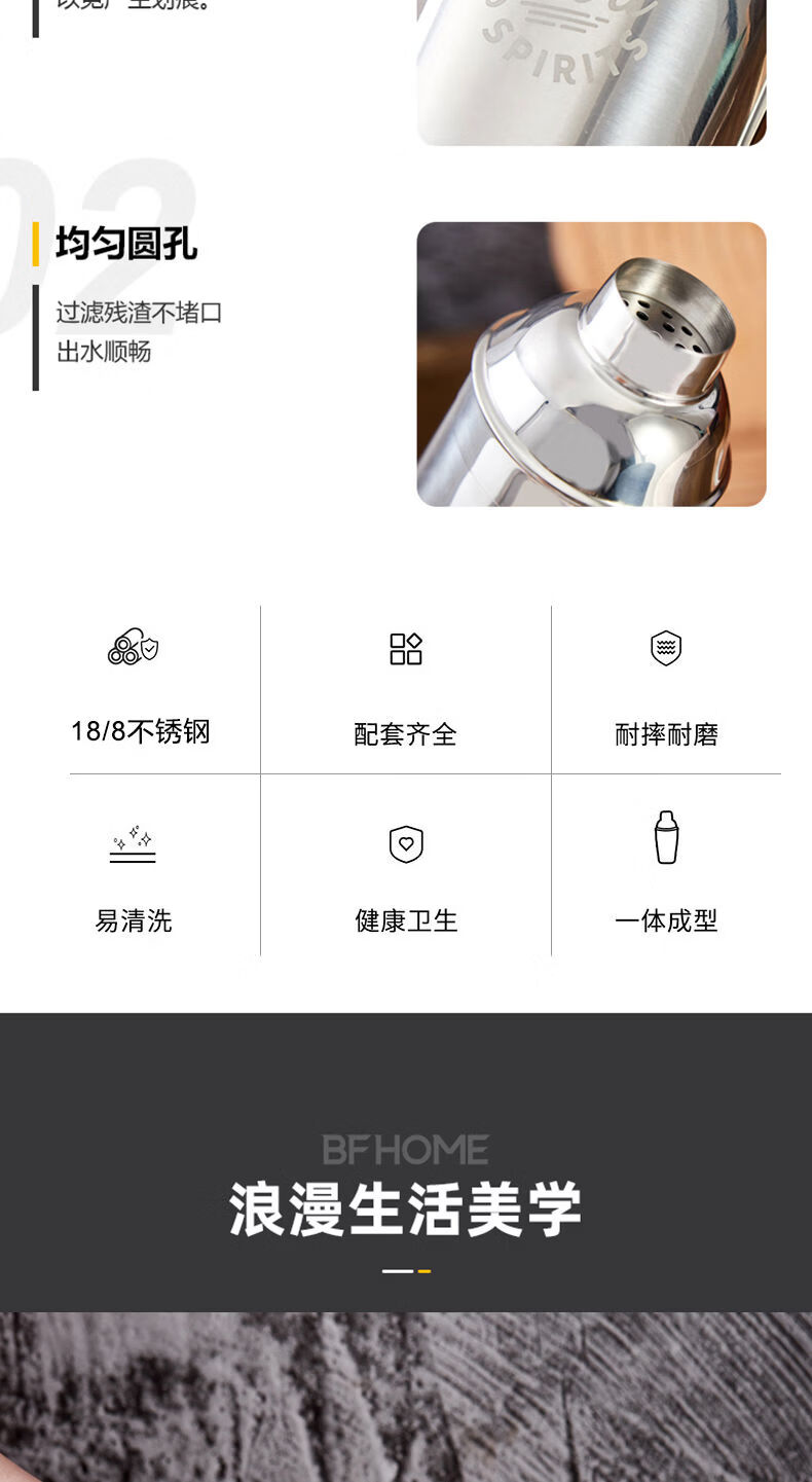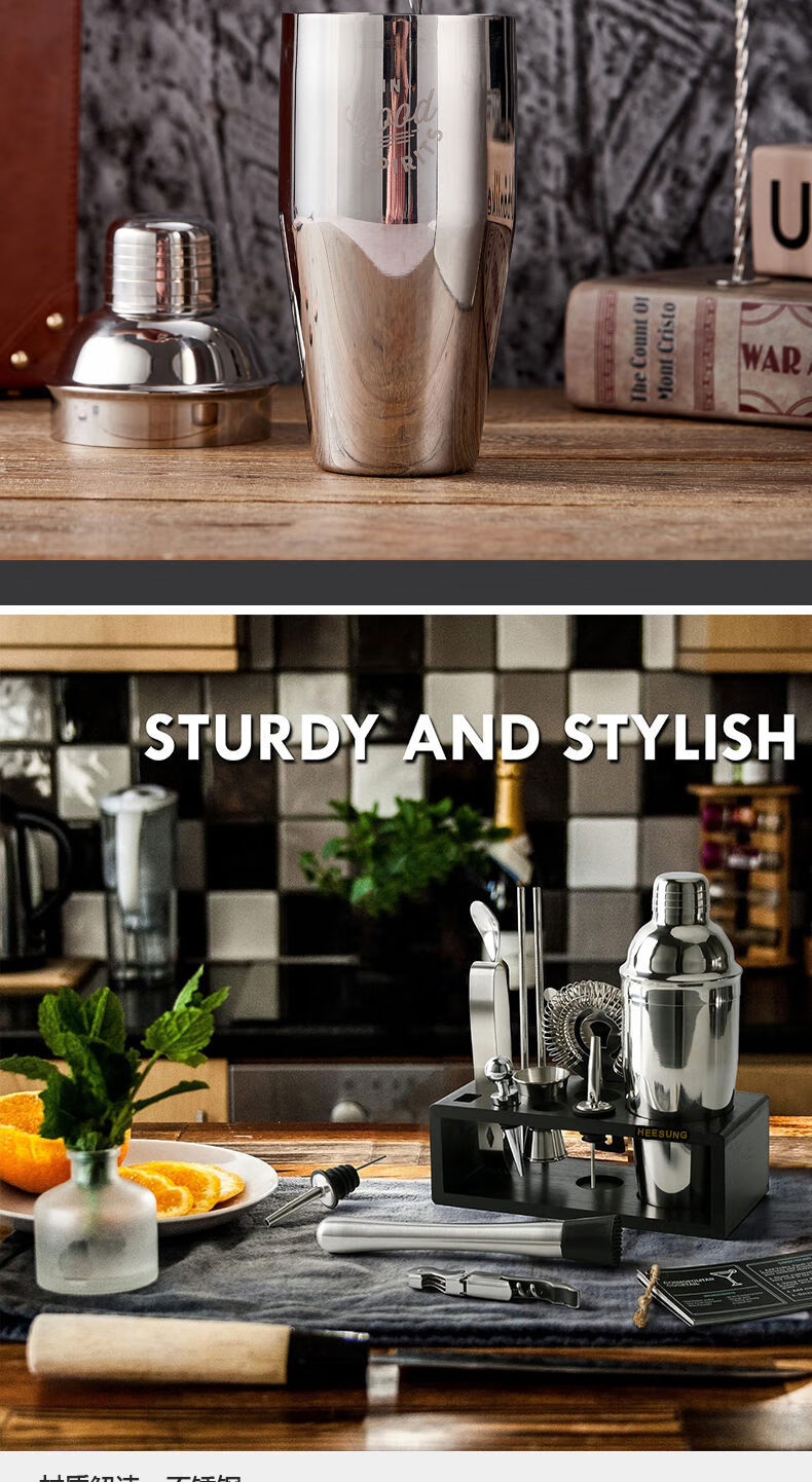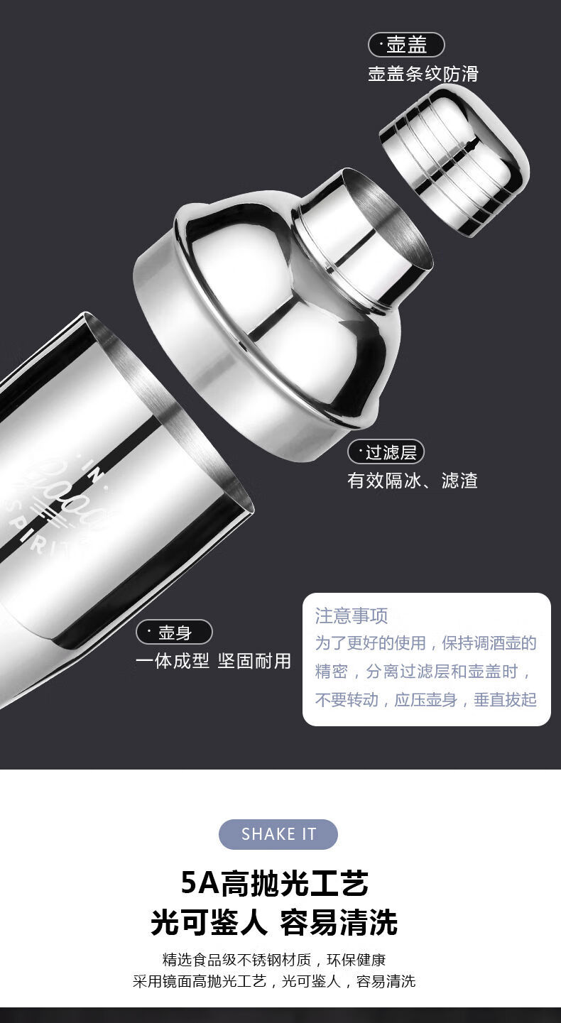 Thickened 304 stainless steel shaker cocktail set hand shaker bar shaker 700ml hammer dot silver 600ml 4-piece set recommended for beginners