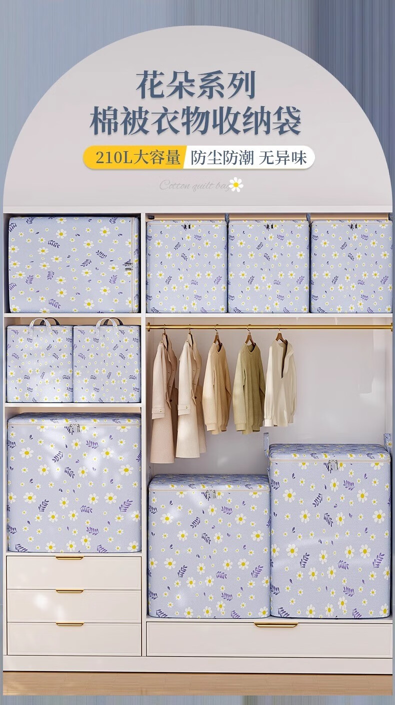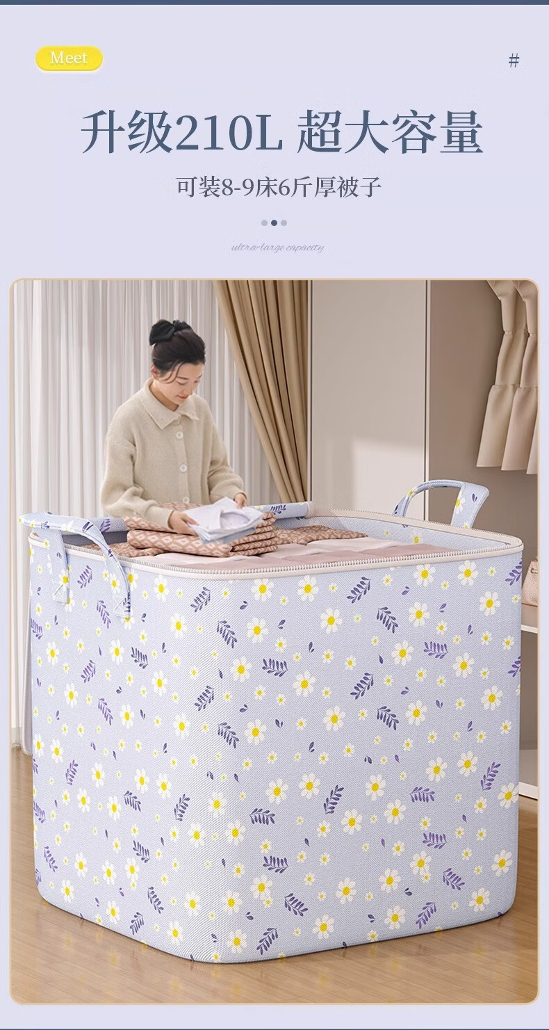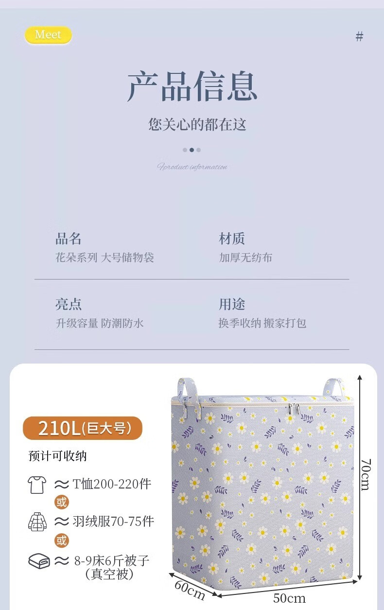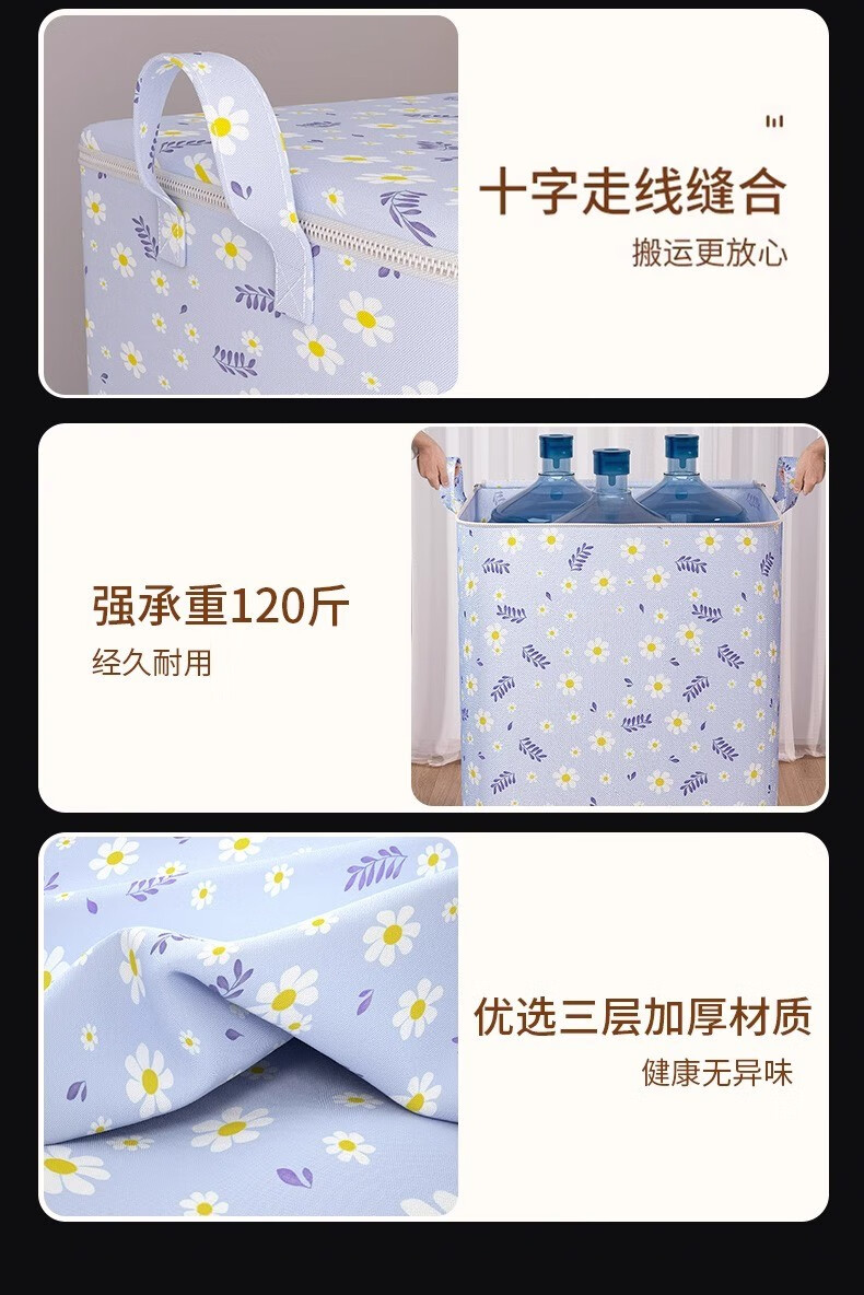 Fantasy quilt storage bag large capacity household waterproof and moisture-proof clothing clothing moving packing quilt bag box artifact small daisy blue 110L50*40*50cm