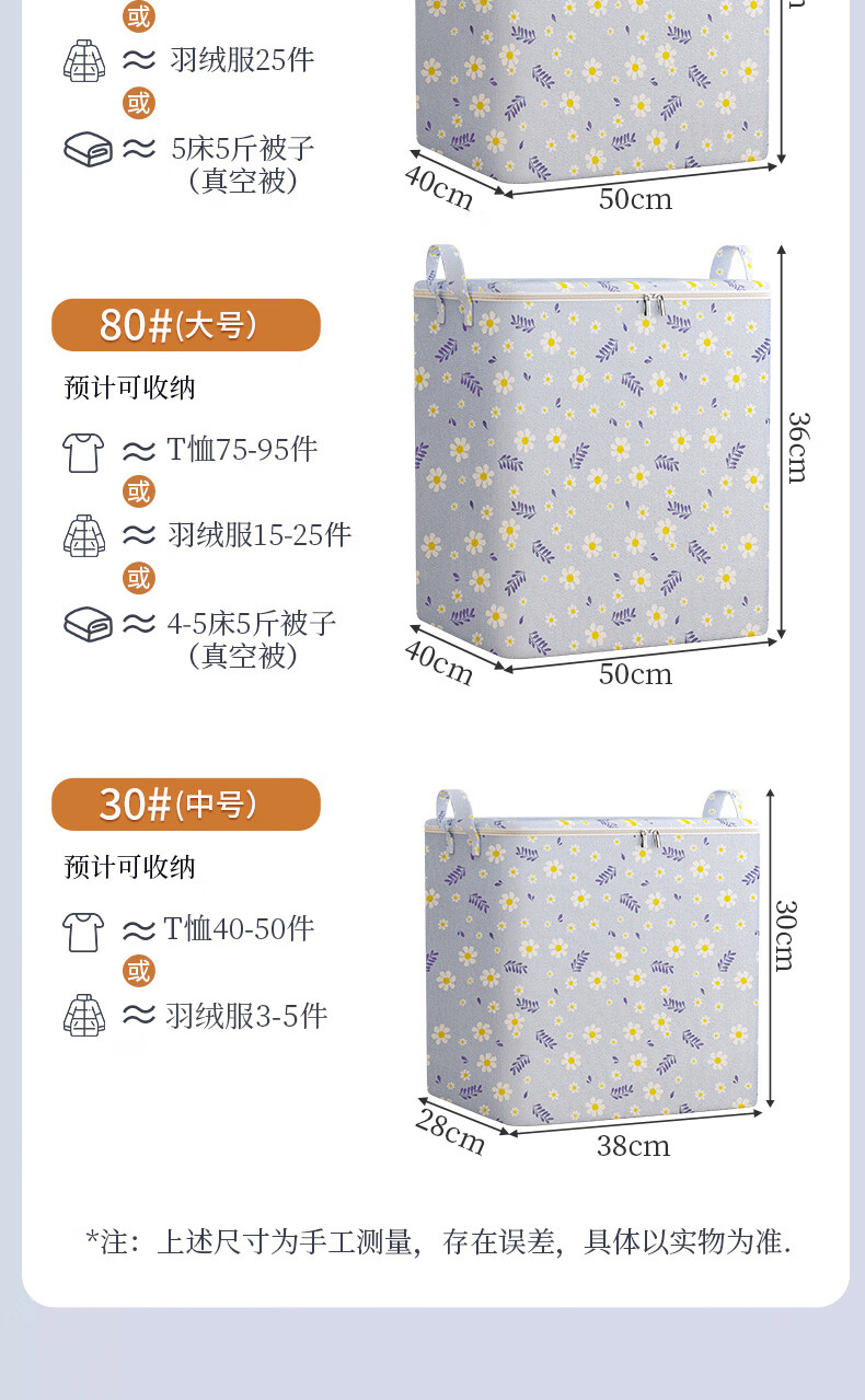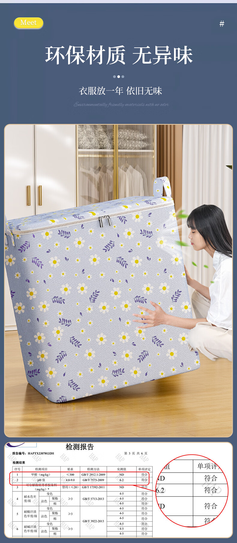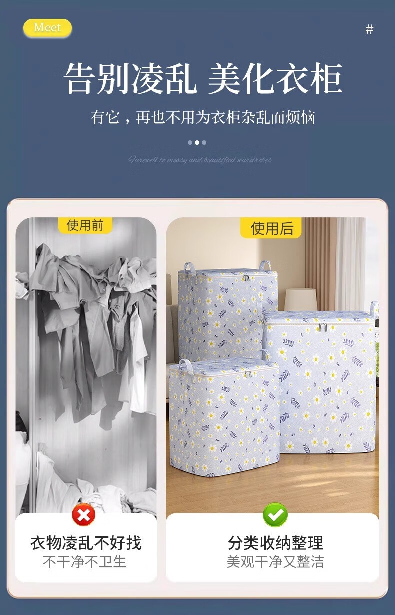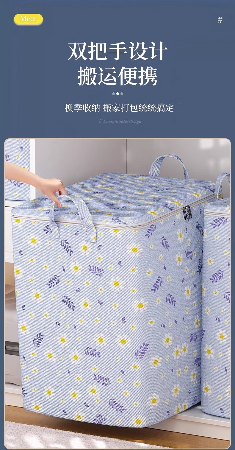 Fantasy quilt storage bag large capacity household waterproof and moisture-proof clothing clothing moving packing quilt bag box artifact small daisy blue 110L50*40*50cm