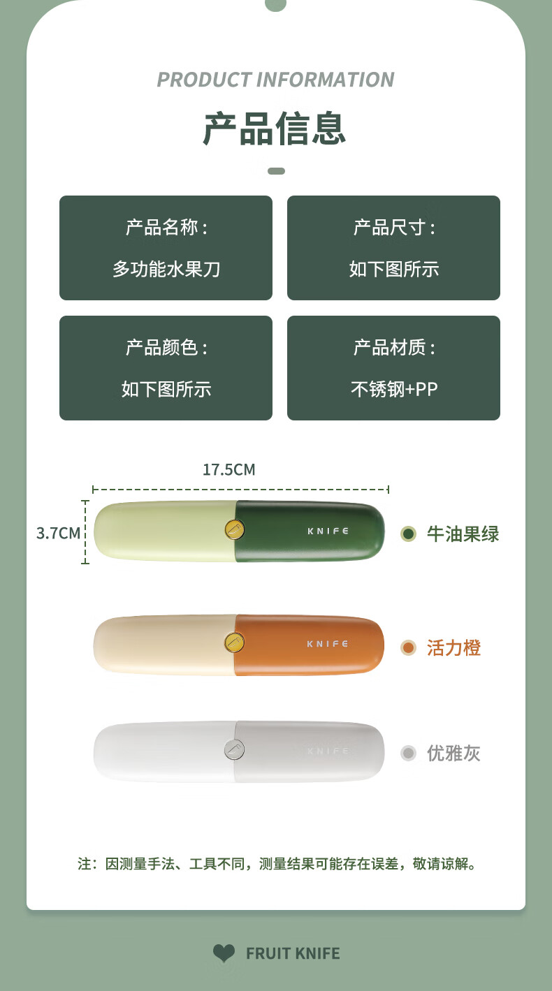 Sailoto Seiko Peeling 2-in-1 Home Multifunctional Carry-On Stainless Steel Peeling Seiko Avocado Green 1 Pack
