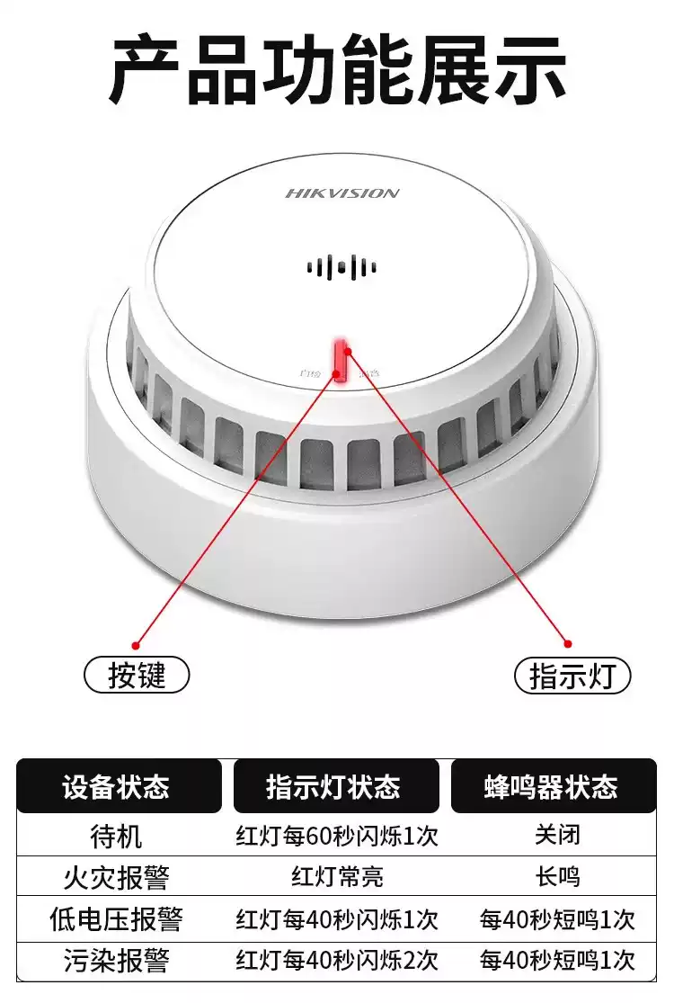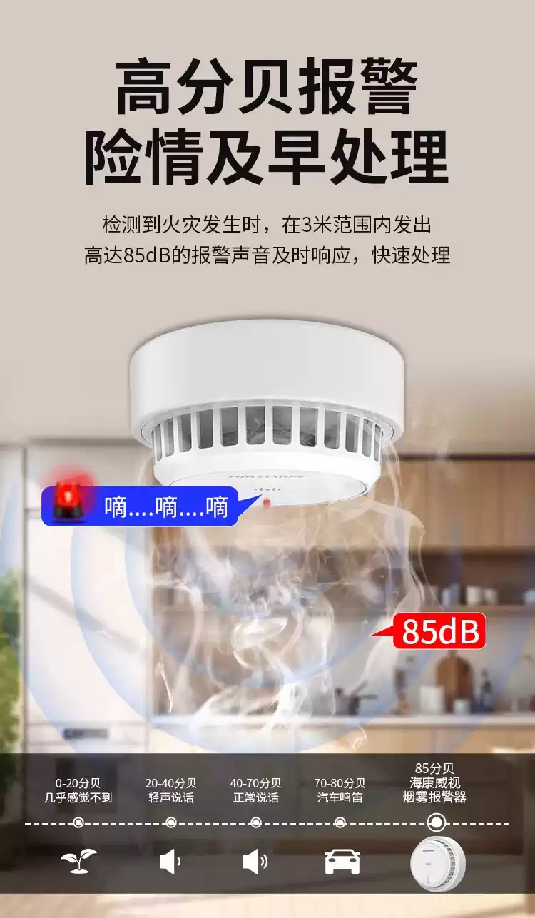 Hikvision smoke alarm for home and commercial fire protection 3C certified fire sensor detection independent smoke sensor 3-year battery life fire protection package NP-Y2-S