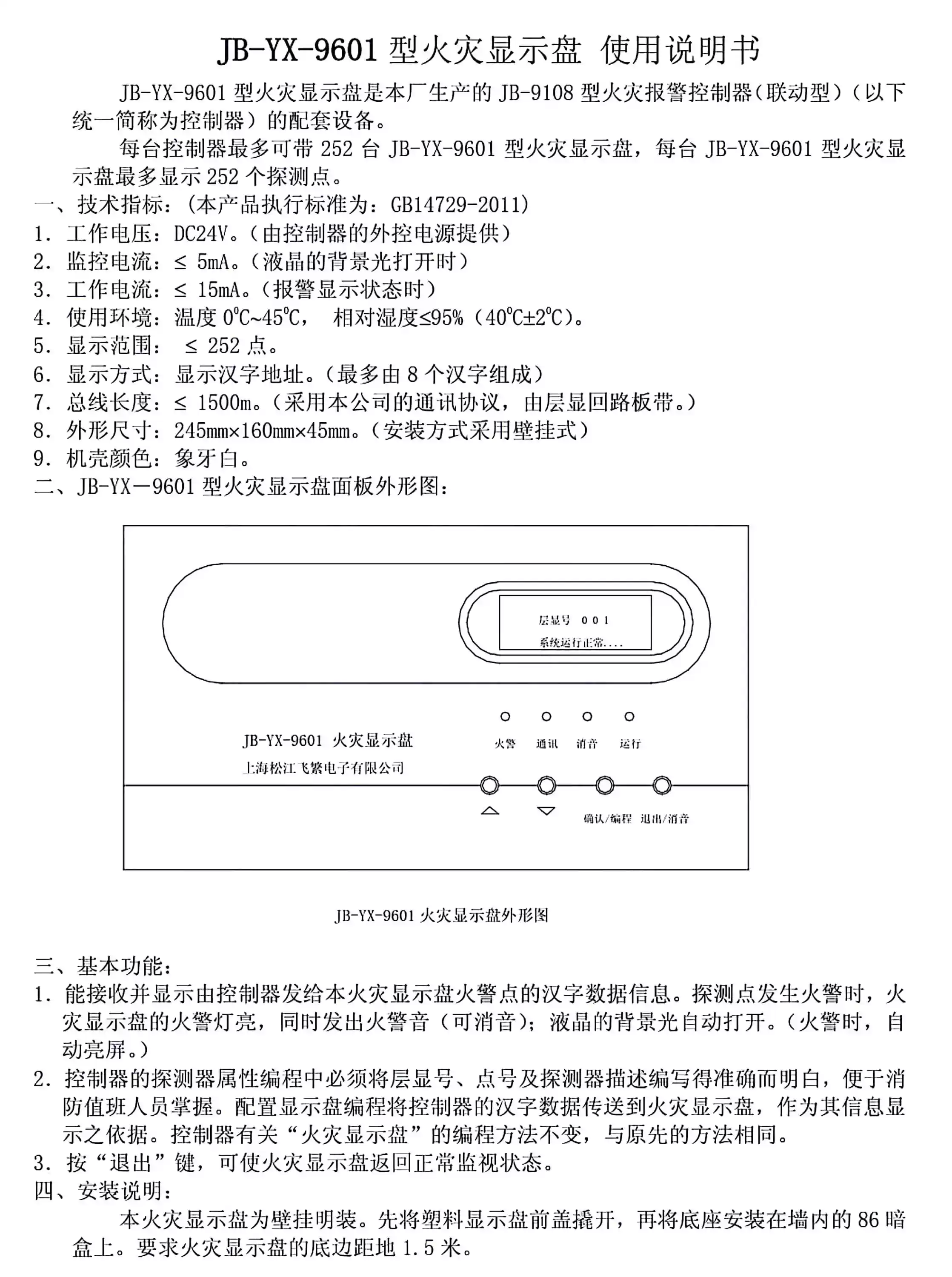 Shanghai Songjiang fire display panel JB-YX-9601 floor display 9601 replaces the 252A floor display brand new JB-YX-9601