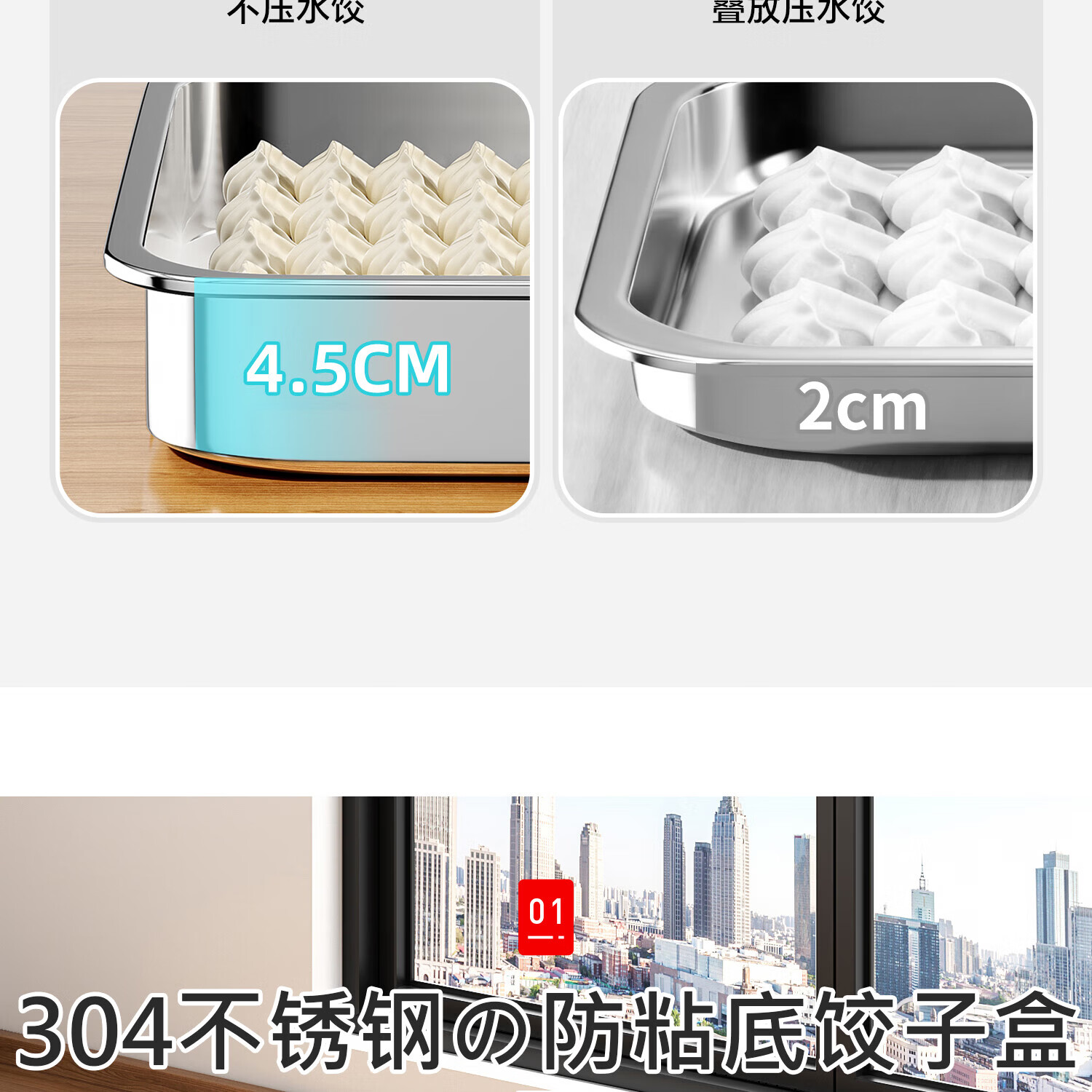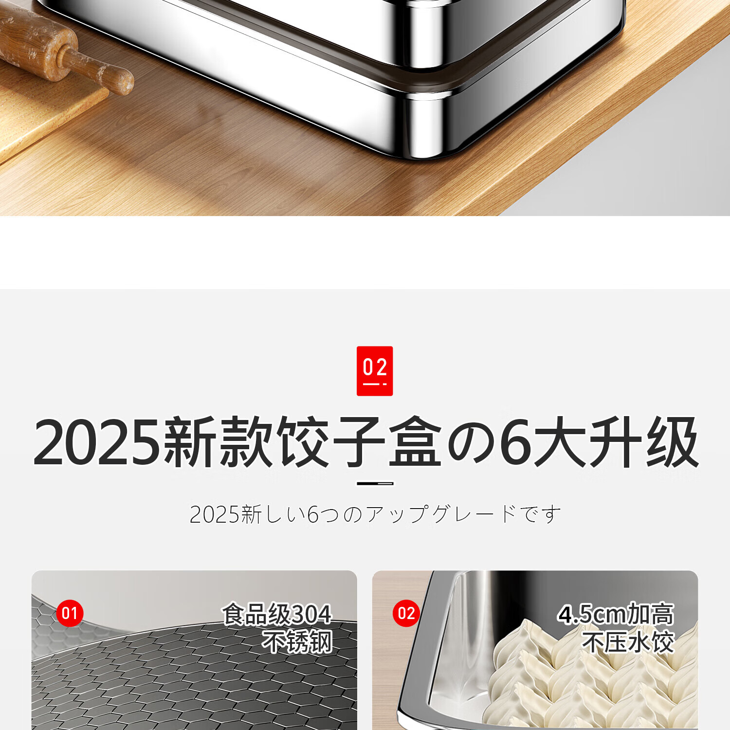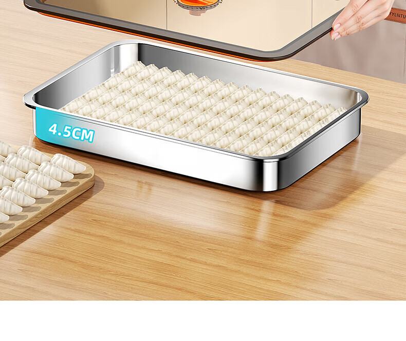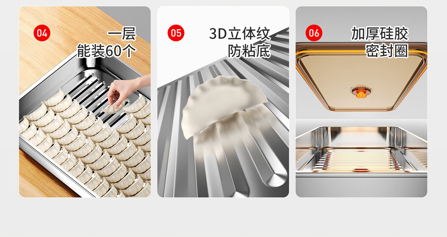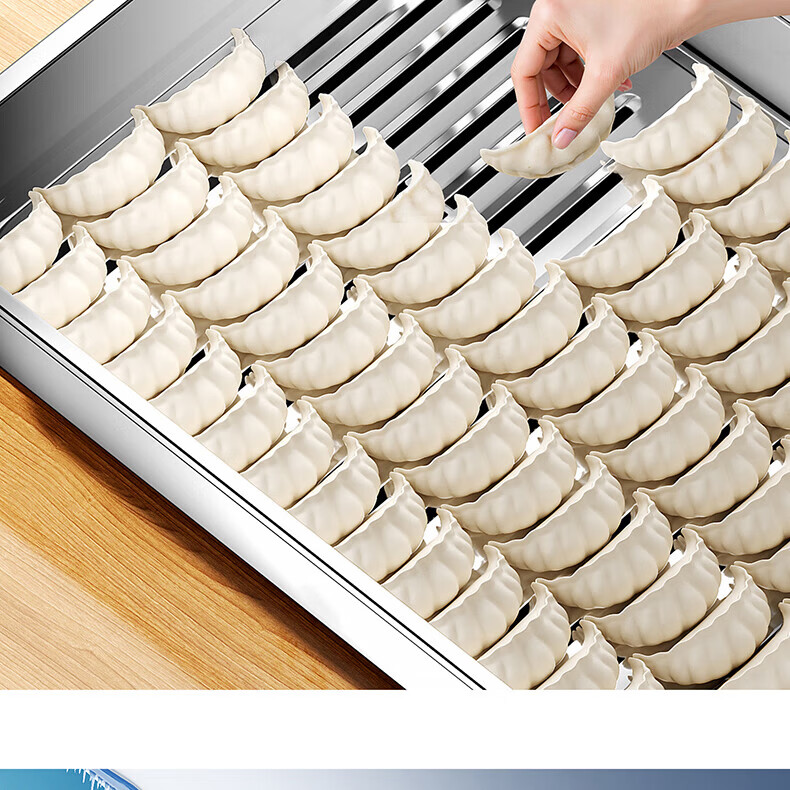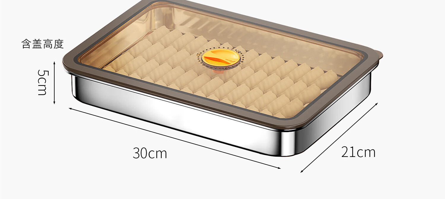 Home KATEI STORY Japanese dumpling freezing box stainless steel dumpling box food grade dumpling special quick-frozen crisper refrigerator storage box large size 1 layer 1 cover about 60 dumplings 1 layer 2400ml 1 pack