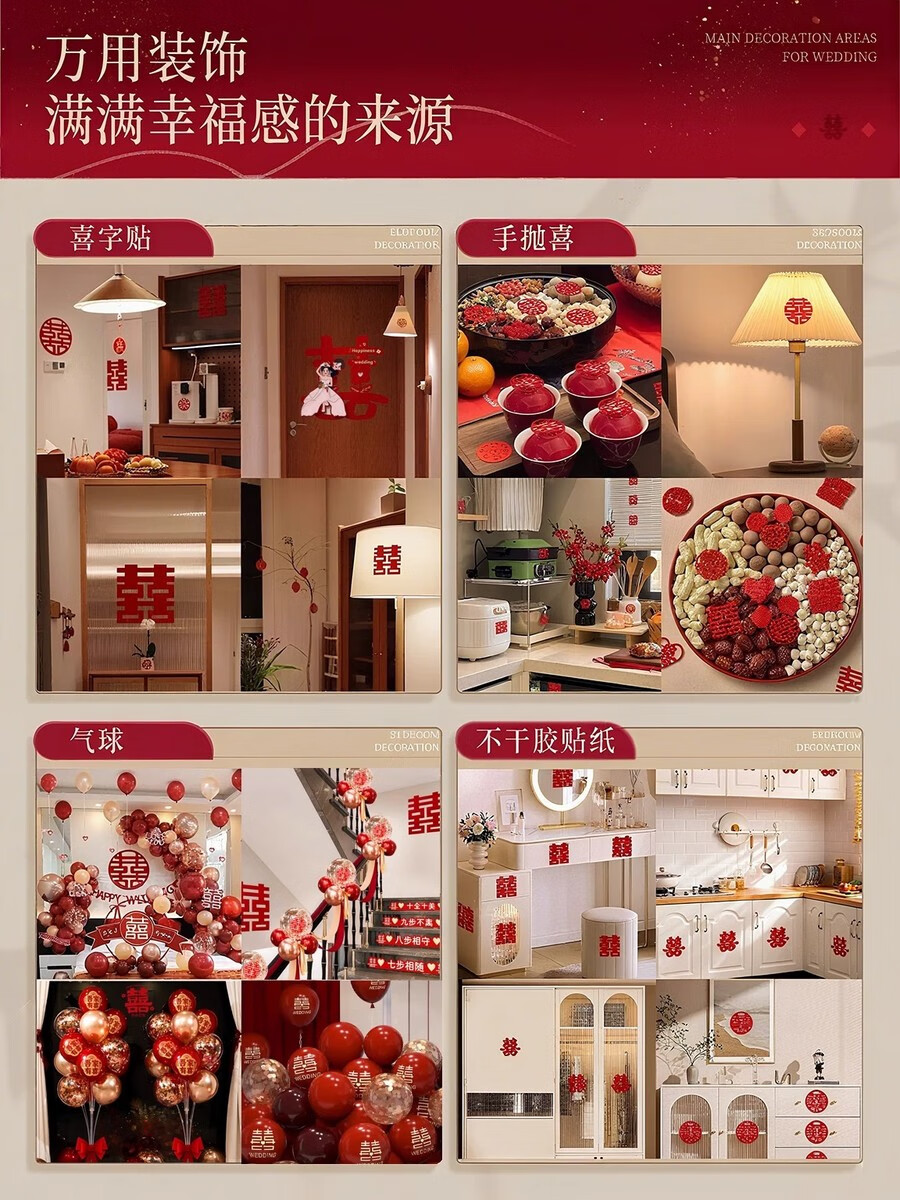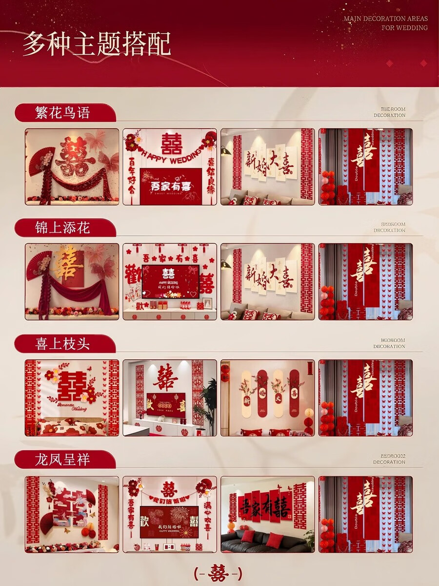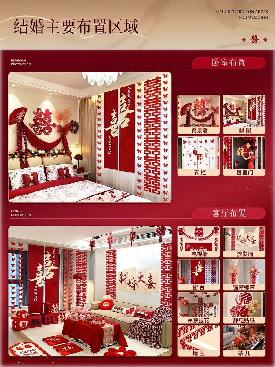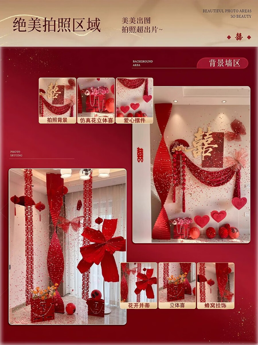 Fantasy Wedding Room Decoration Set Atmosphere Wedding Wall Decoration Curtain Latte Flower Wedding Bedroom Living Room for Groom and Bride Cotton Doll Press Doll