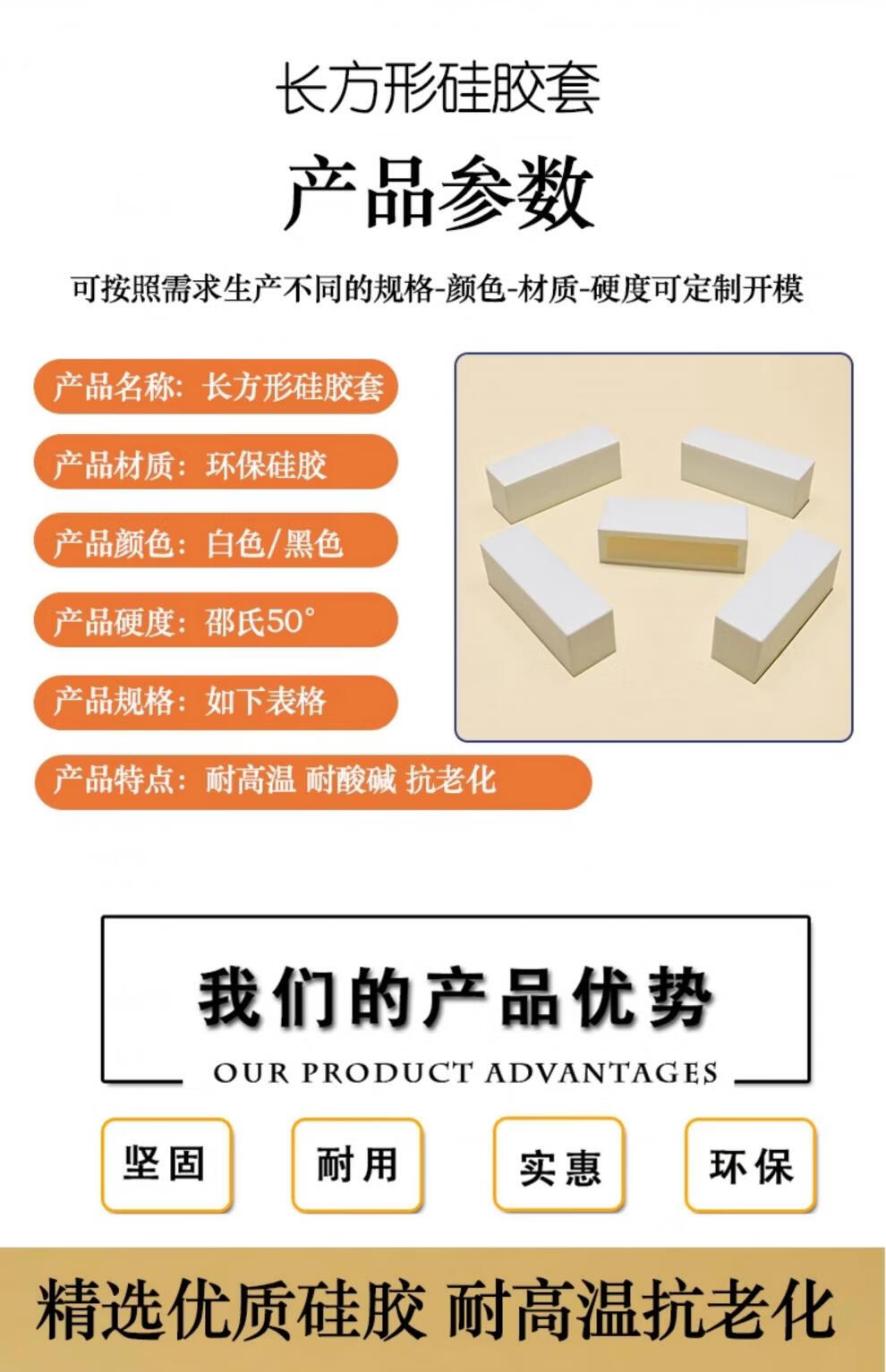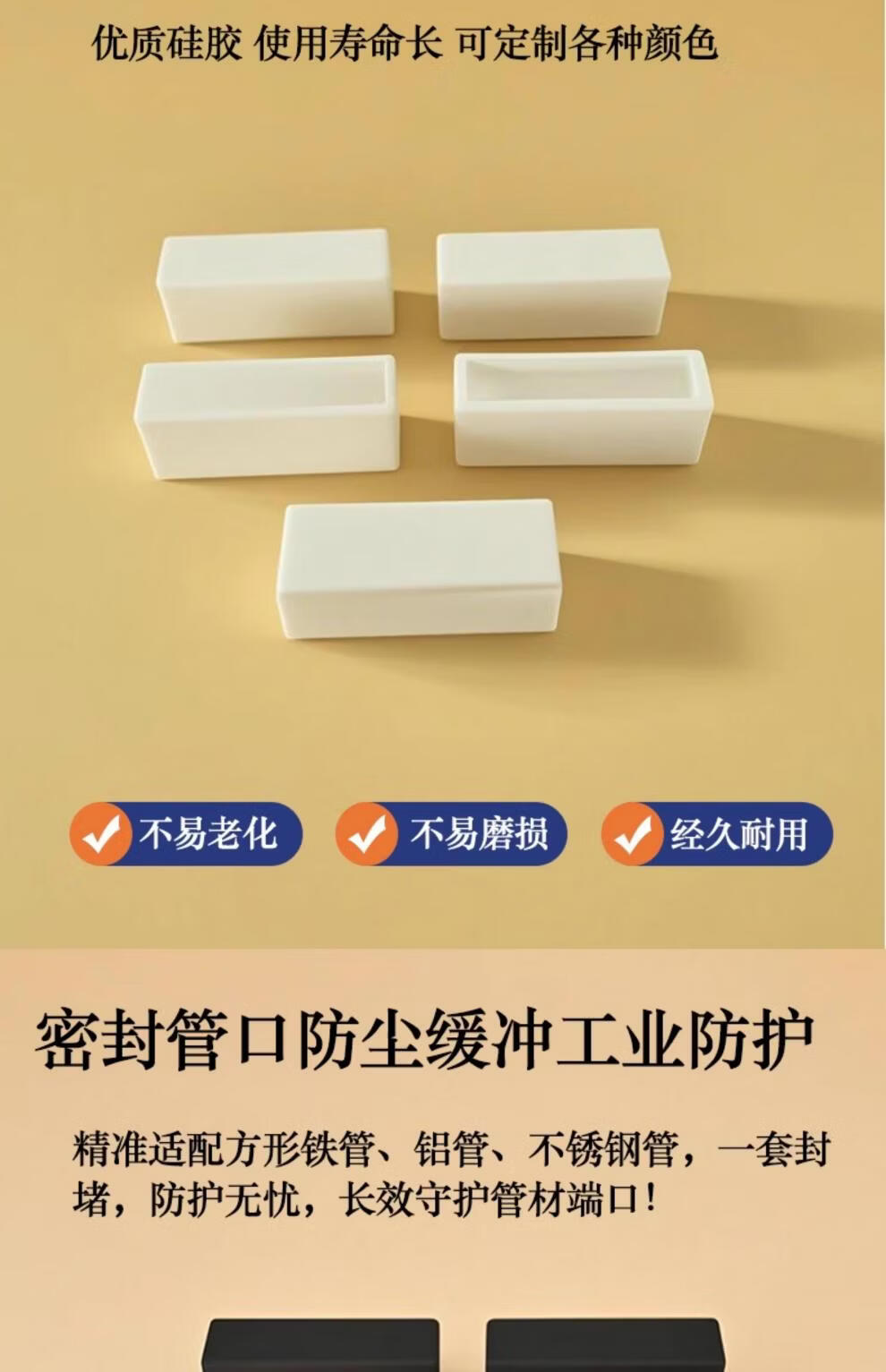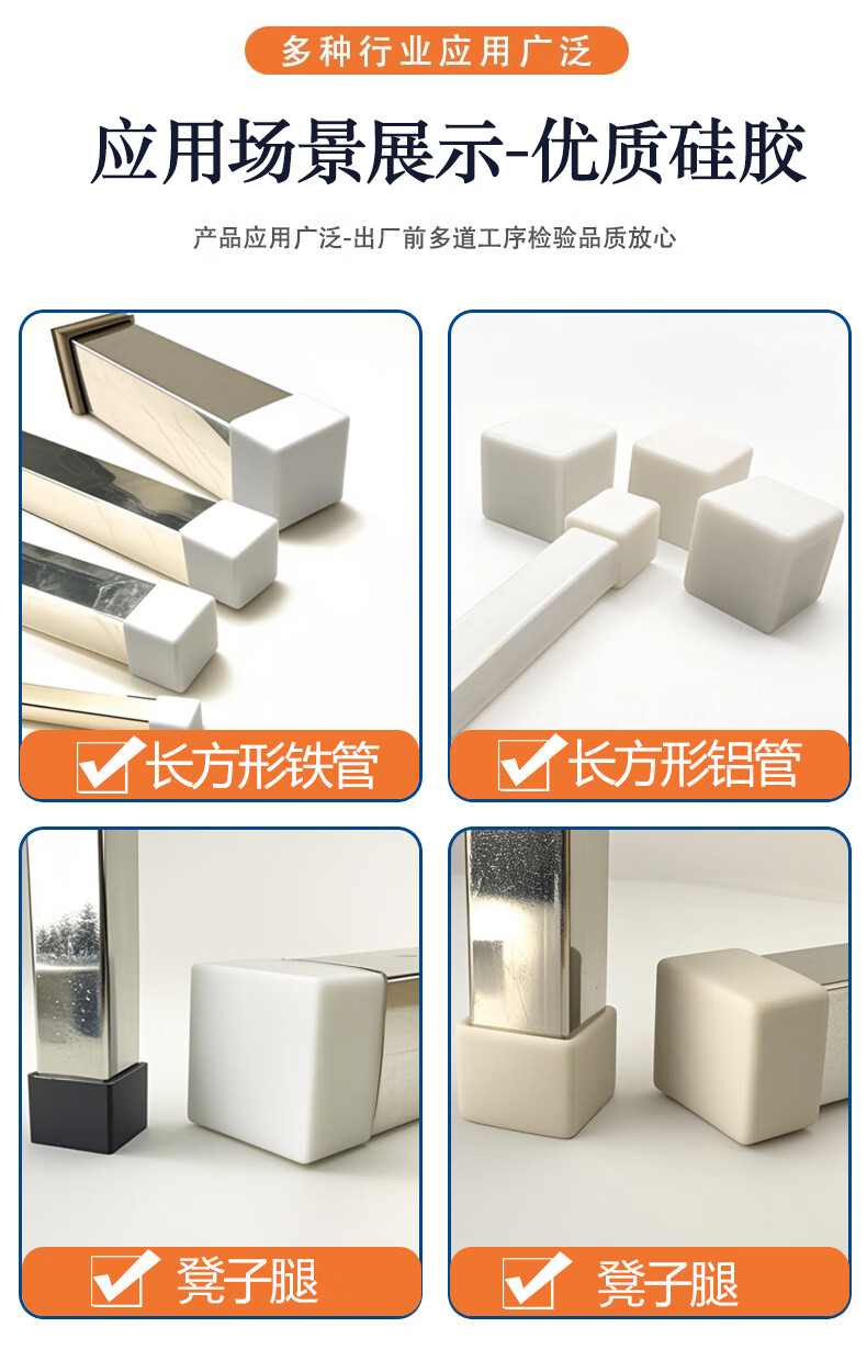 Guchen Rectangular High Temperature Resistant Silicone Cap Threaded Screw Protection Silicone Sleeve Elastic Edge Protection End Silicone Sealing White Rectangular Sleeve 20x80mm