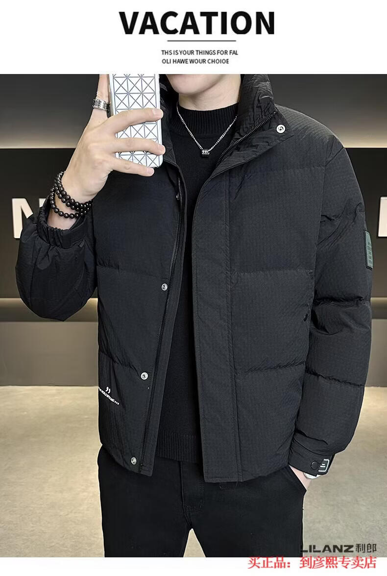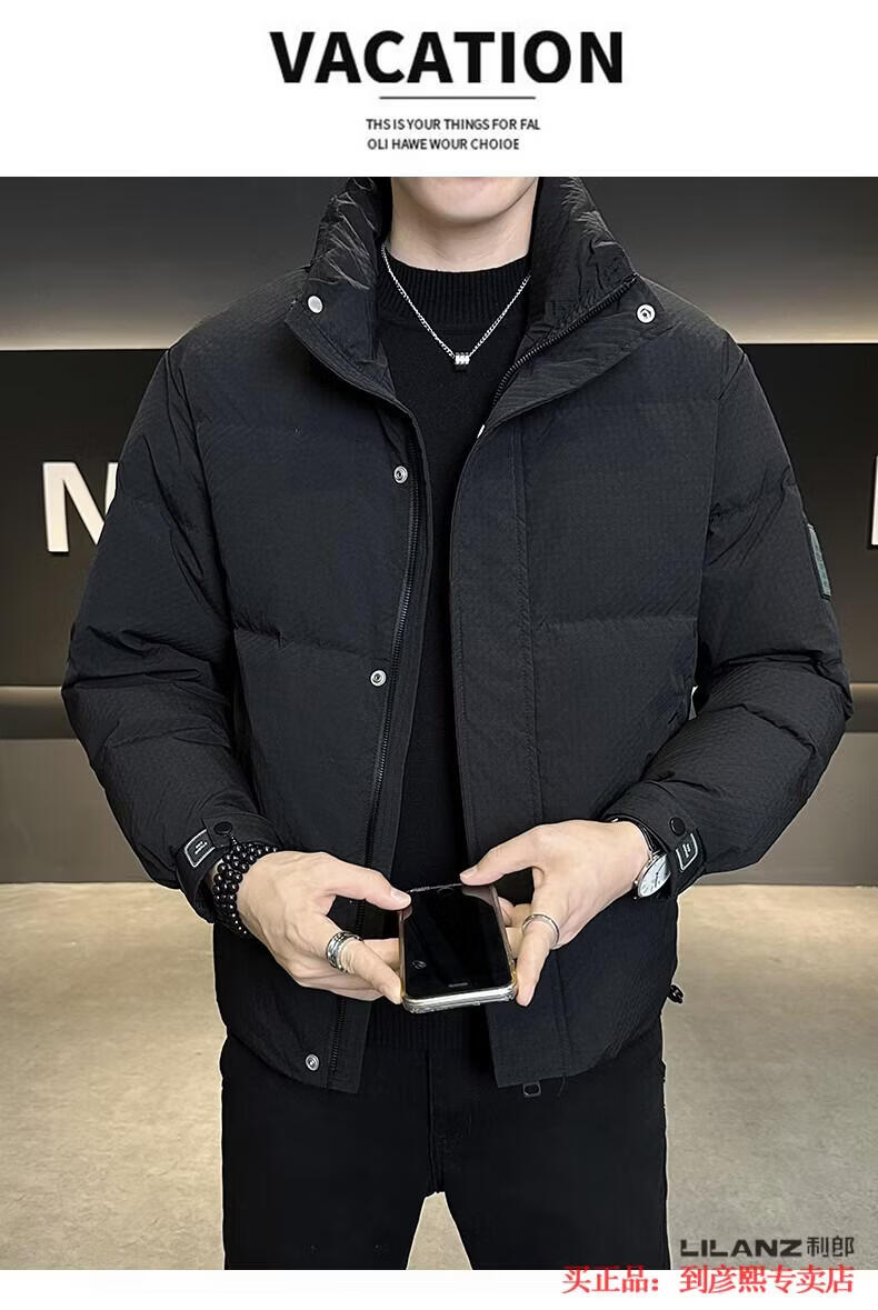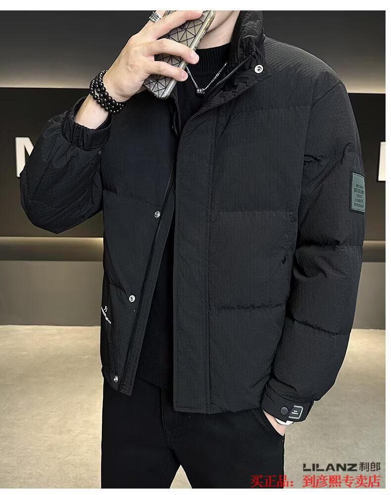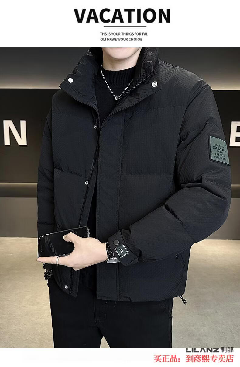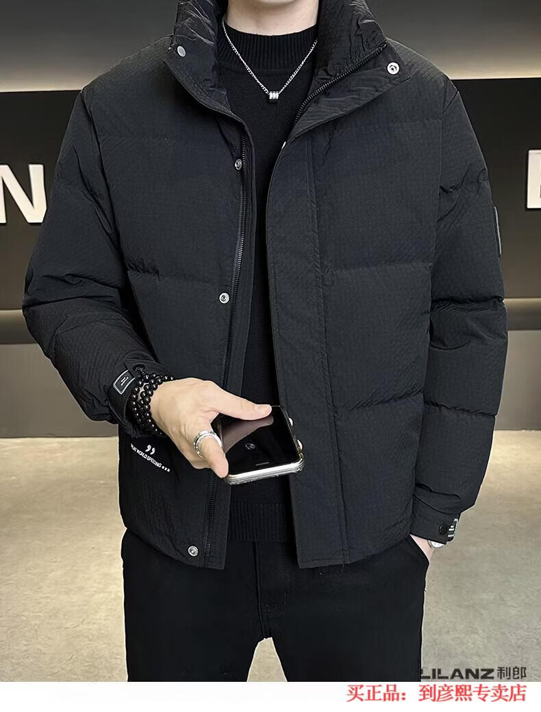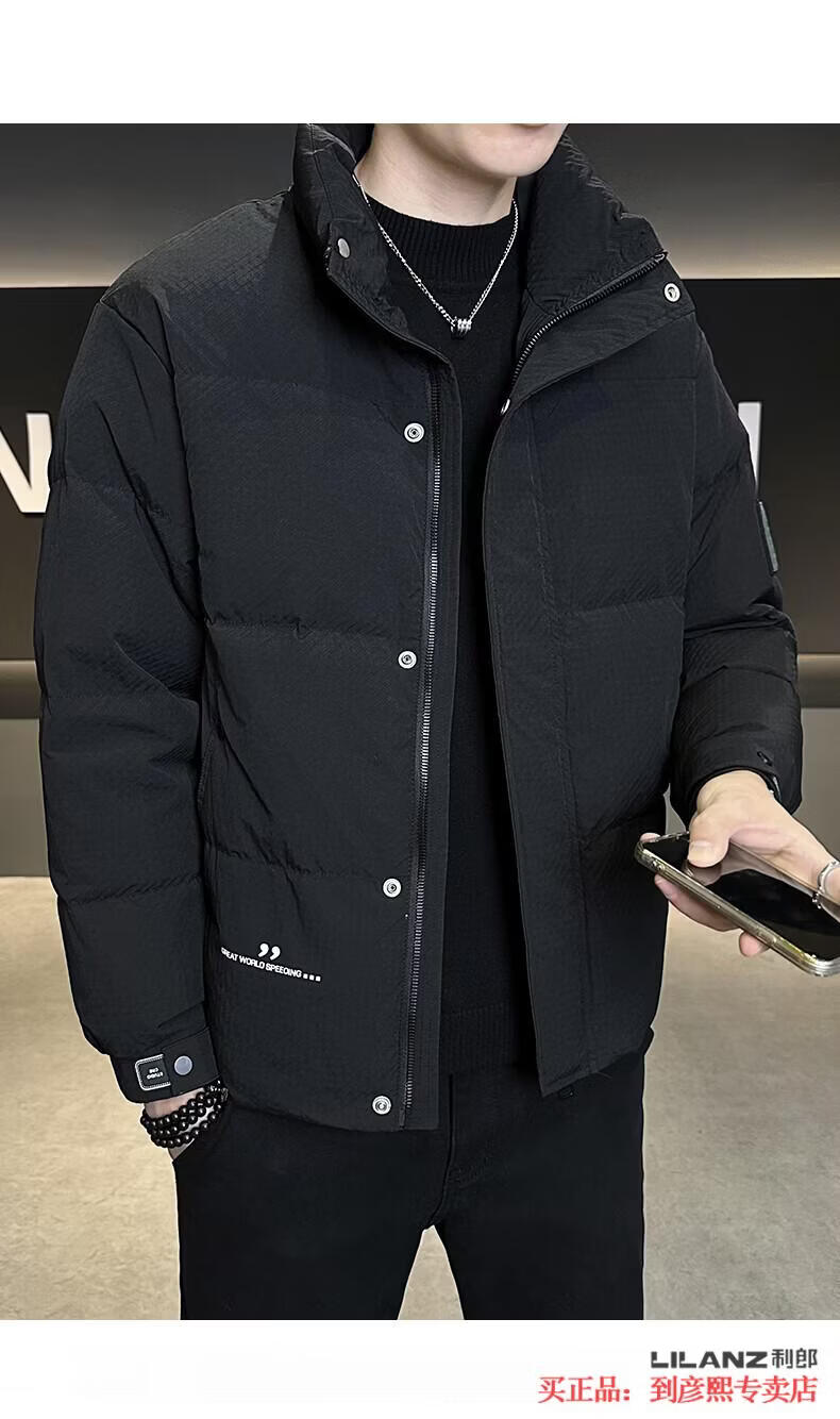 LILANZ 2025 new winter style handsome stand-up collar down jacket men's short thickened trendy warm bread jacket black-flagship L