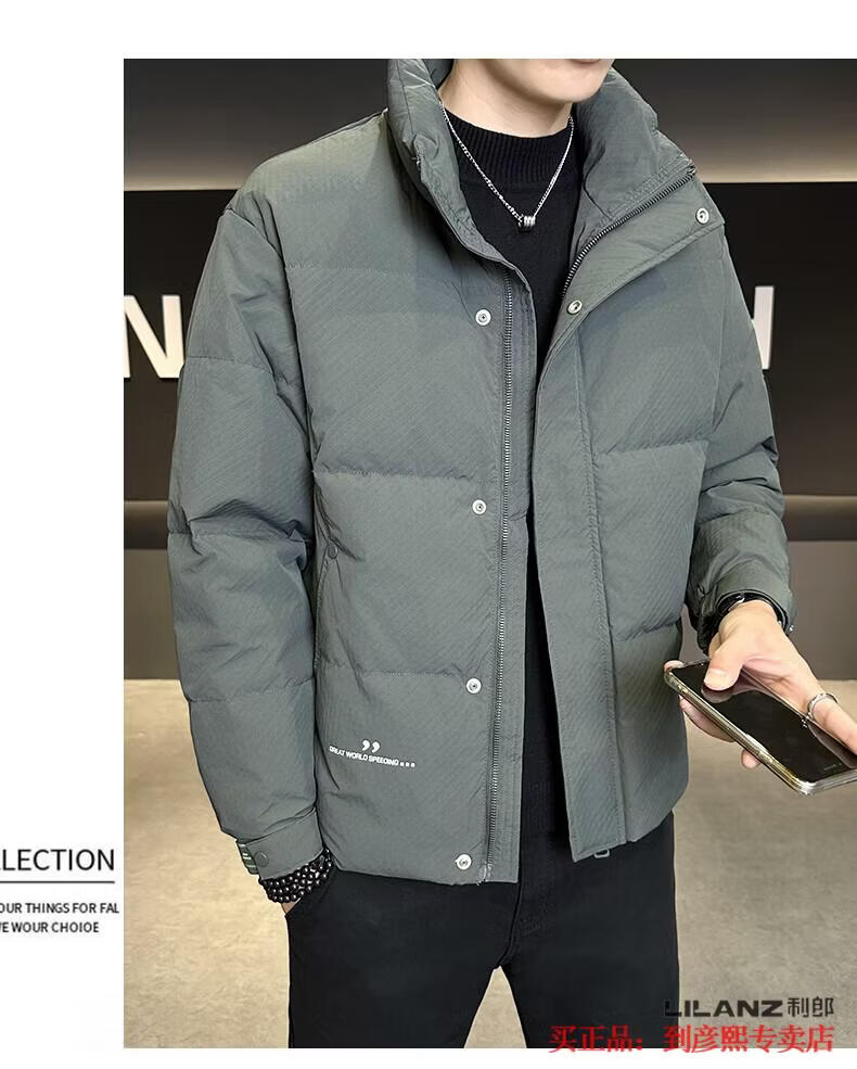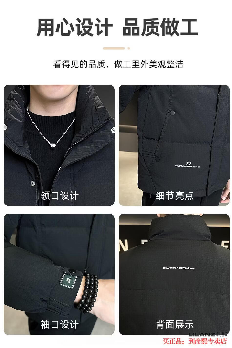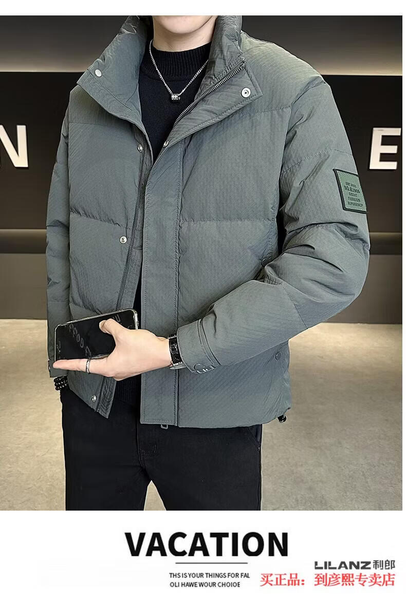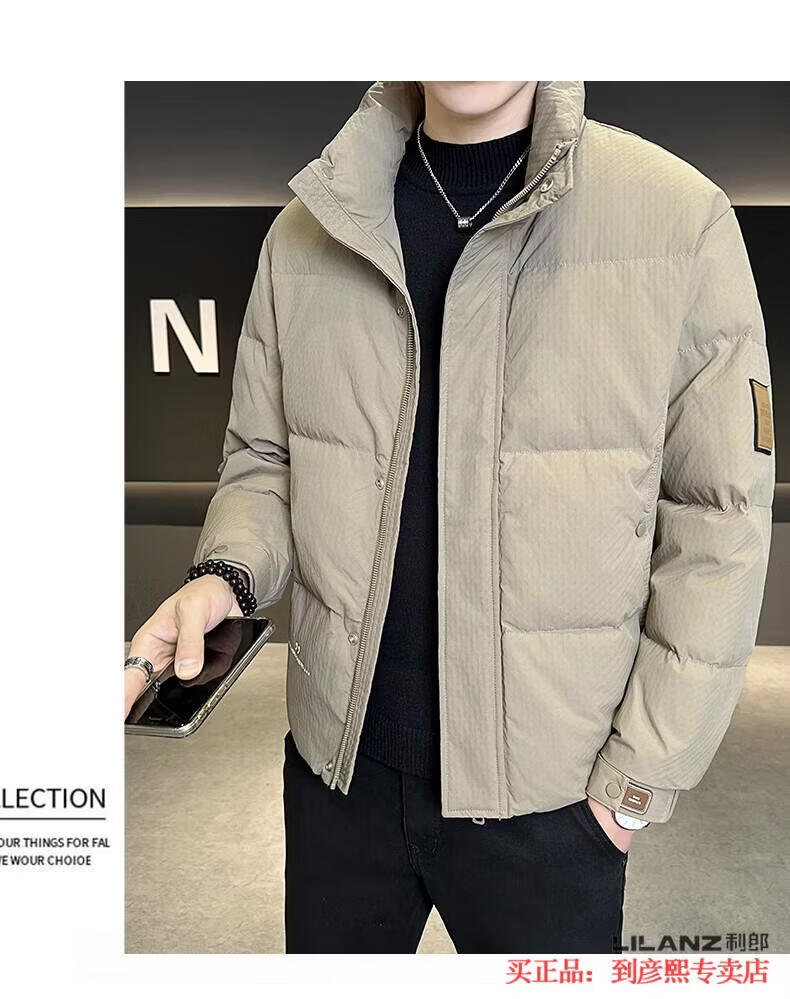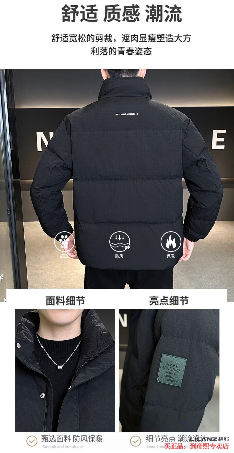 LILANZ 2025 new winter style handsome stand-up collar down jacket men's short thickened trendy warm bread jacket black-flagship L