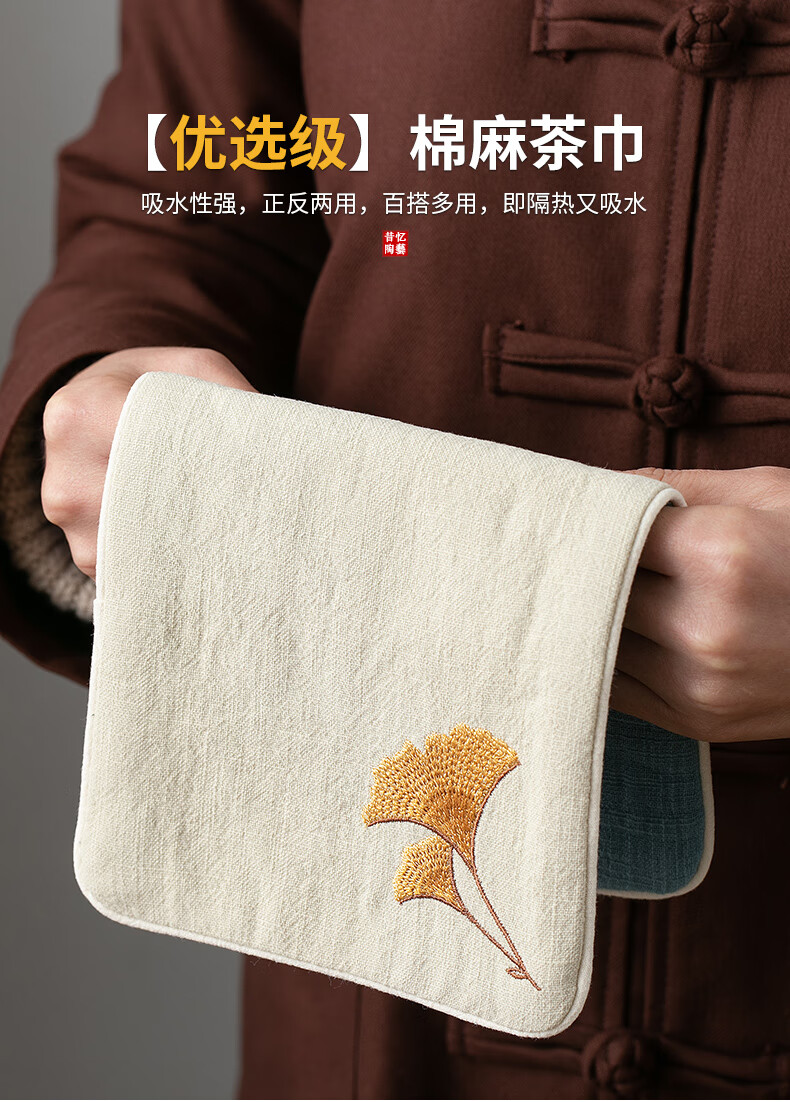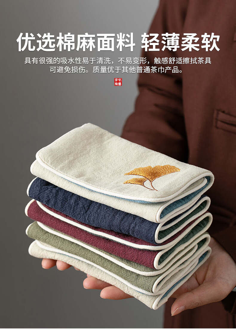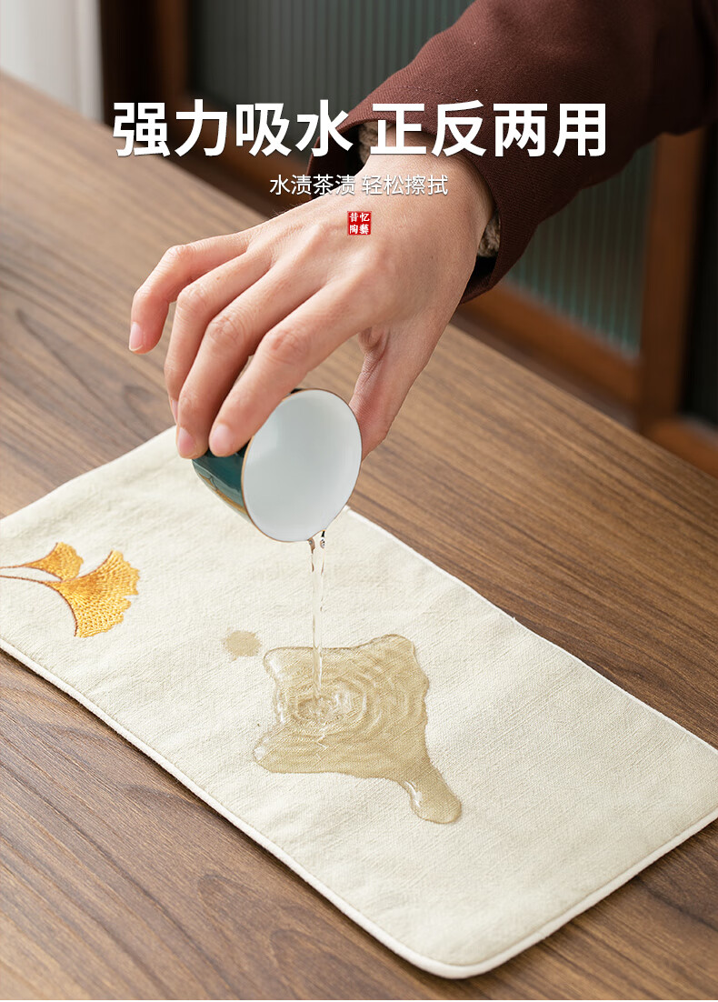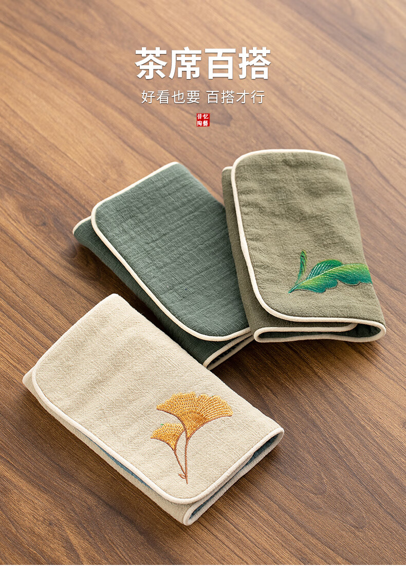 Qi Yuemang carefully selected domestic products, strong absorbent tea towel cloth, tea cloth, tea mat, tea table rag, tea towel, tea cup mat, tea towel, cotton and linen tea towel rectangular (Ginkgo)