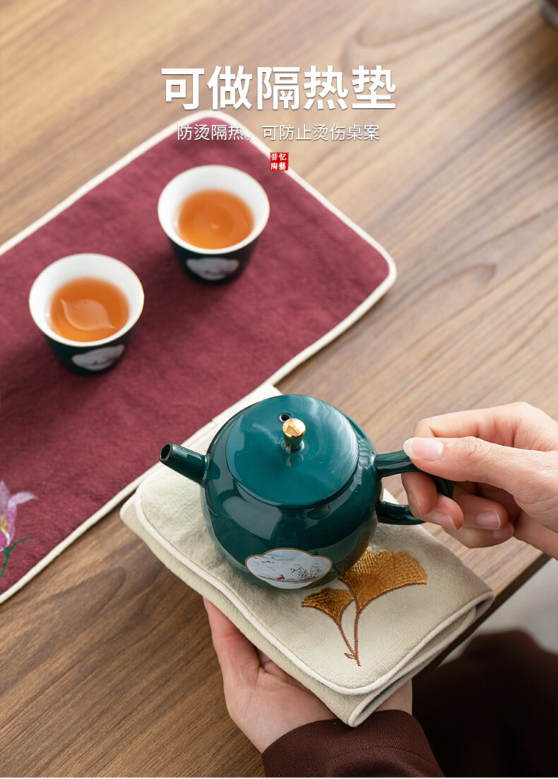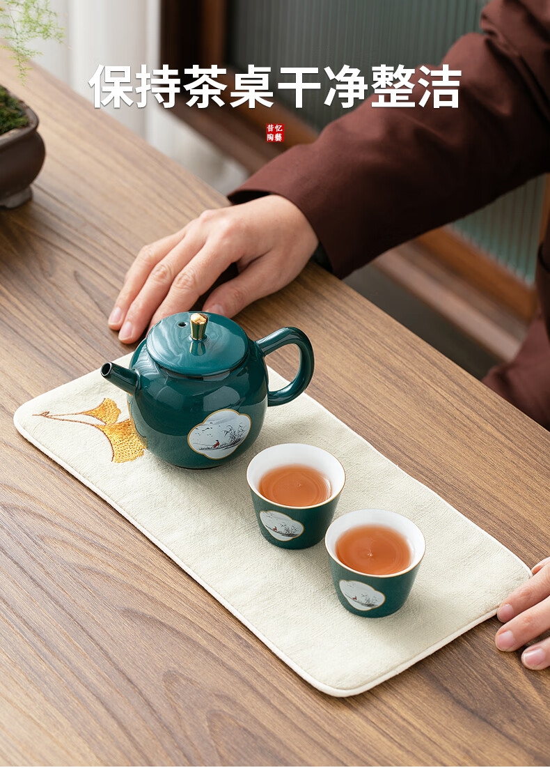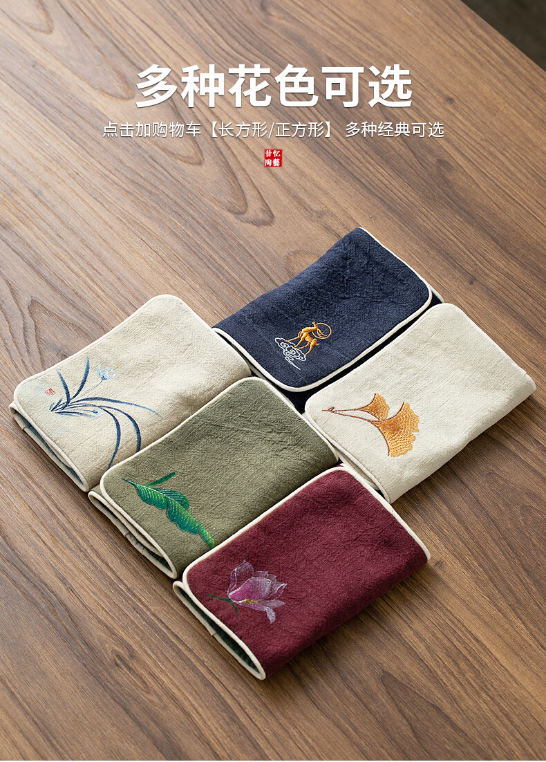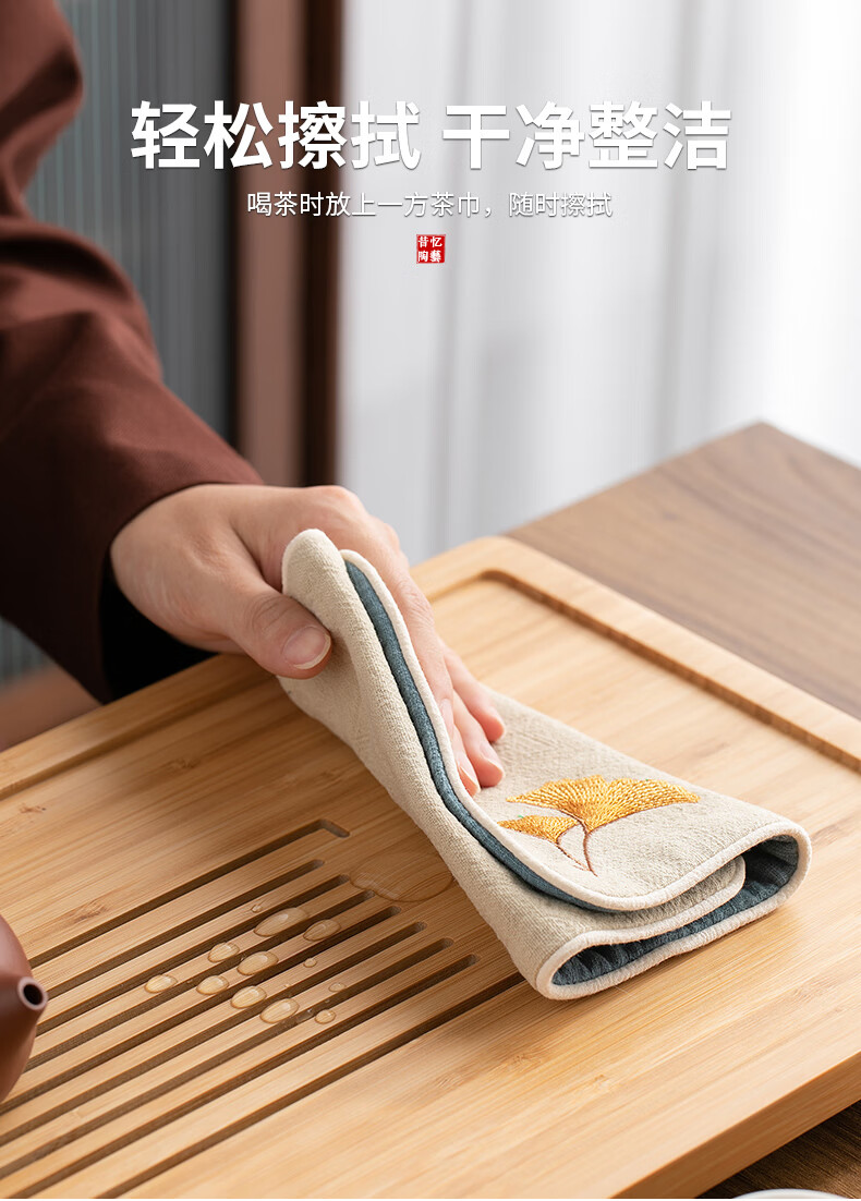 Qi Yuemang carefully selected domestic products, strong absorbent tea towel cloth, tea cloth, tea mat, tea table rag, tea towel, tea cup mat, tea towel, cotton and linen tea towel rectangular (Ginkgo)