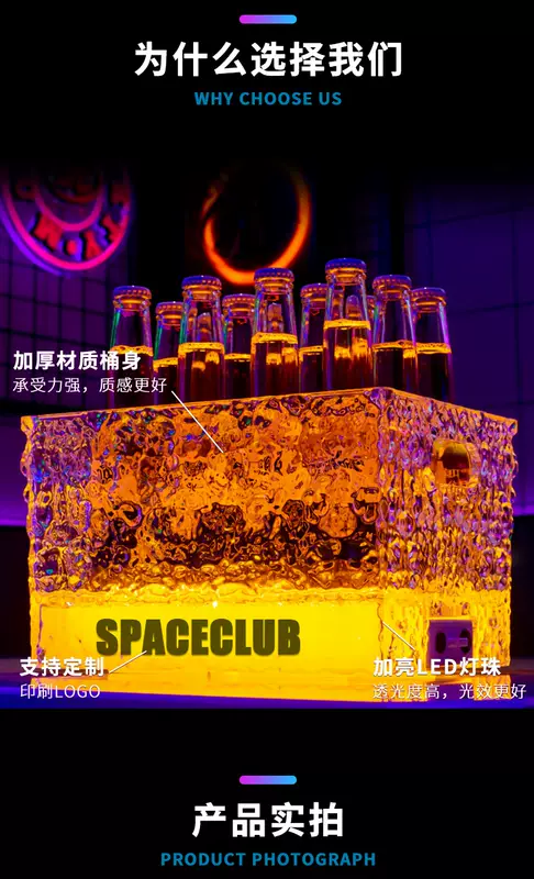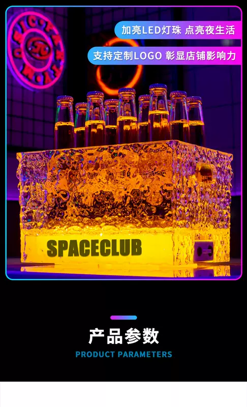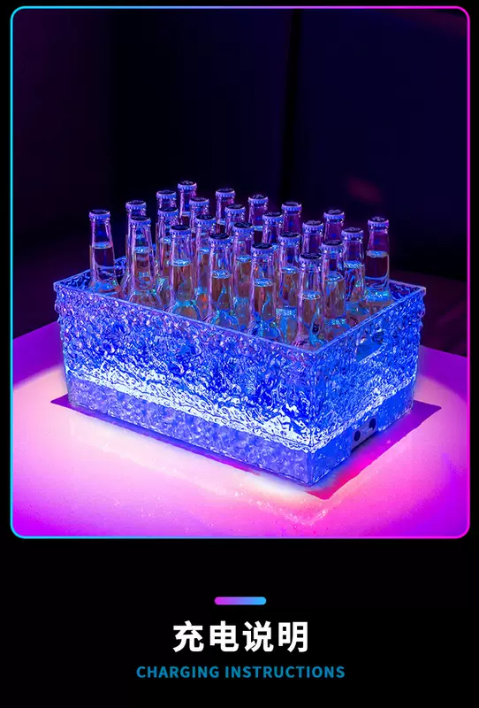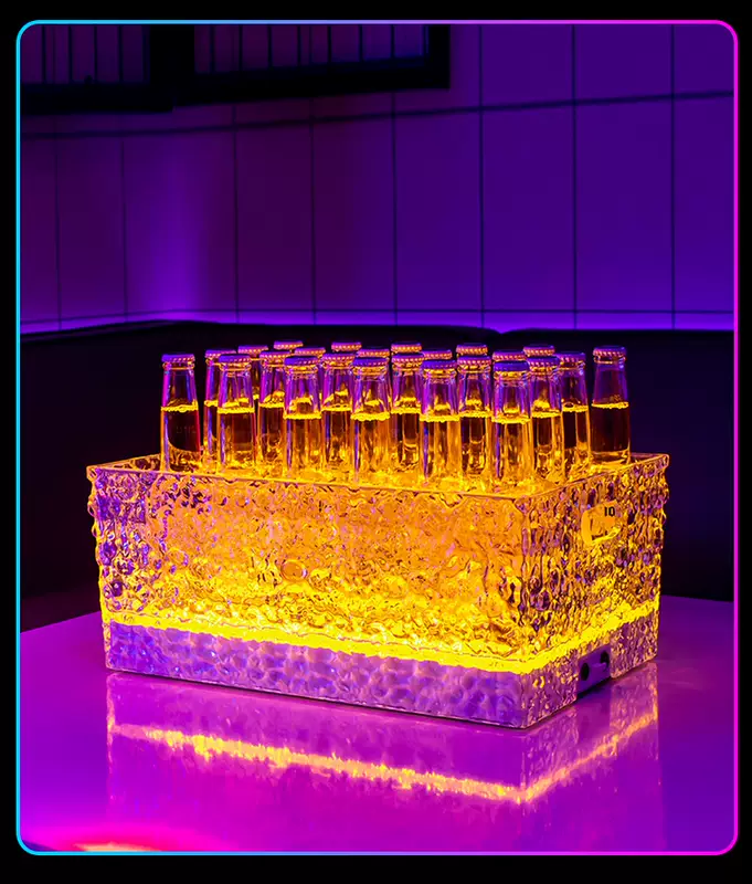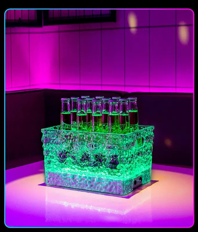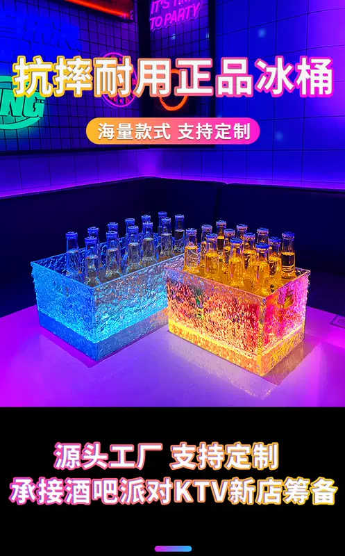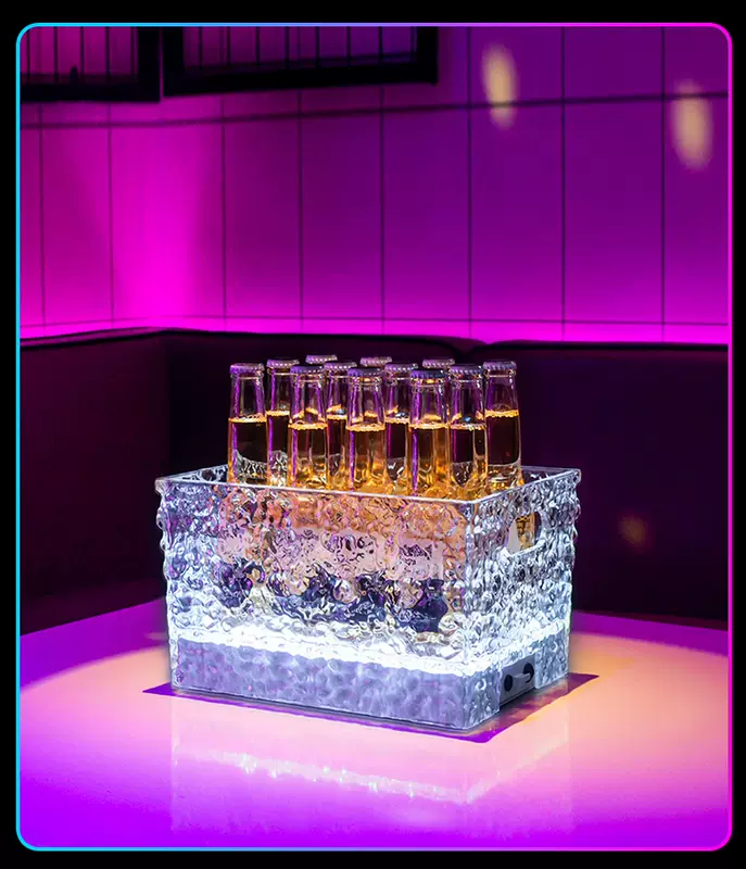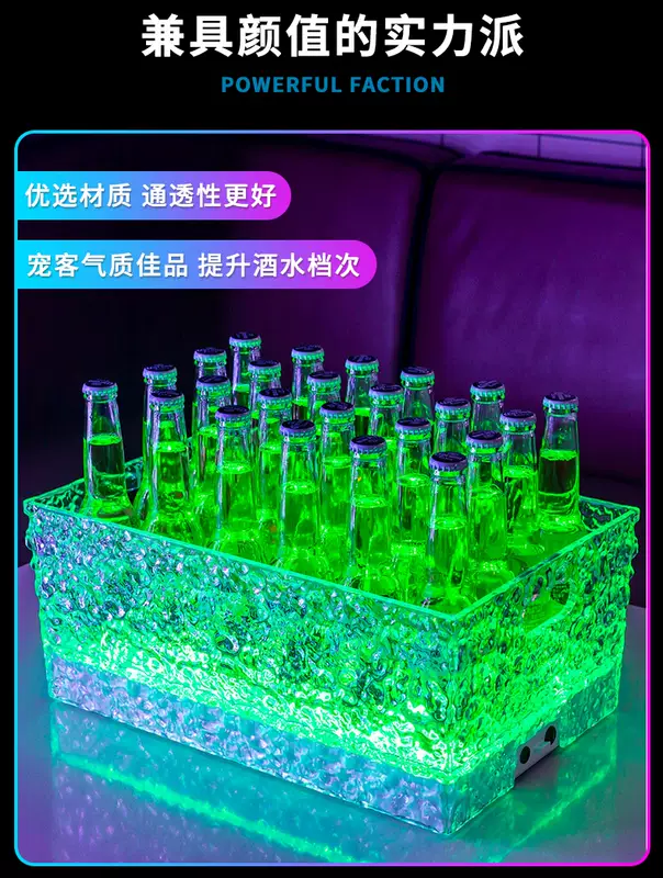 Yusenyi Luminous Ice Pattern Ice Bucket Bar KTV Beverage Ice Bucket PC Anti-fall Bucket LED Champagne Internet Celebrity Party Beer Frame Iron Art-Acrylic Square Luminous Ice Bucket Colorful Light
