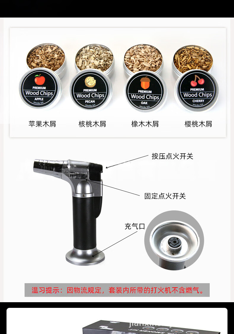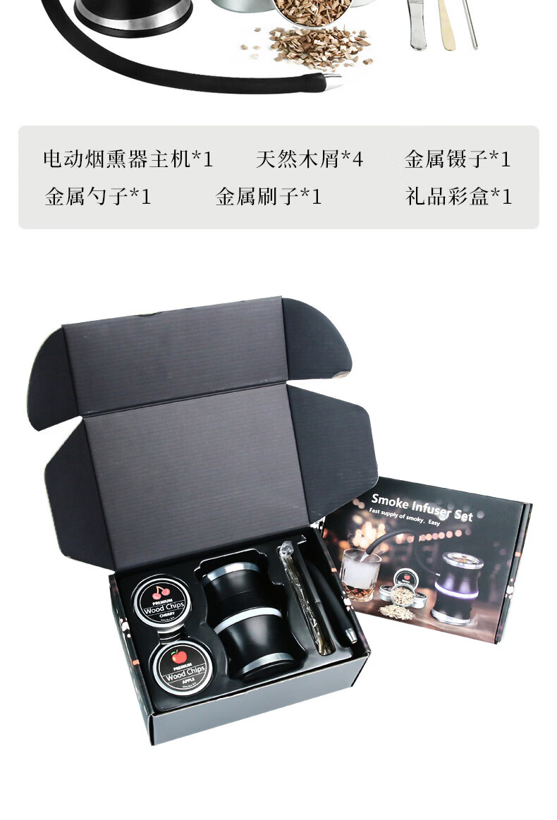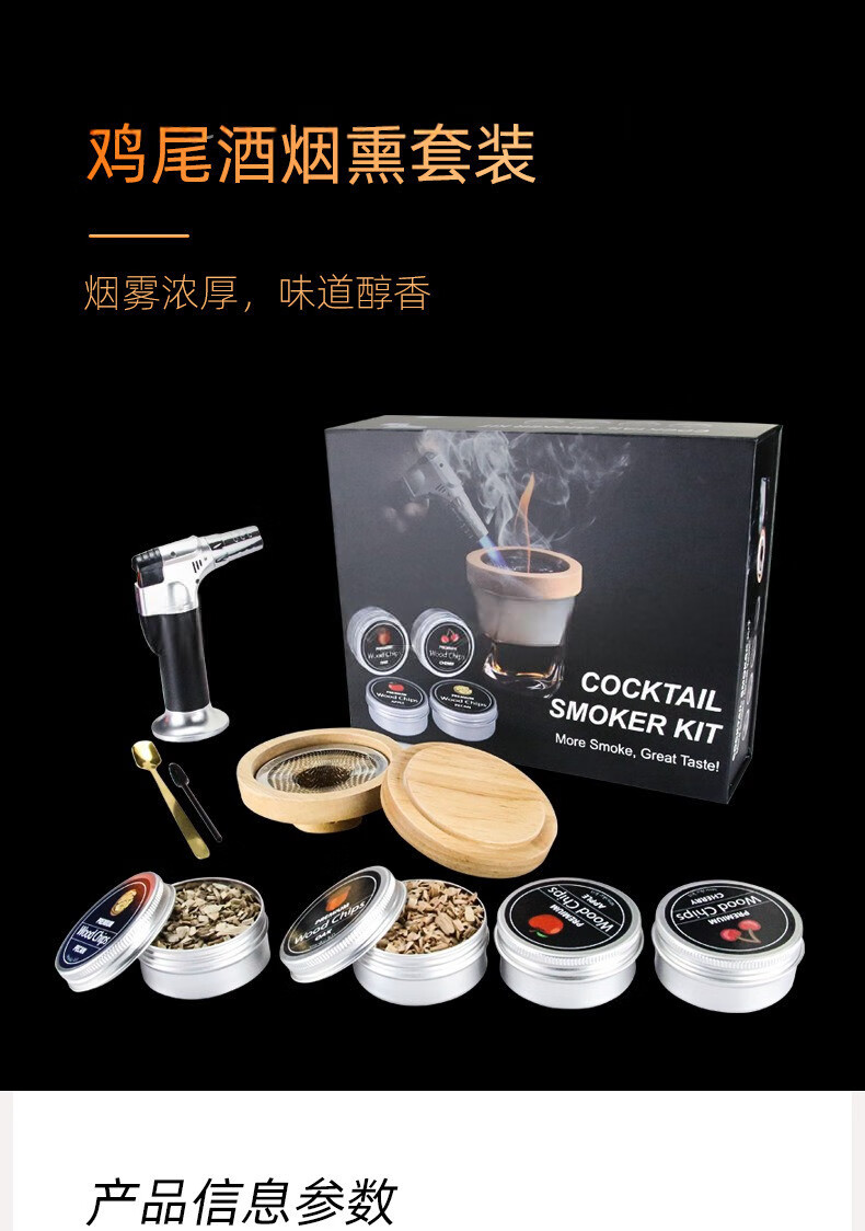 OIMG Japan imported high-quality cocktail mixer household Italian high-end whiskey smoker set cocktail smoker G set-smoker*1+musket*1+tools*2+wood*7