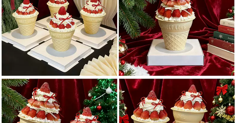 Yusenyi ice cream large cone cup Christmas cake box decoration strawberry mousse dessert packaging box baking packaging box 5 pieces 5 sets of boxes (with lid) see picture