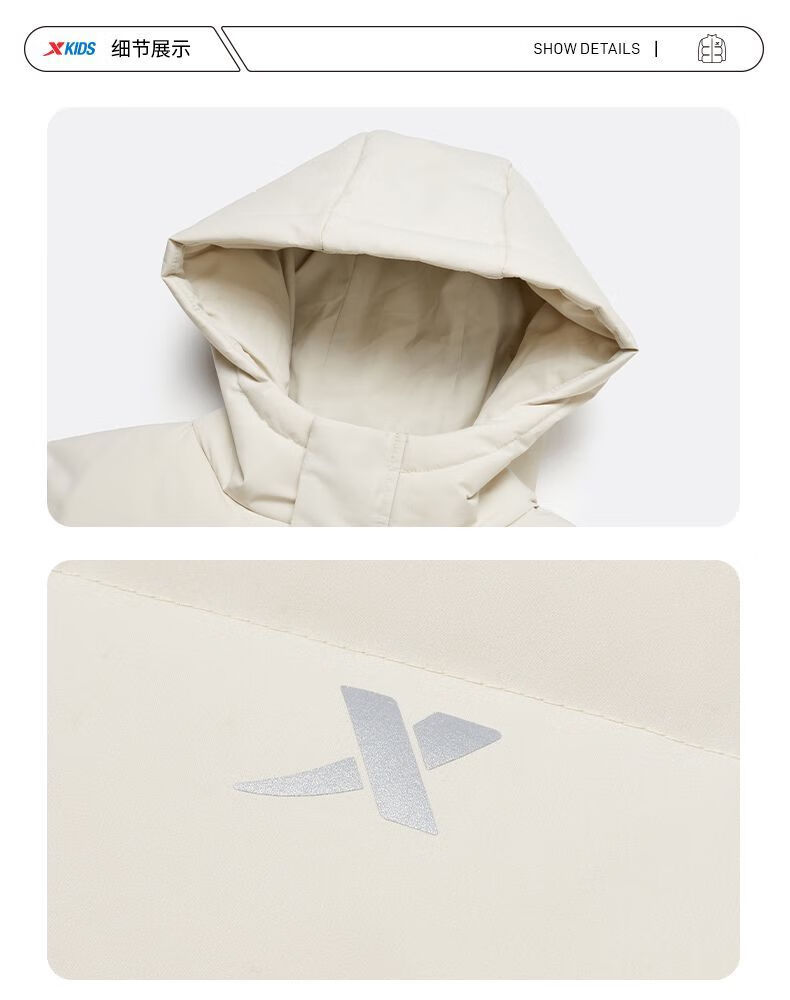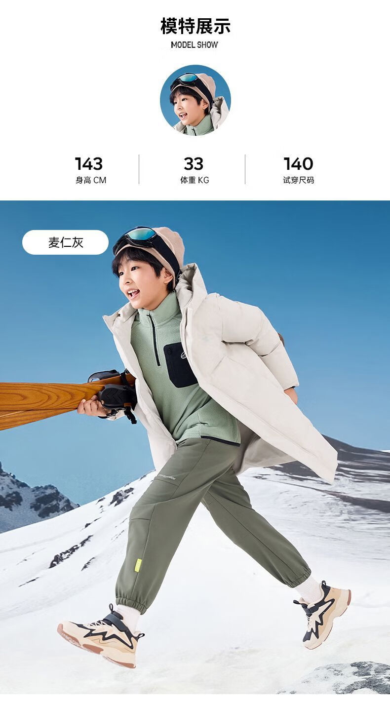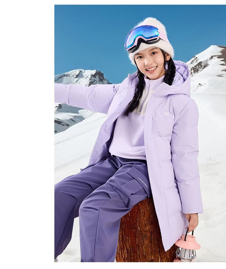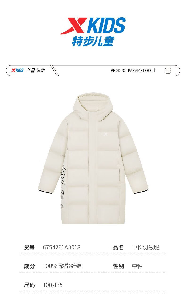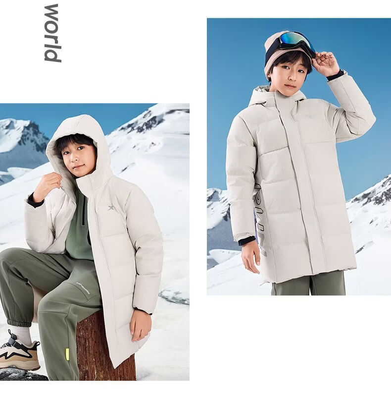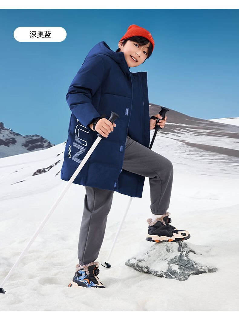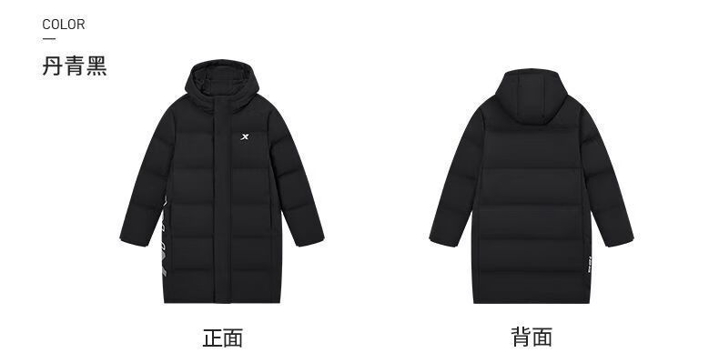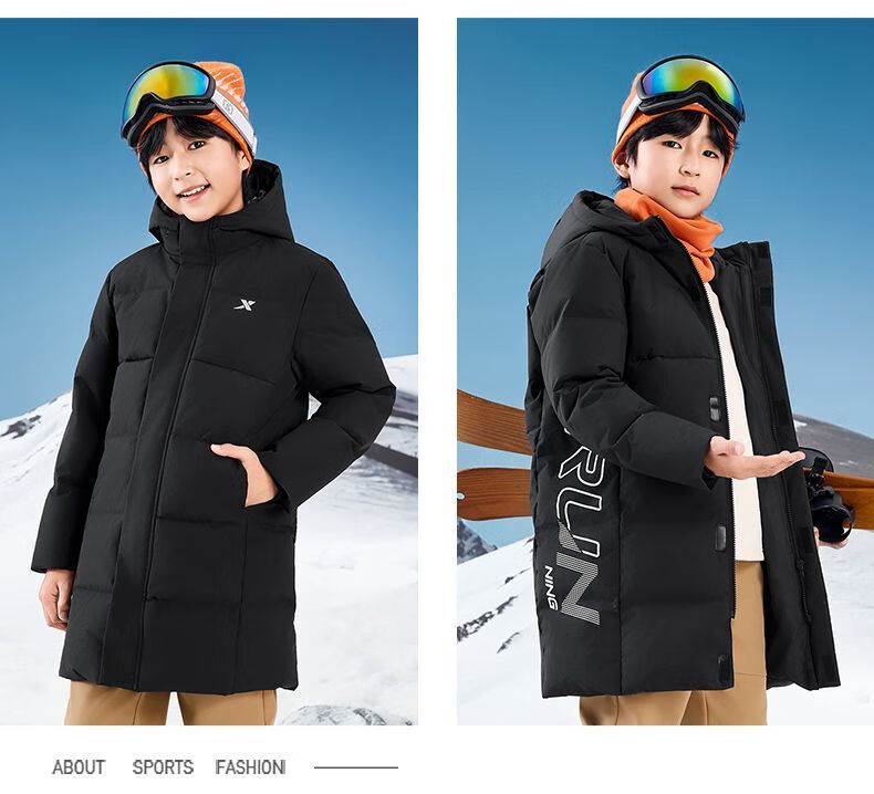 Xtep children's clothing children's printed mid-length down jacket winter boys outdoor cold protection big children warm casual winter clothing Danqing black 140
