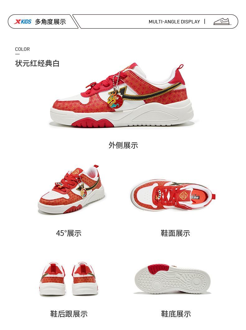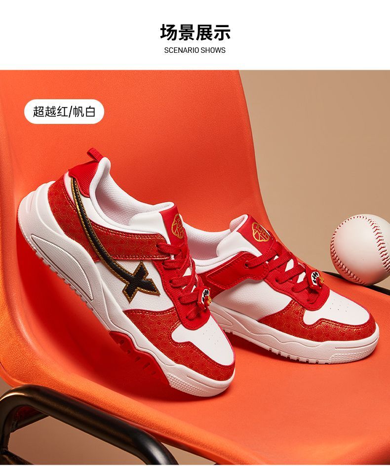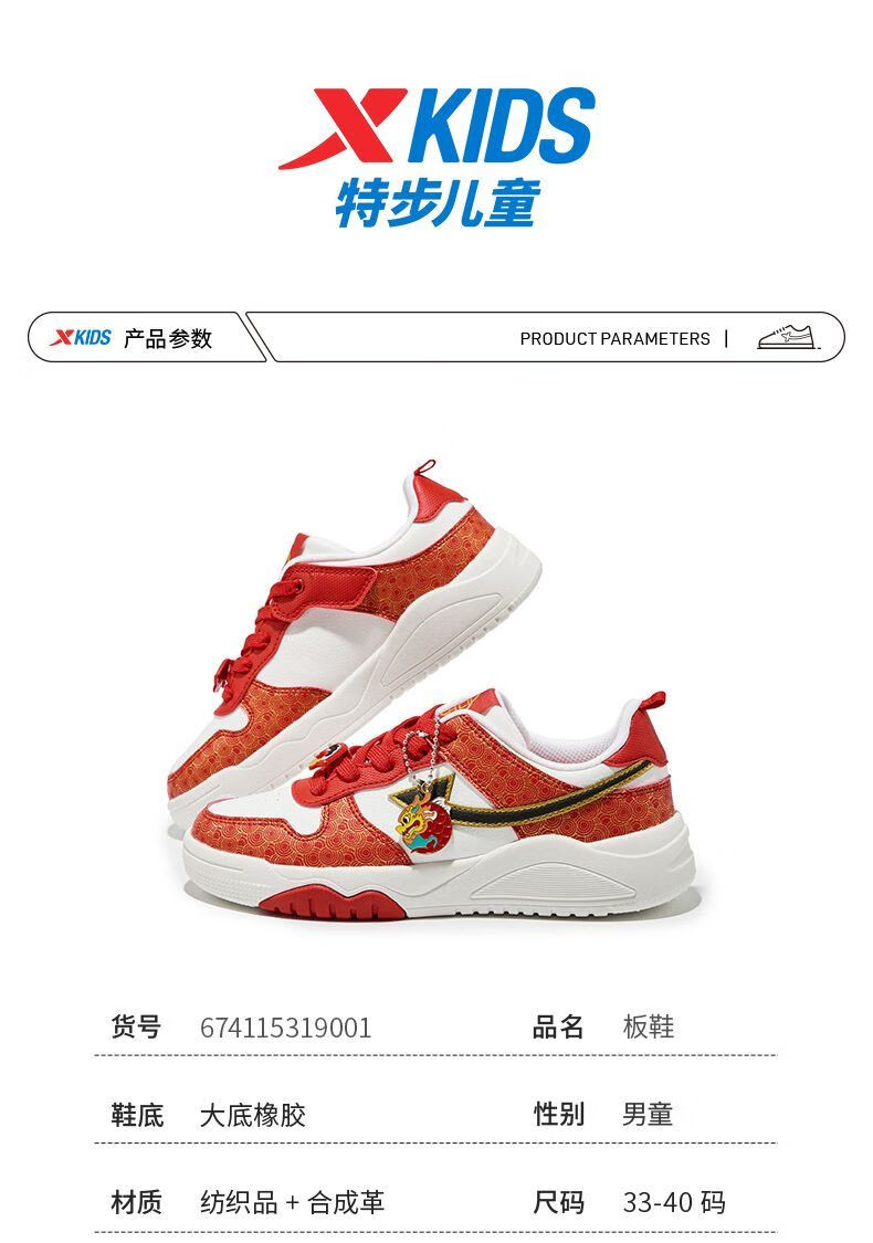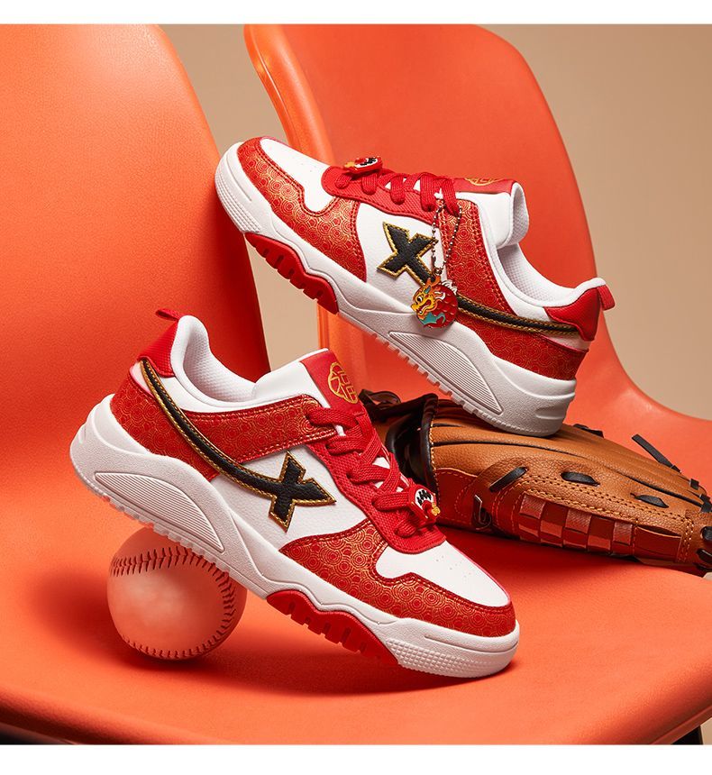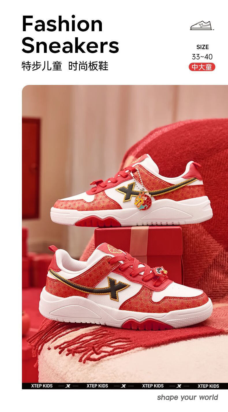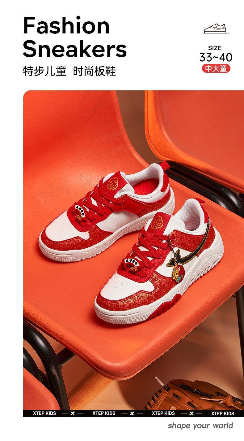 Xtep 2026 New Children's Shoes Children's Casual Shoes Boys New Year's Style Non-Slip Simple Middle and Large Children's Student Shoes Number One Red/Classic White 36