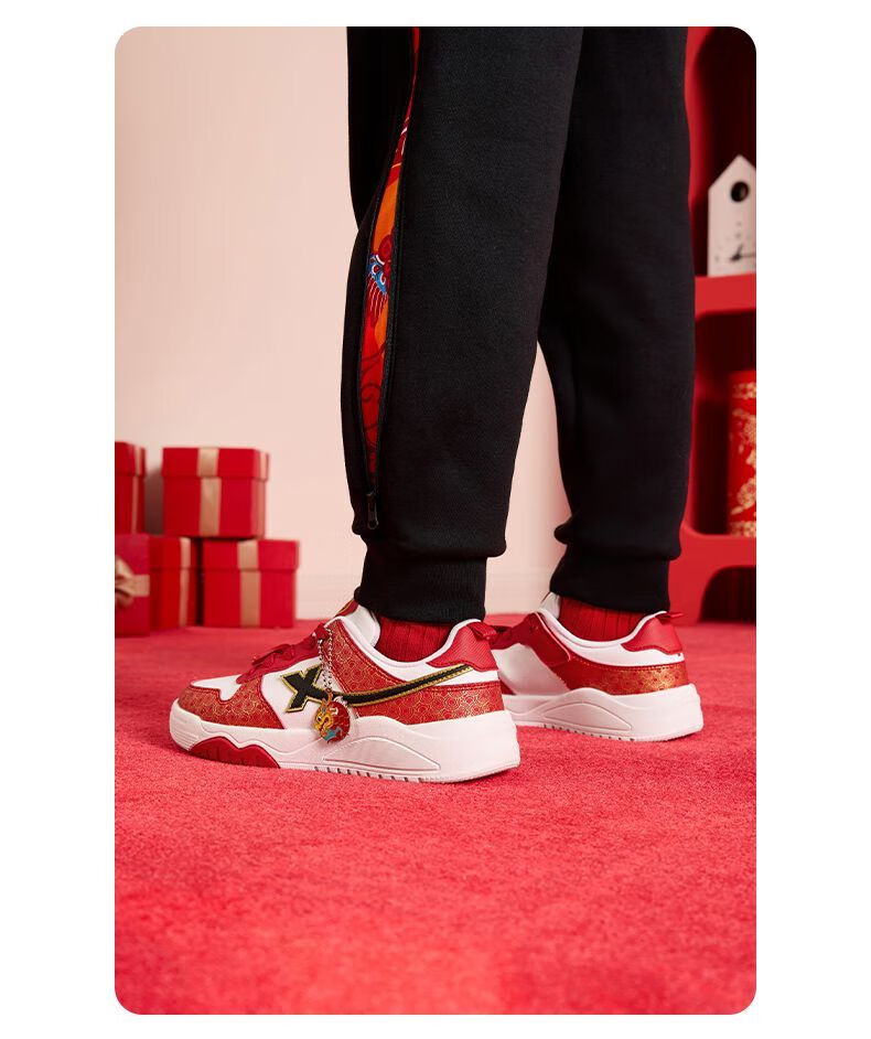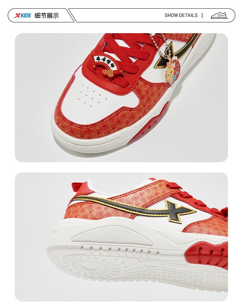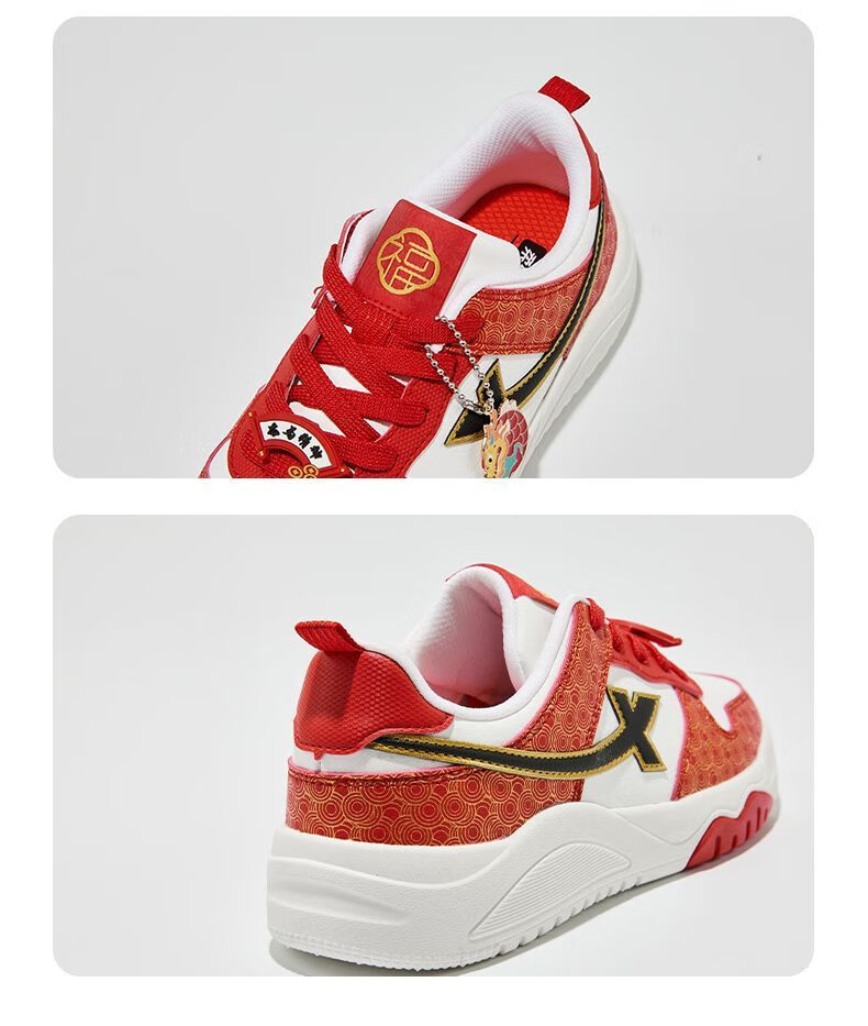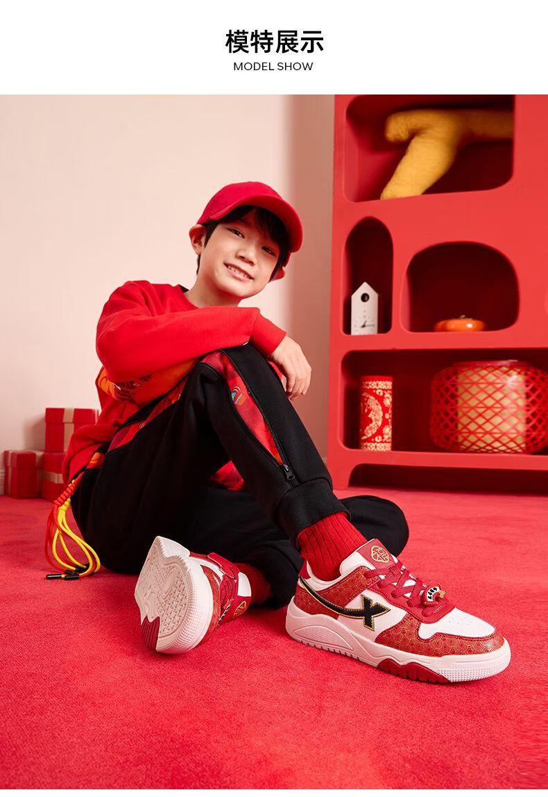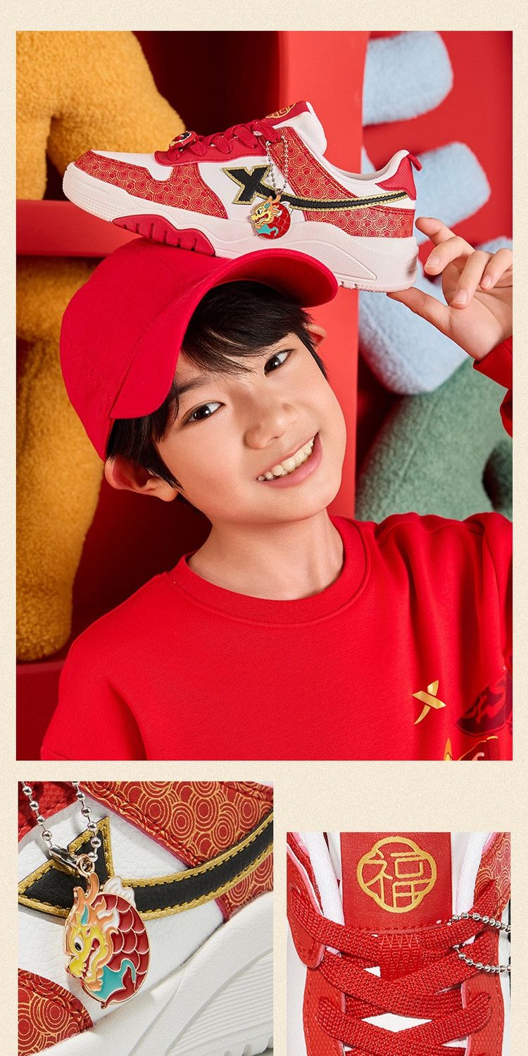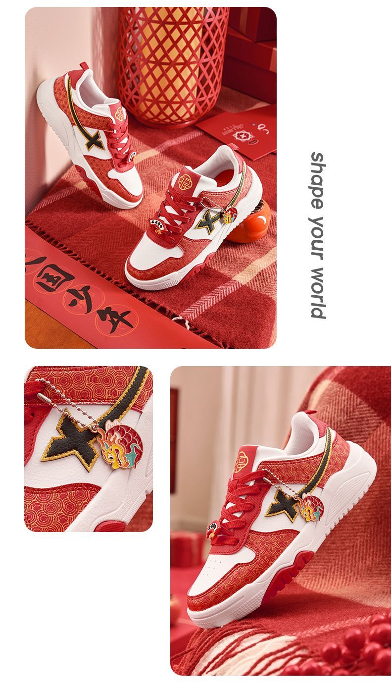 Xtep 2026 New Children's Shoes Children's Casual Shoes Boys New Year's Style Non-Slip Simple Middle and Large Children's Student Shoes Number One Red/Classic White 36