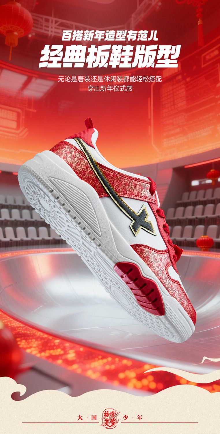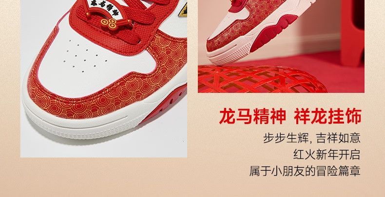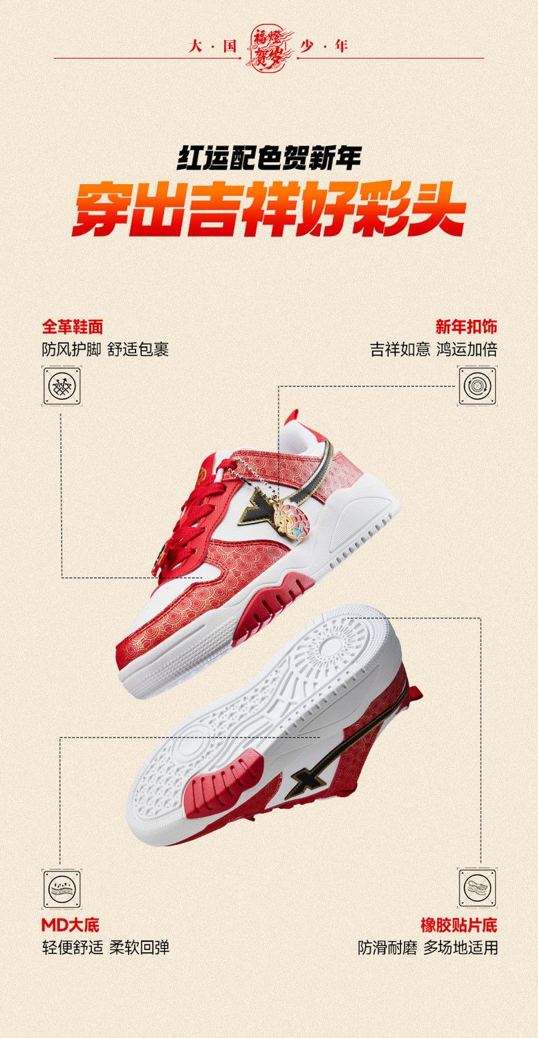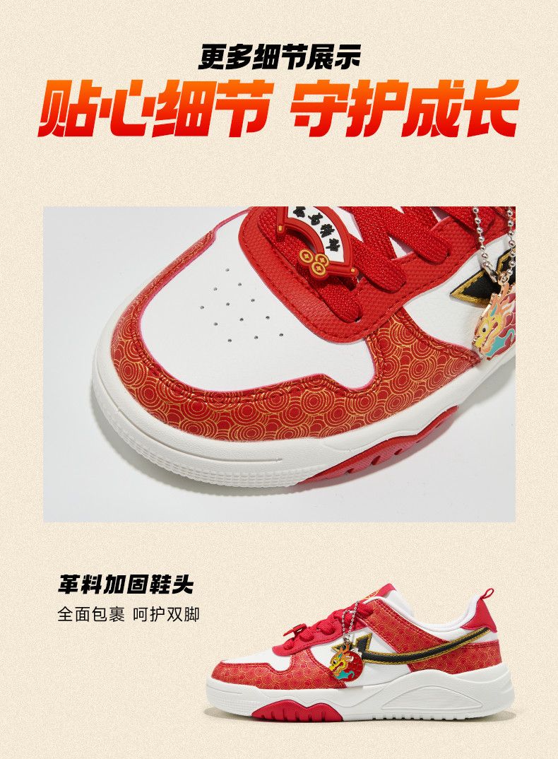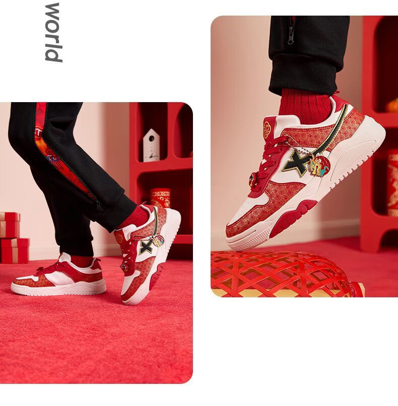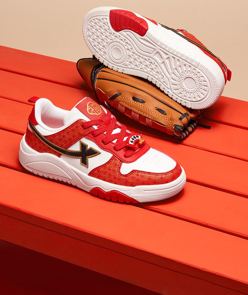 Xtep 2026 New Children's Shoes Children's Casual Shoes Boys New Year's Style Non-Slip Simple Middle and Large Children's Student Shoes Number One Red/Classic White 36