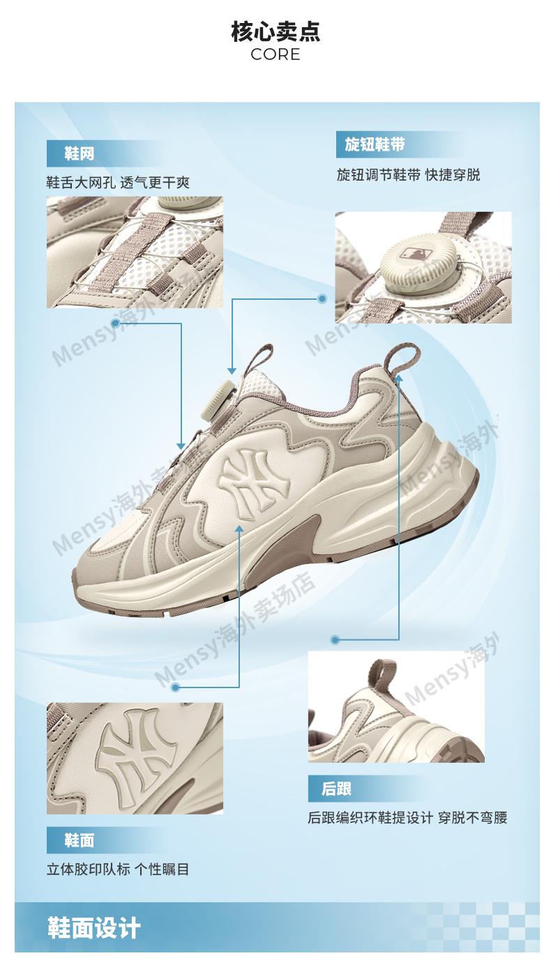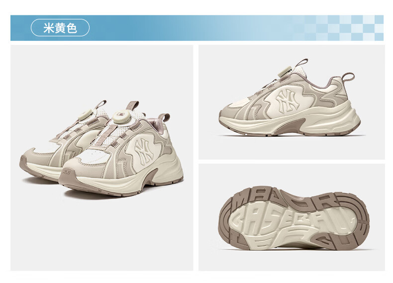MLB children's boys and girls lightweight non-slip wear-resistant CURVE RUNNER sports knob shoes 25 winter new New York Yankees 1 beige 35