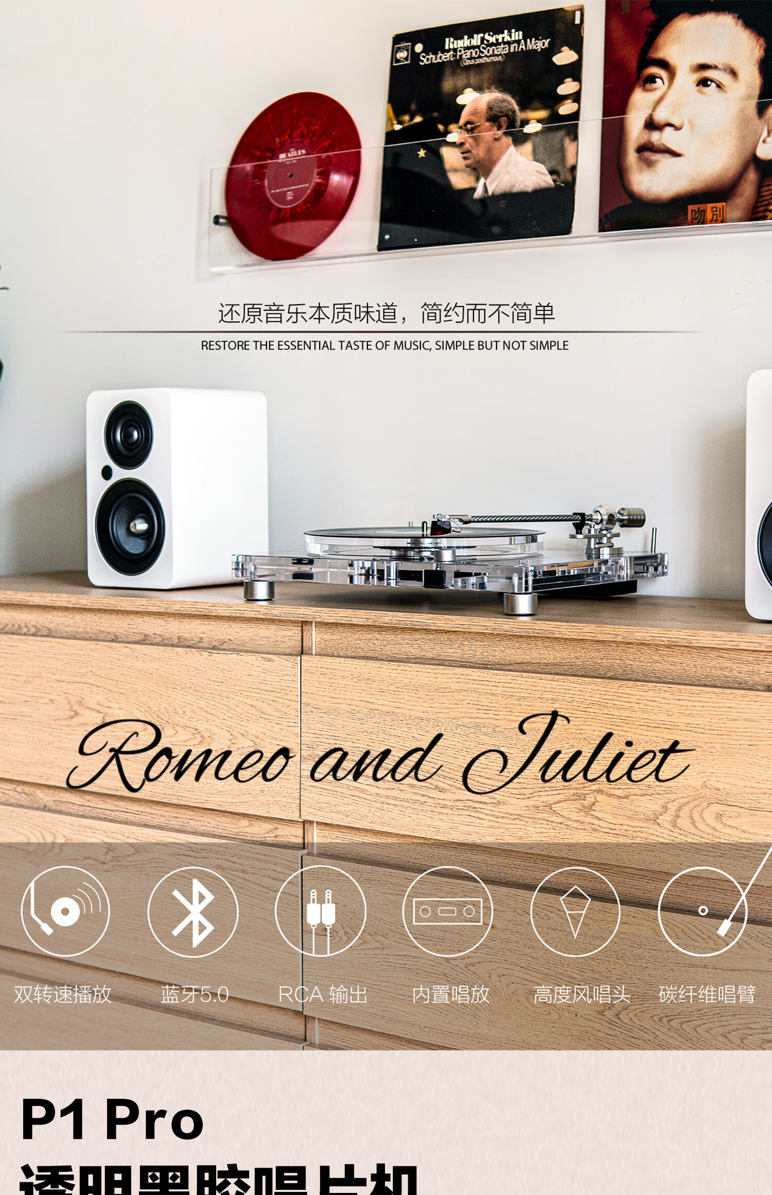 ROMEO AND JULIET 2026 new German Sound of Berlin P1PRO transparent high-value vinyl record player MM moving magnetic cartridge professional fever record player Christmas birthday gift national subsidy white
