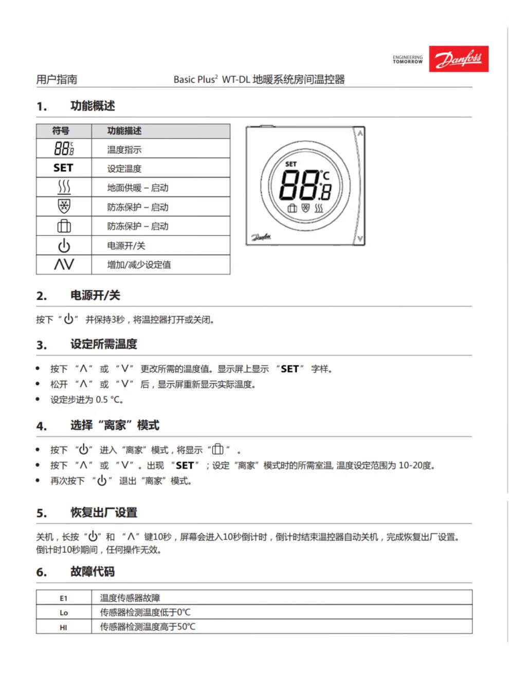 Danfoss Danfoss thermostat water floor heating big eye edge button controller panel switch water floor heating_WT-DL