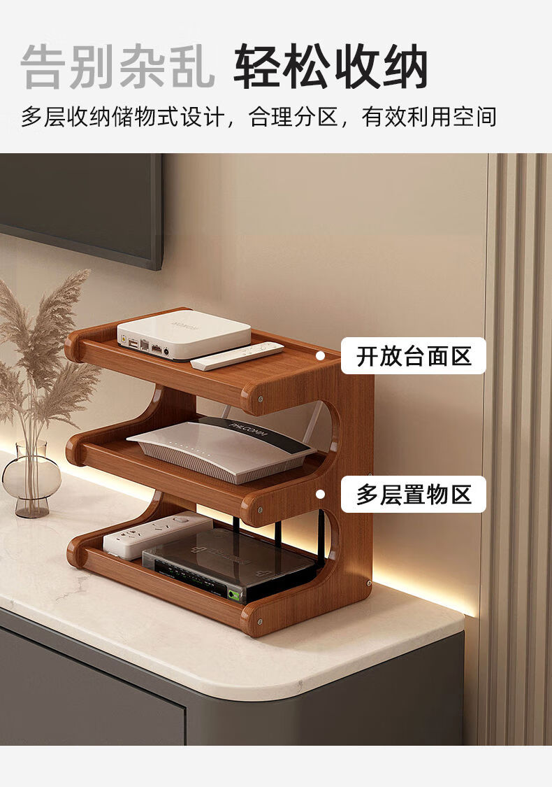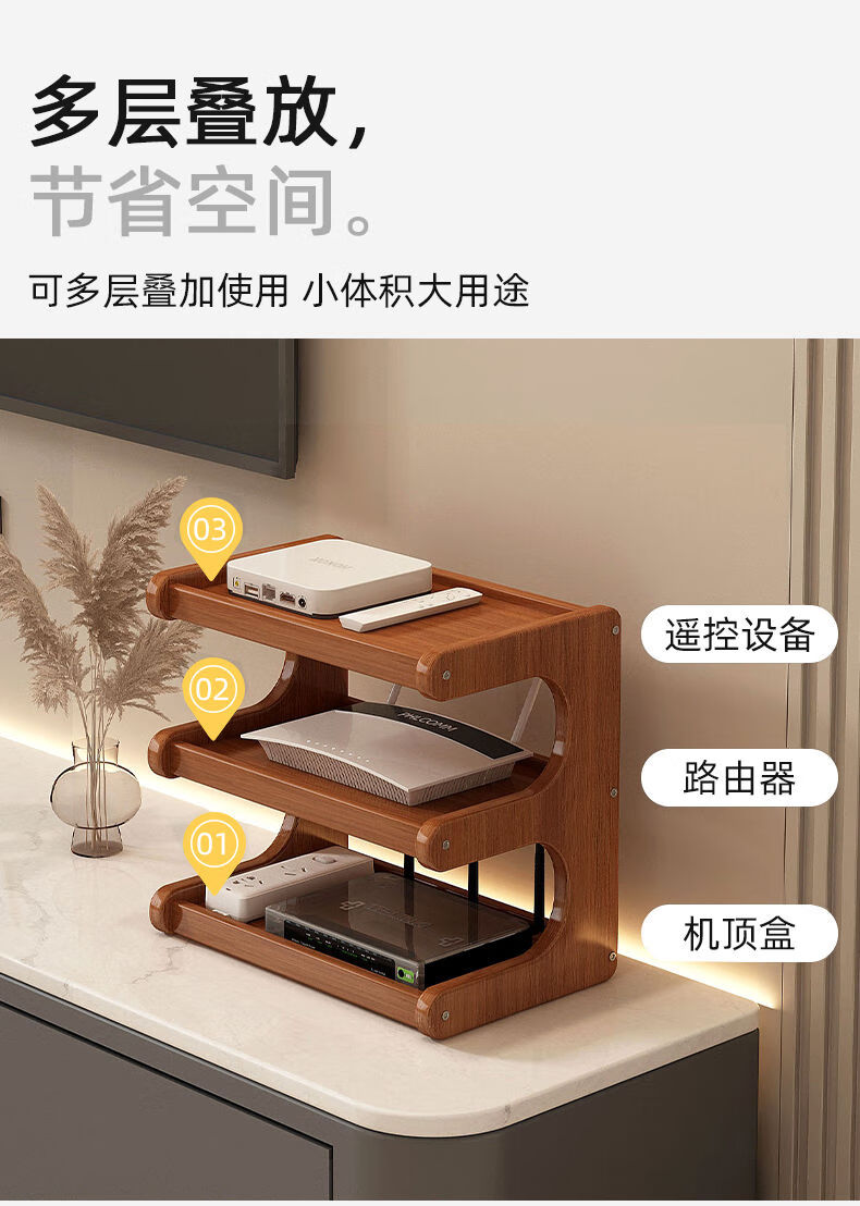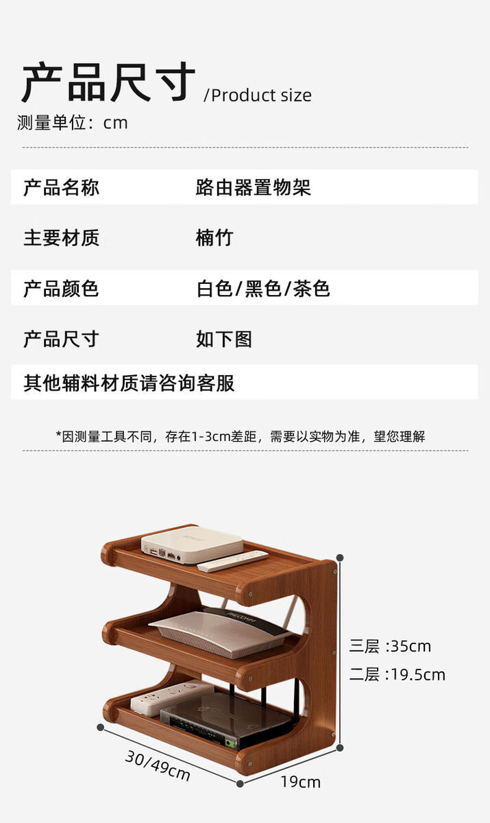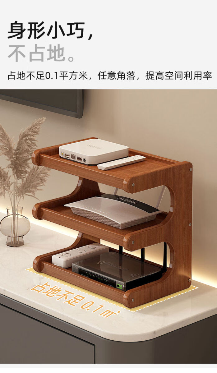 Wing Fantasy router placement rack TV set-top box wireless storage box storage rack black three layers 50cm long