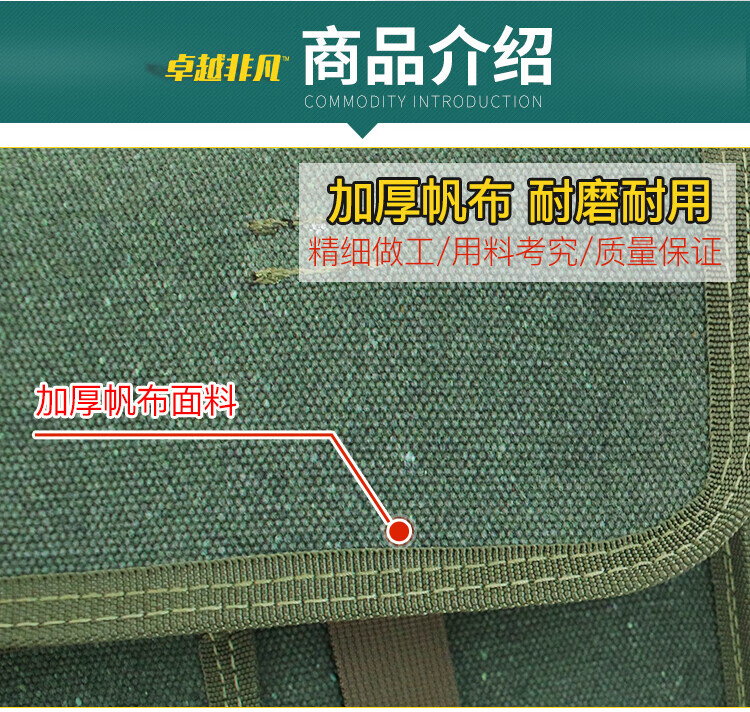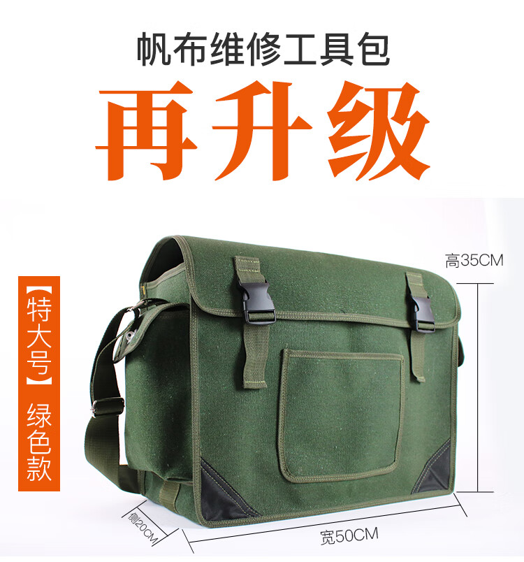 Raft core carpentry canvas tool bag is strong and durable, multi-functional repair electrician large and small wear-resistant men's tool bag No. 41 green large size 45*14*30CM