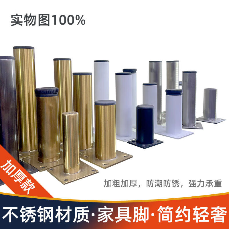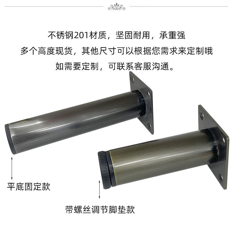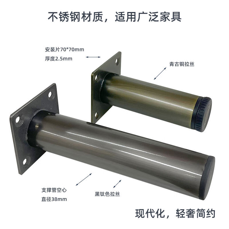 Jieyunmao stainless steel sofa legs, furniture legs, cabinet legs, table legs, thick metal legs, bed legs, bedside table legs, coffee table TV cabinet legs, black titanium brushed 65CM high adjustable foot pads