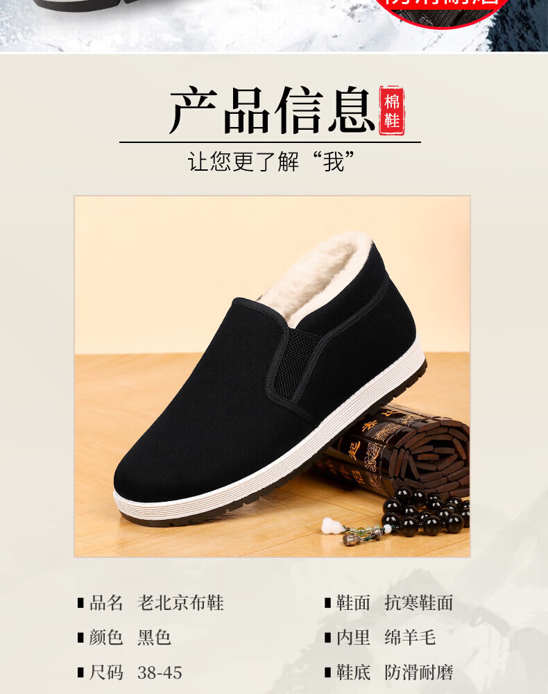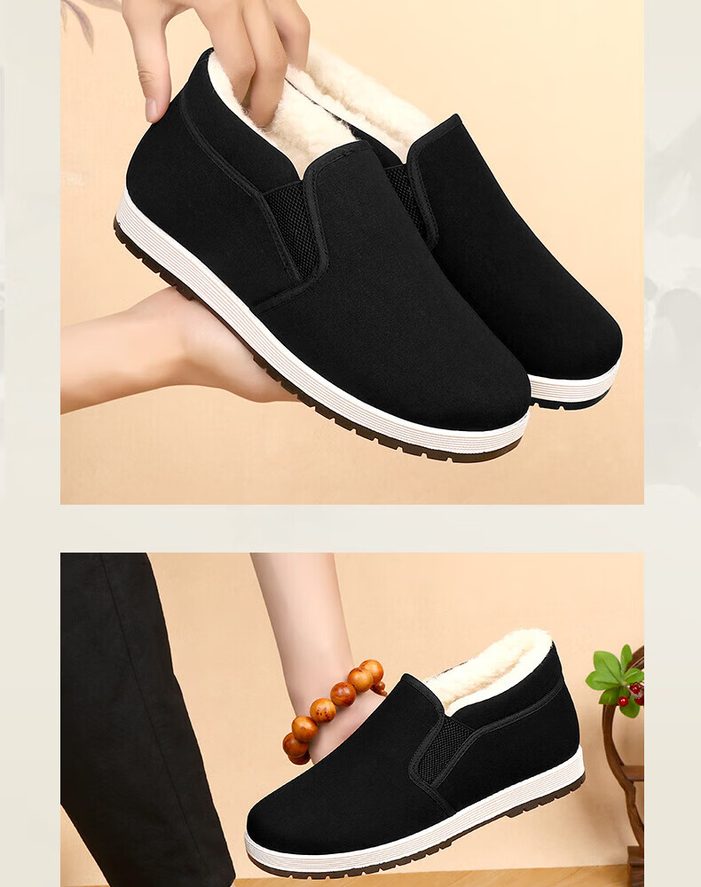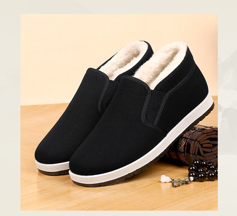 Old Beijing cloth shoes men's winter thickened warm non-slip casual cotton shoes for middle-aged and elderly people black (plus velvet) 42