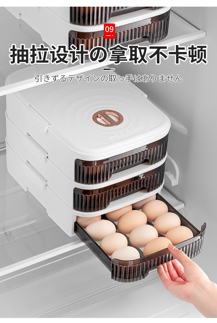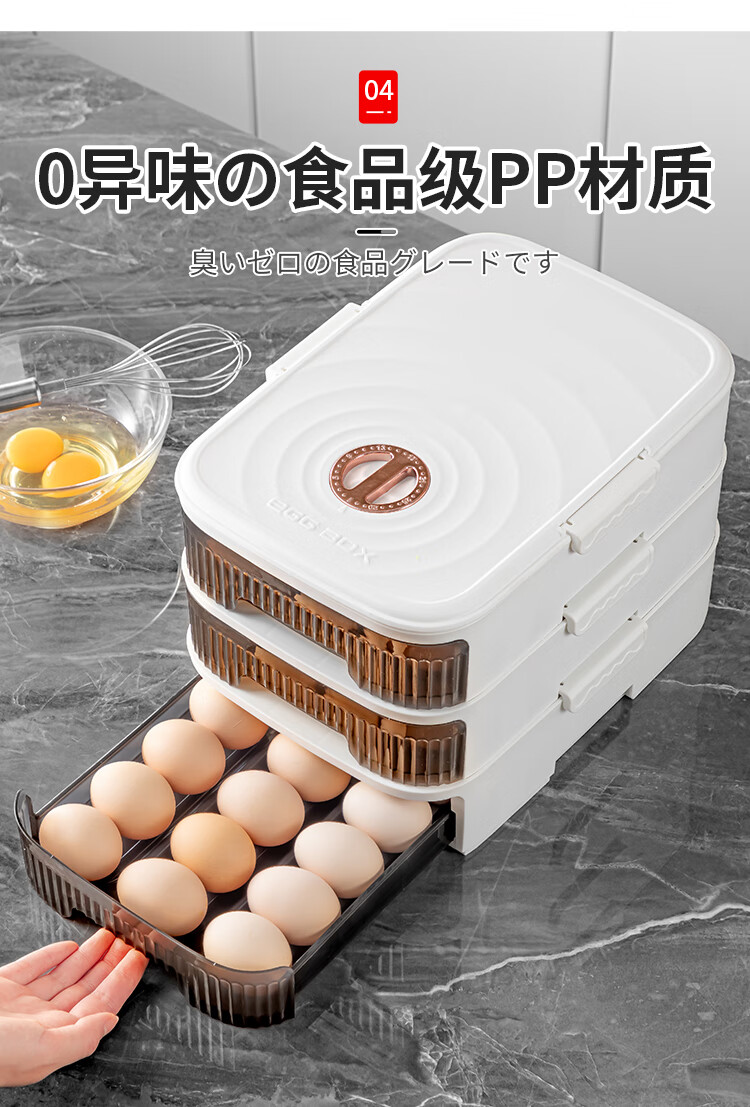 Home KATEI STORY Japanese refrigerator egg storage box drawer-type egg box refrigerator food-grade crisper rolling egg storage device white one layer holds about 21 pieces