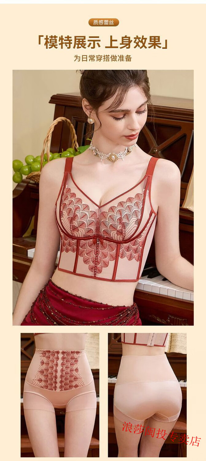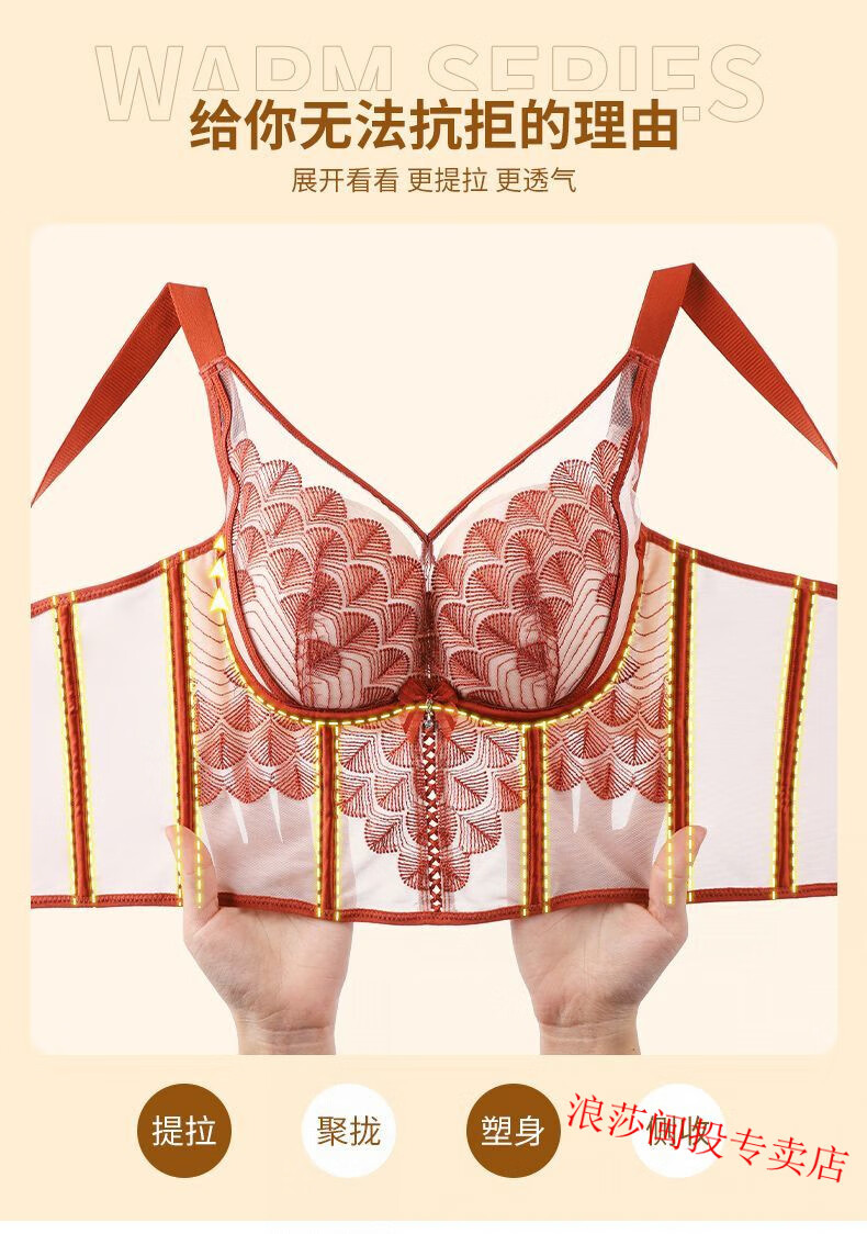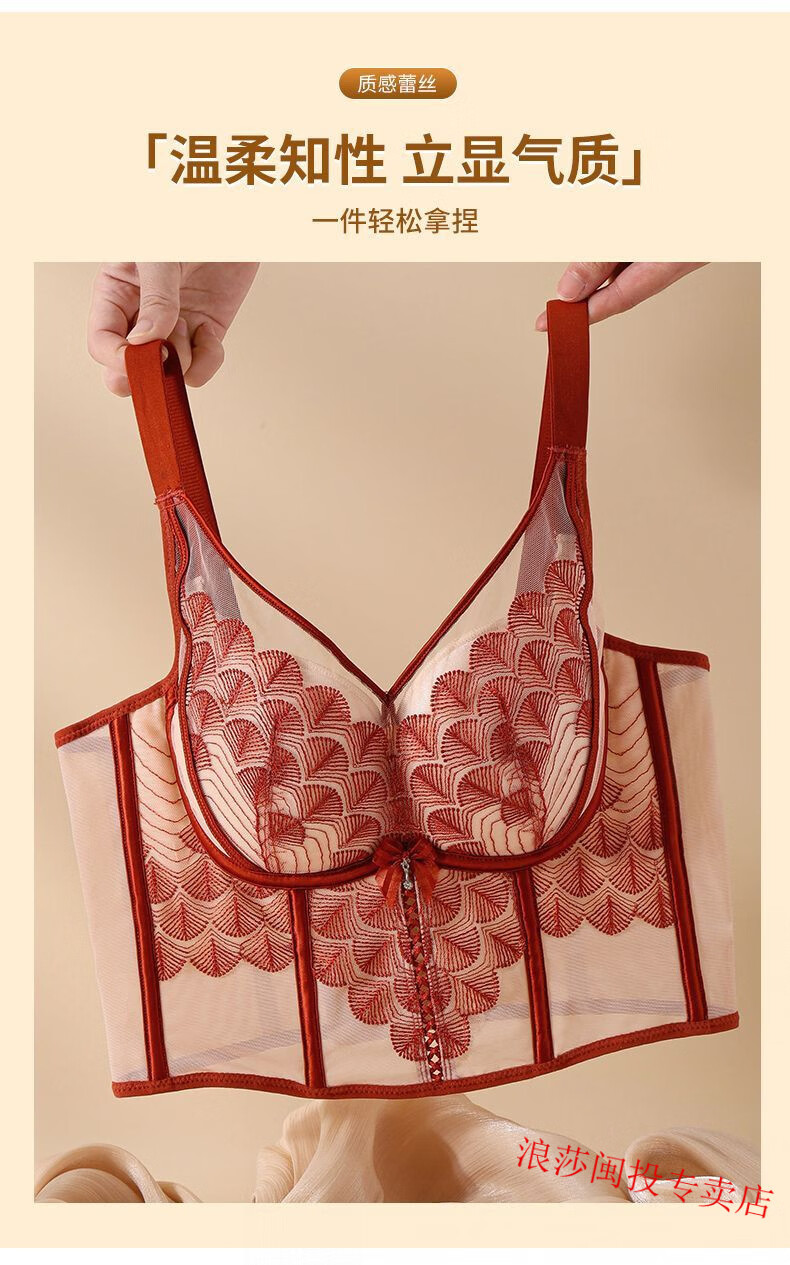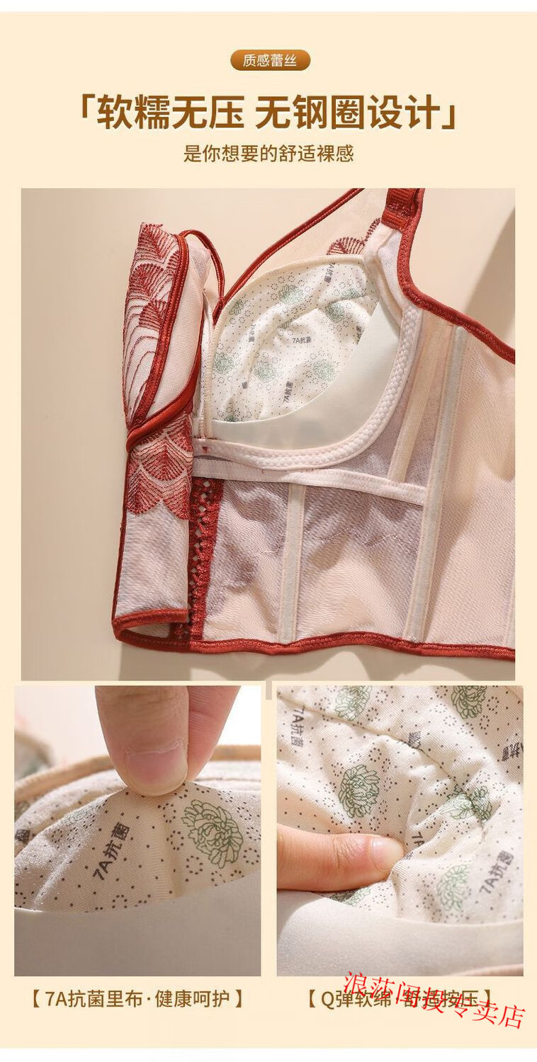 LangSha's new underwire body-shaping adjustable breast-retracting bra push-up bra sagging vest bra underwear Ancora red single bra 75A 34B