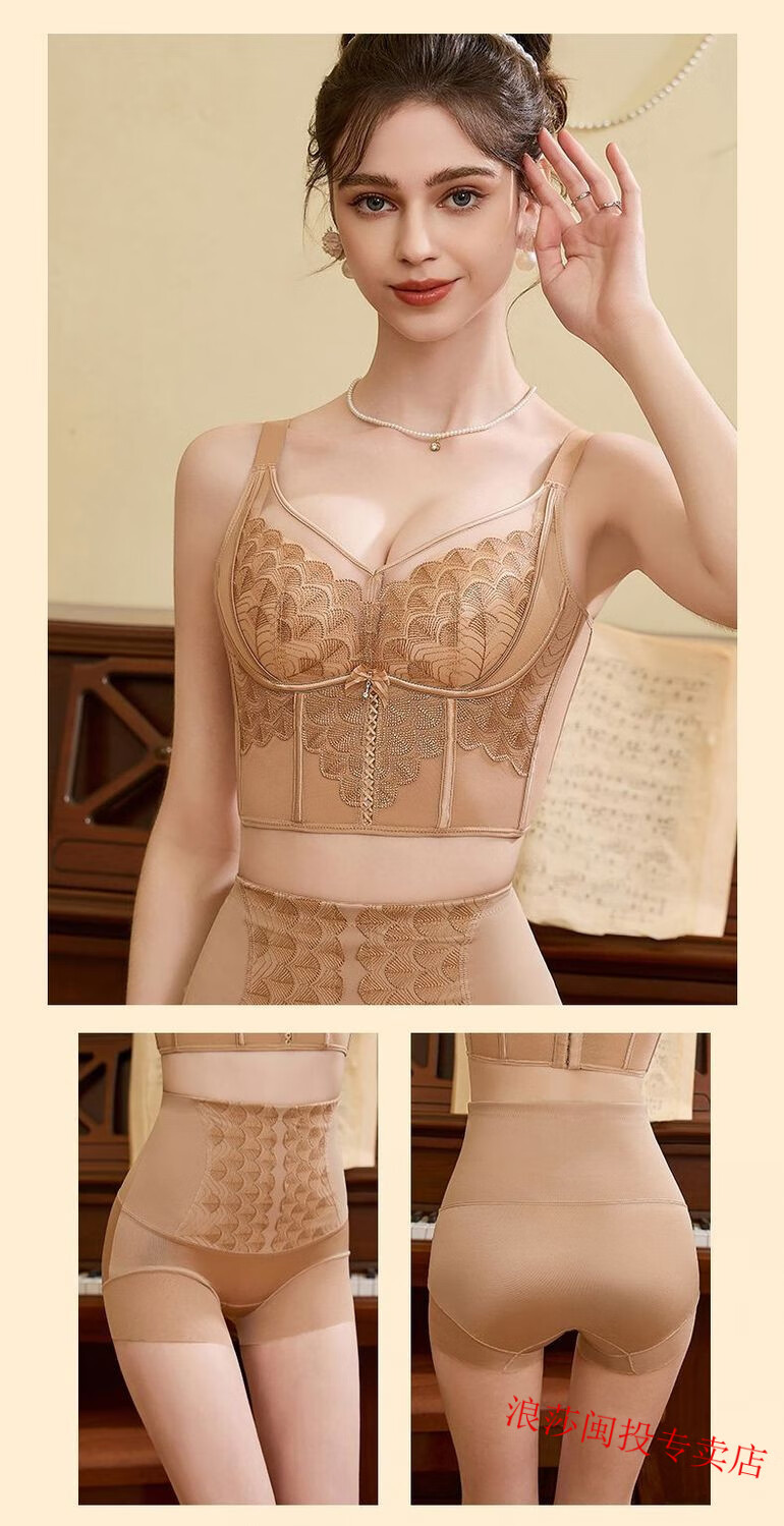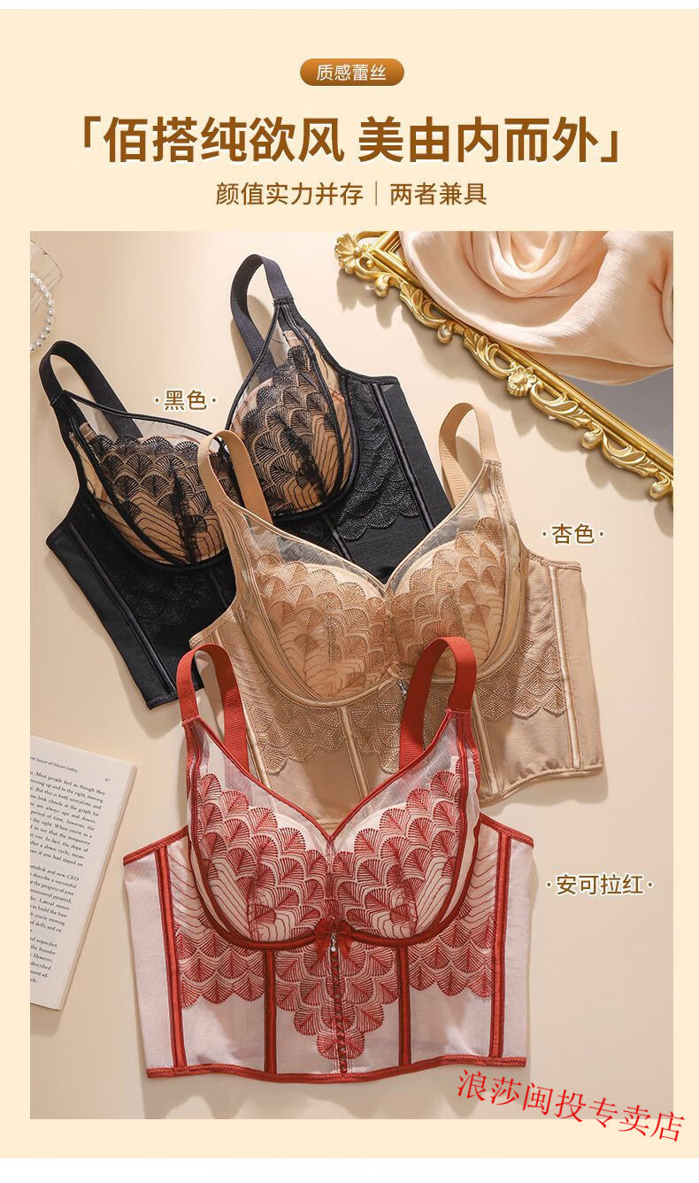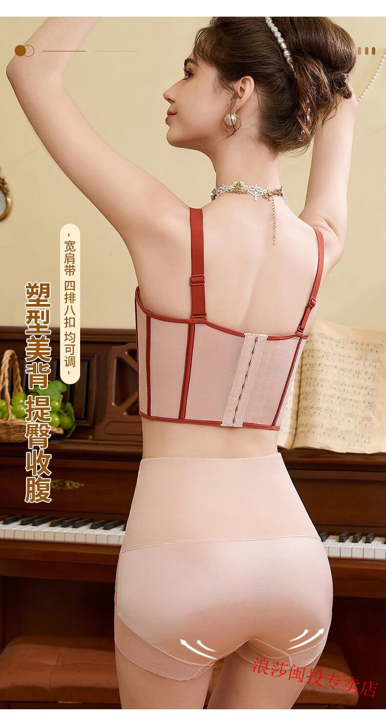 LangSha's new underwire body-shaping adjustable breast-retracting bra push-up bra sagging vest bra underwear Ancora red single bra 75A 34B