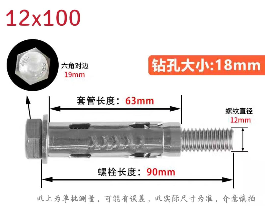 Fantasy hollow brick foam brick expansion pipe scale pull three expansion bolts photovoltaic installation stainless steel 201 fish scale pull expansion pipe M10 1