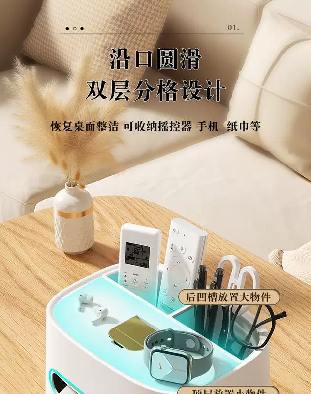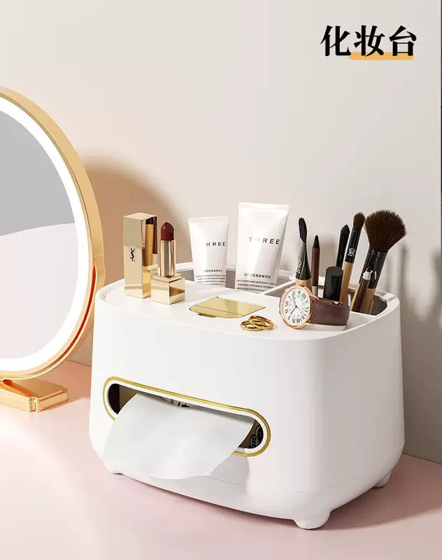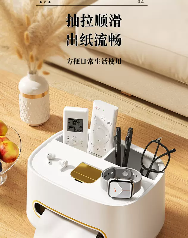 Yusenyi Light Luxury Tissue Box Bedroom Paper Box Living Room Coffee Table Multi-Function Remote Control Storage Home Desktop Creative Ornaments Multi-function High-end Tissue Box Pearl White-Light Luxury Green (Pack of Two) With Non-Slip Feet