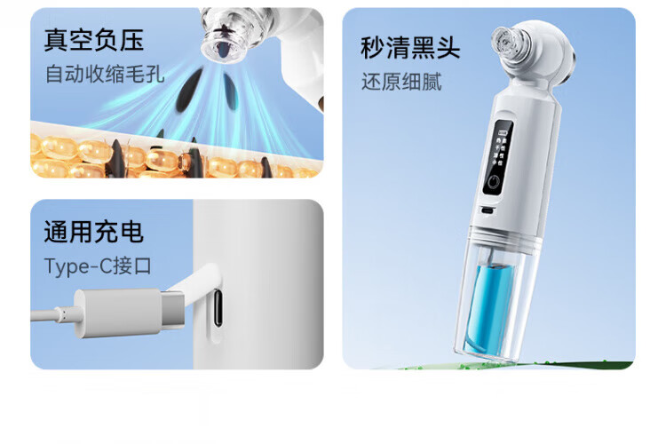 CKULH German blackhead instrument, blackhead suction device, home facial beauty instrument, small bubble beauty instrument, cleans blackheads, removes acne, shrinks pores, gentle suction device, super suction, blue light cleaning model