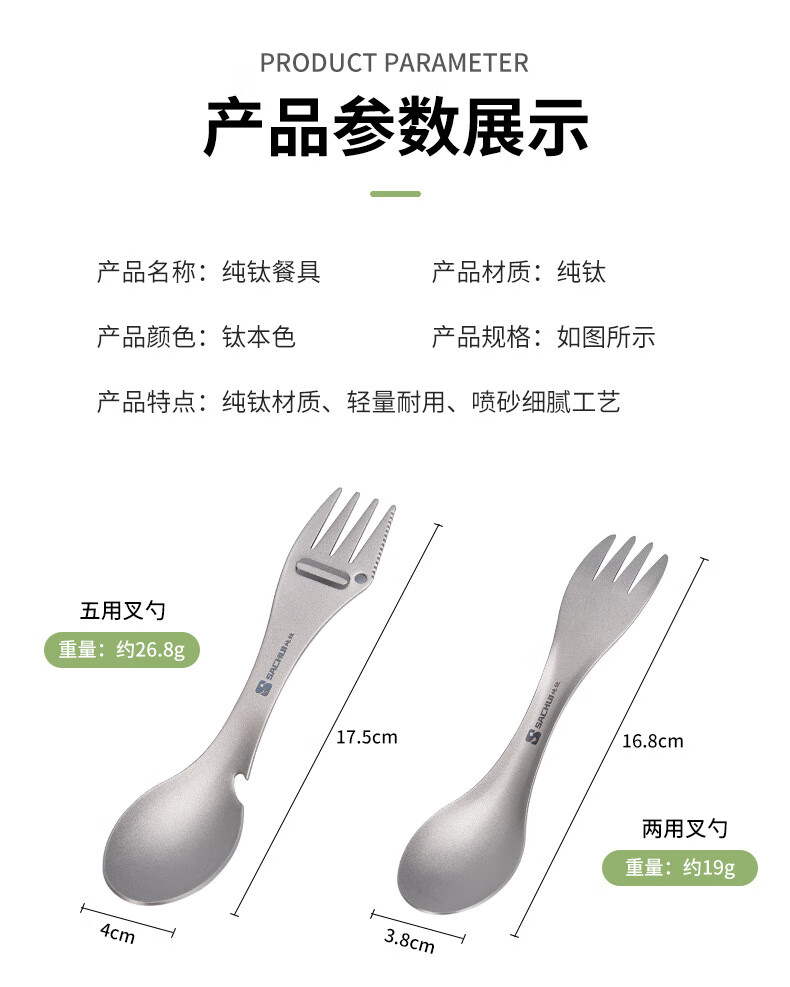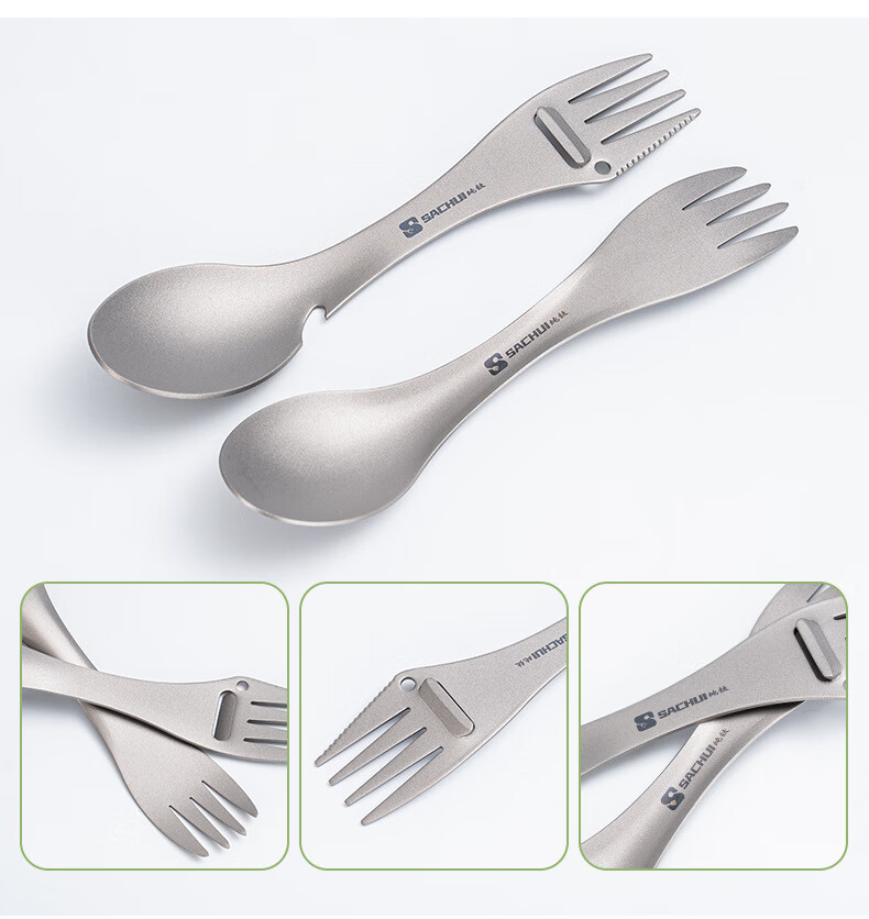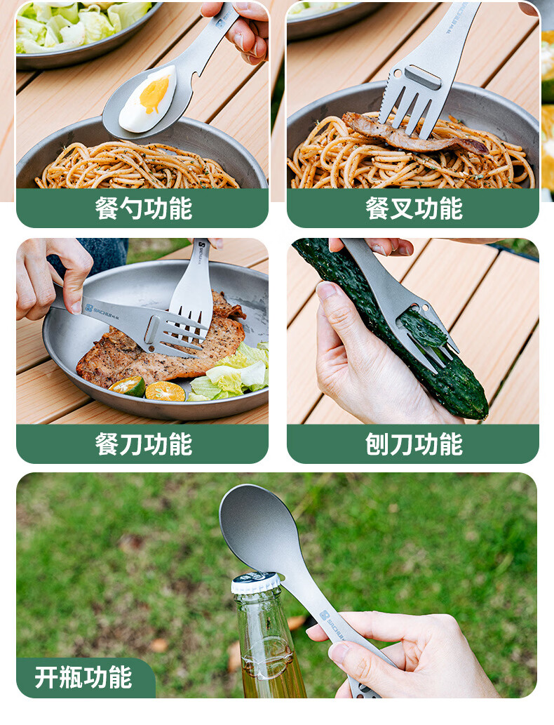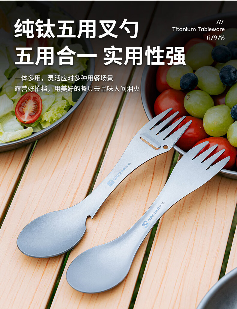 SACHUI pure titanium camping picnic tableware outdoor bottle opener knife, fork and spoon multi-function five-in-one lightweight portable titanium alloy pure titanium five-in-one multi-function spoon and fork
