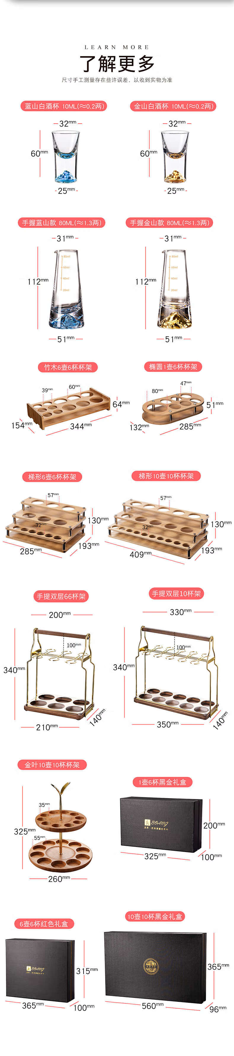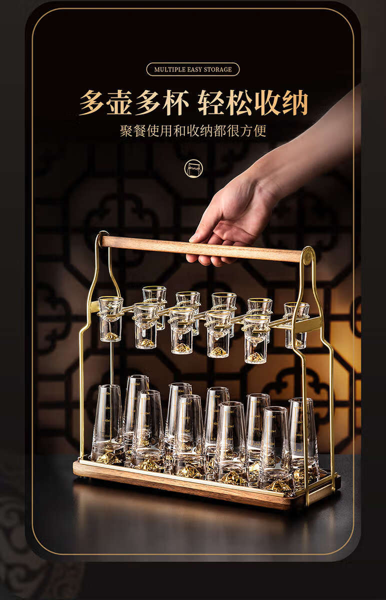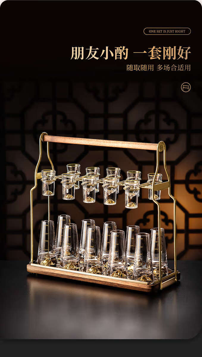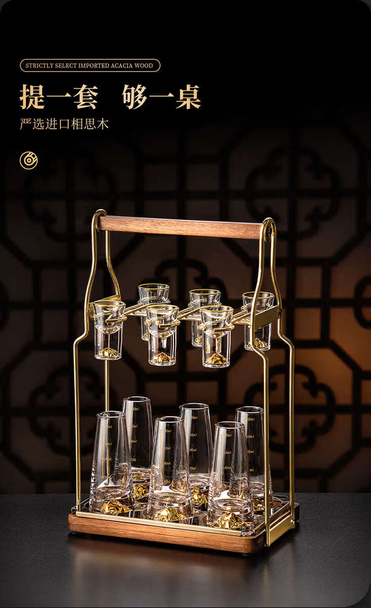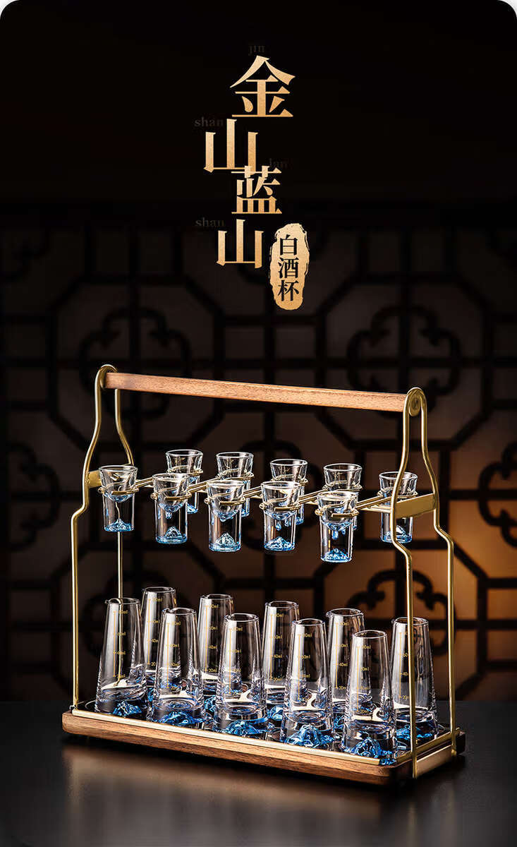 Yusenyi white wine glass set household crystal glass small cup wine cup wine divider wine set cone-shaped Blue Mountain pot/10 Blue Mountain cups 10 trapezoidal tray