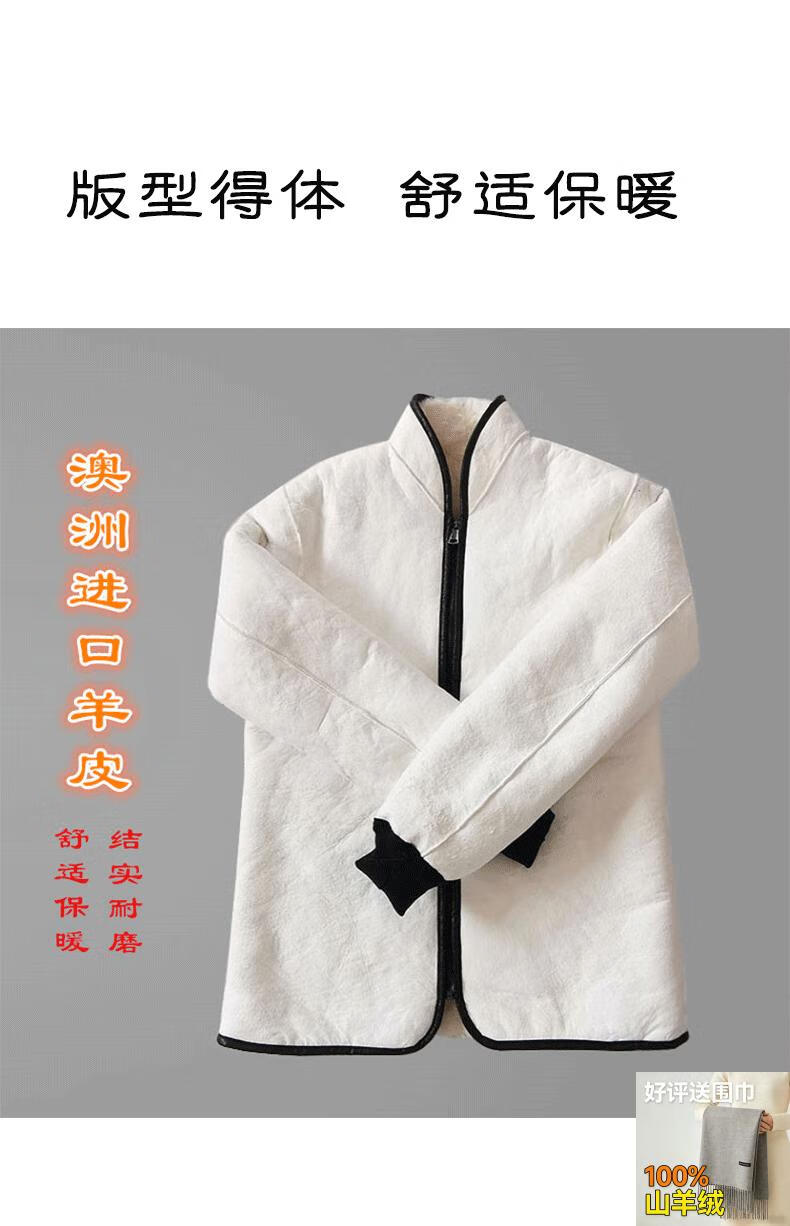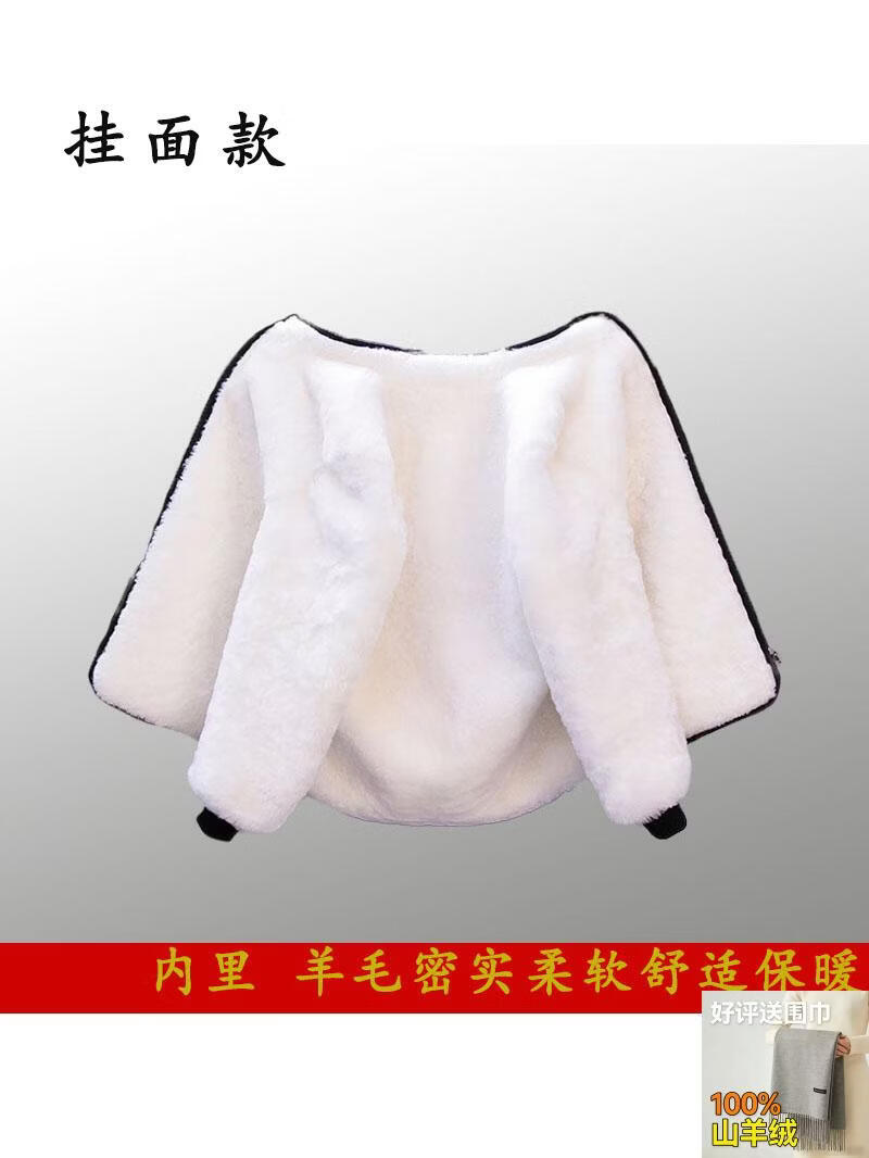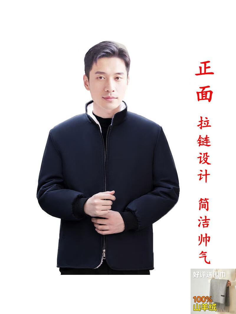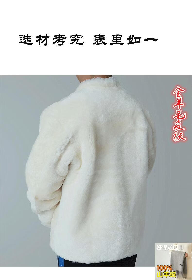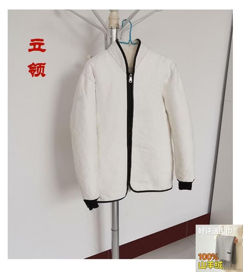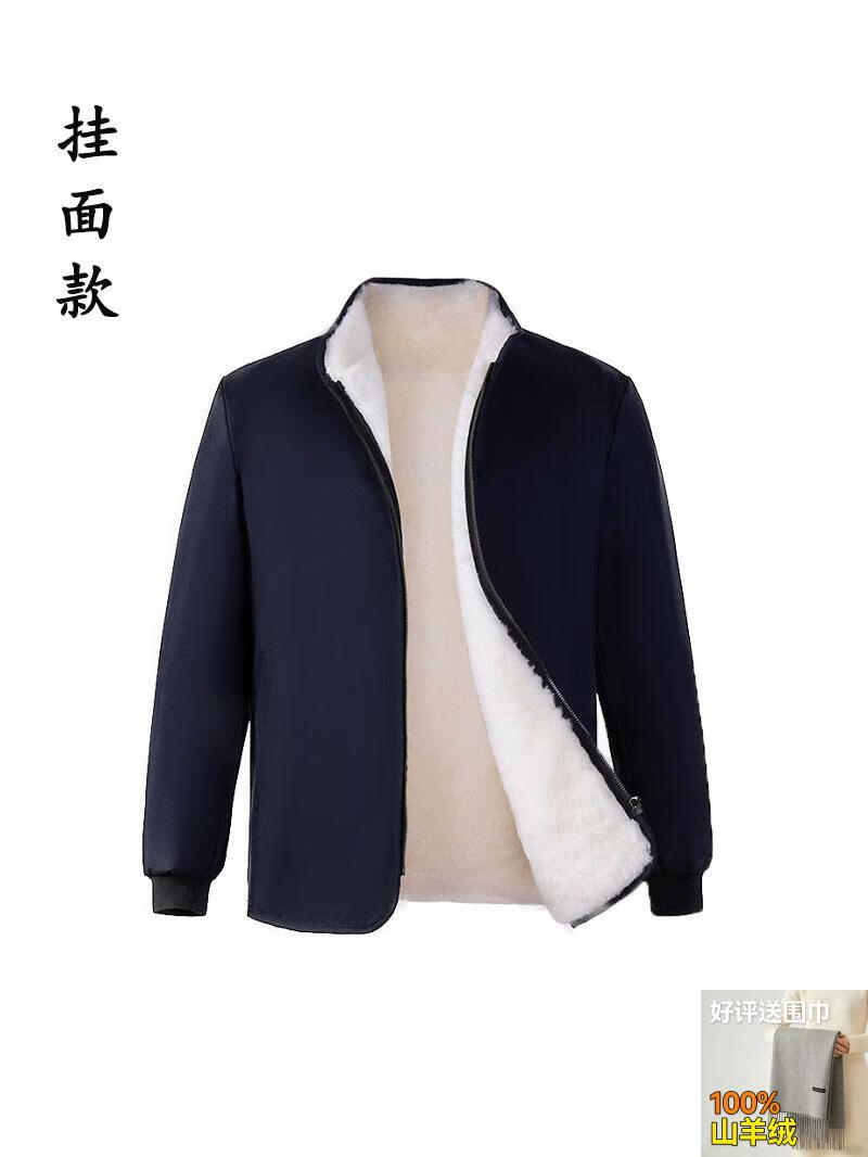 FHHUABD Ordos 100% Cashmere Sheepskin Cotton Jacket for Men and Women Thickened Warm Stand-up Collar Middle-aged and Elderly Sheep Sheared Liner Stand-up Collar S