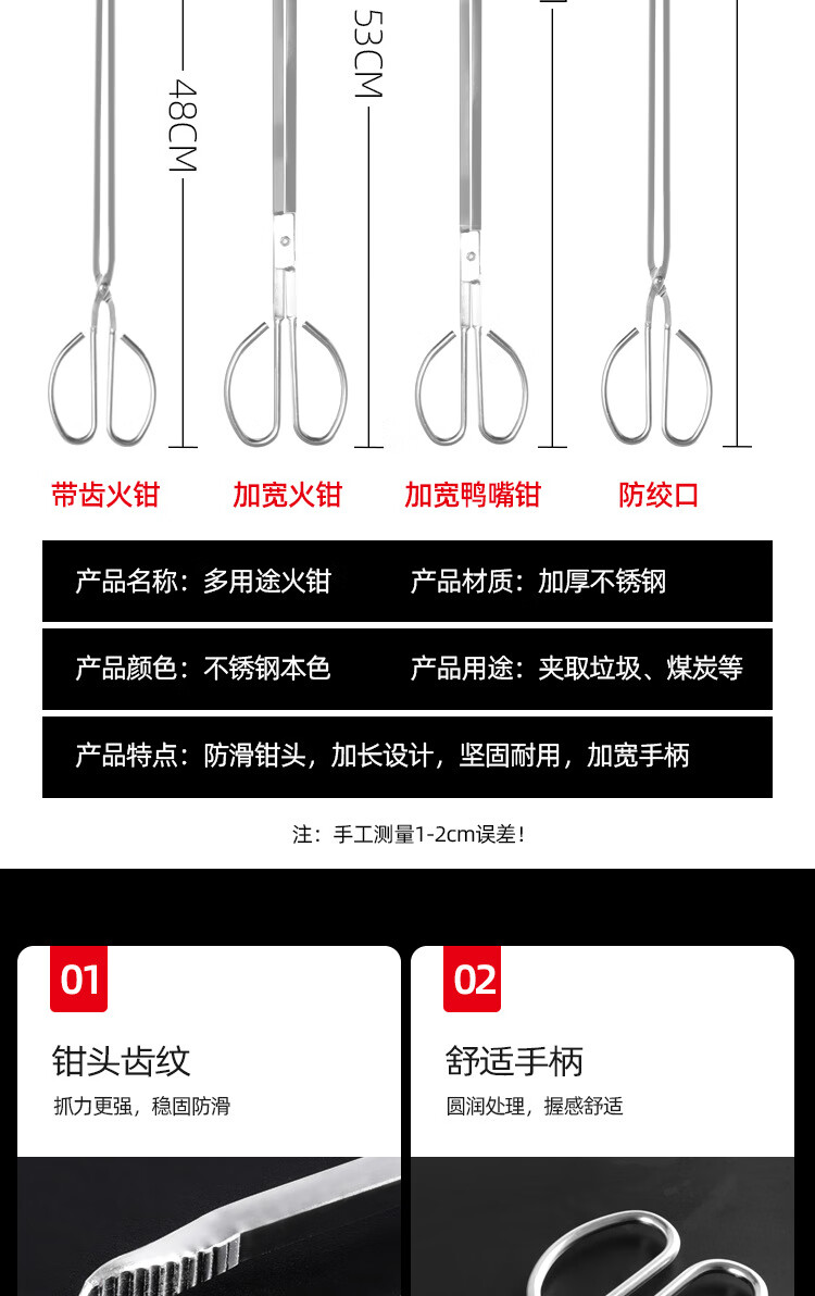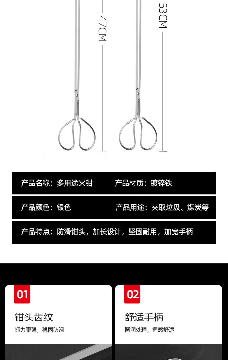 Qinju stainless steel fish pliers, eel and loach clips, garbage collection clips, sanitation extension clips, household pickups, carbon fire pliers, stainless steel straight mouth style 29