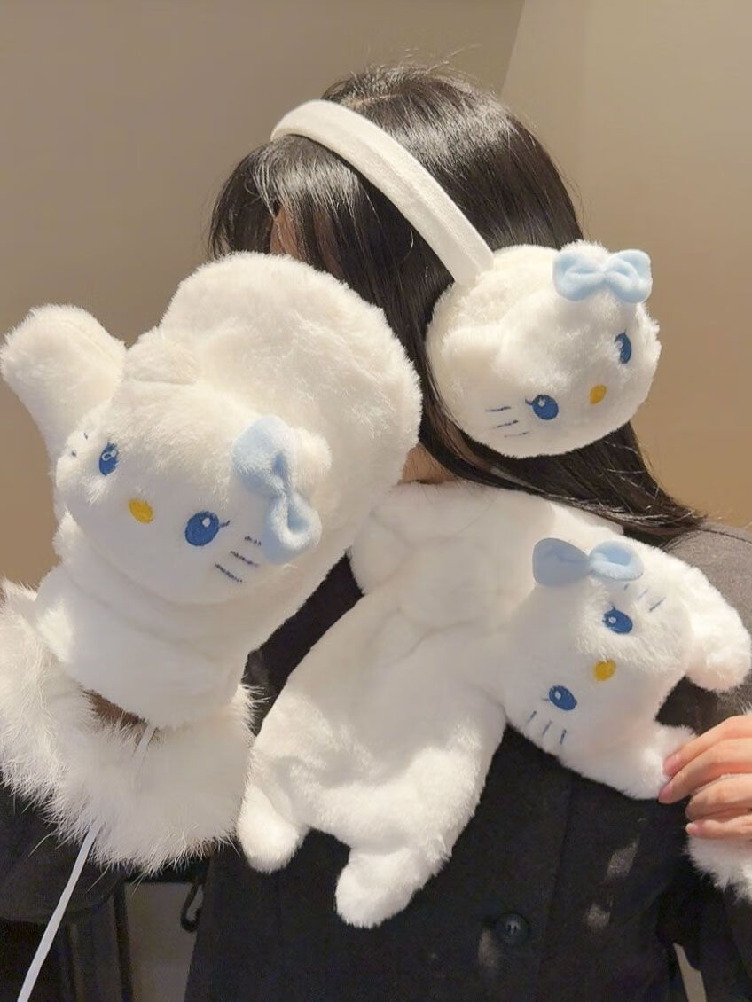 Ultraman winter gift three-piece set of cold-proof gloves for women in winter Japanese style warm neck scarf gloves for girls KT-pink-ear warmers
