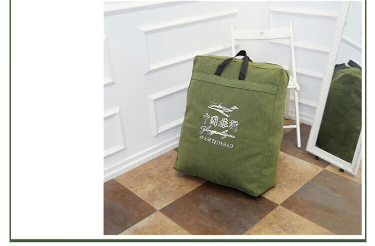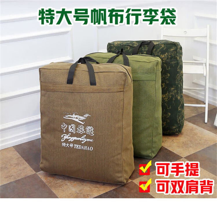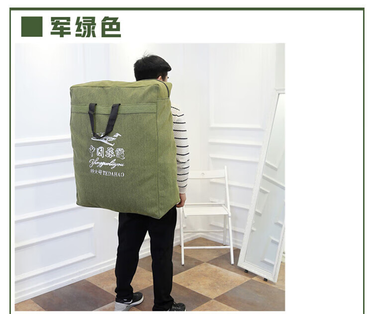 Fantasy extra large thick canvas luggage bag quilt large capacity denim bag migrant worker bag shoulder travel bag moving bag military green extra large size 88L73*55*22cm