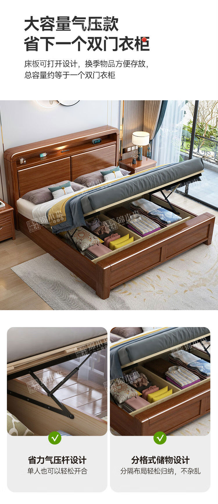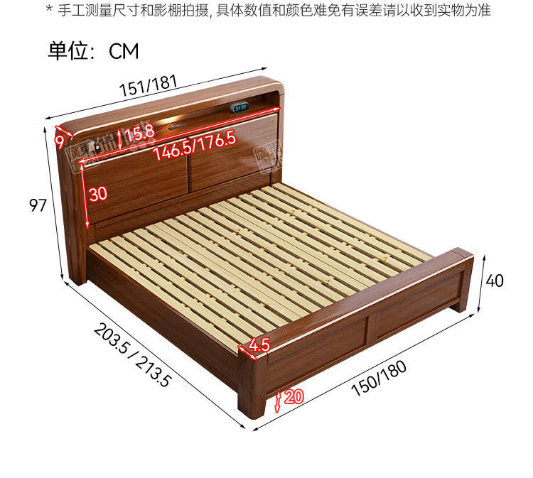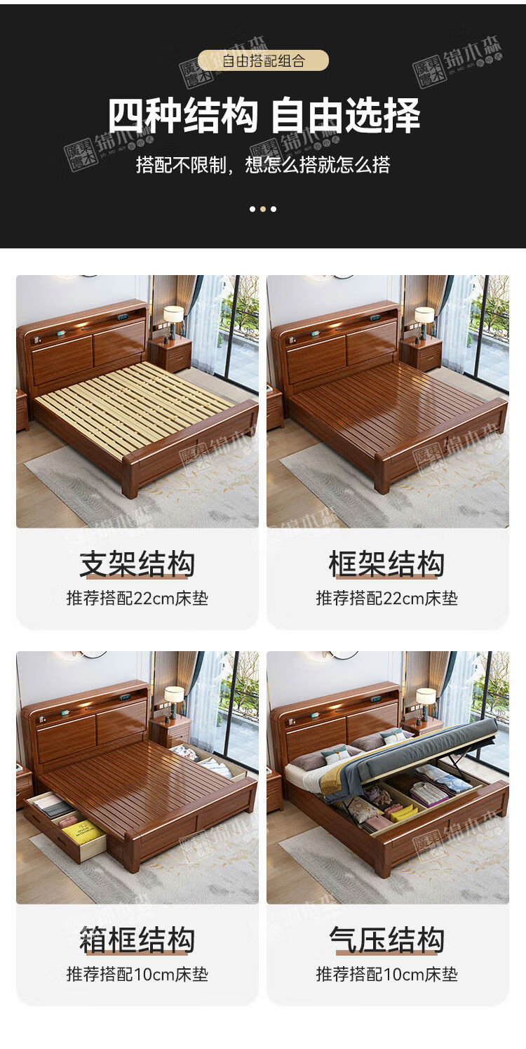 Yusenyi bed home bedroom 18m double bed 15m single bed bed + 1 bedside table 12002000 drawer structure