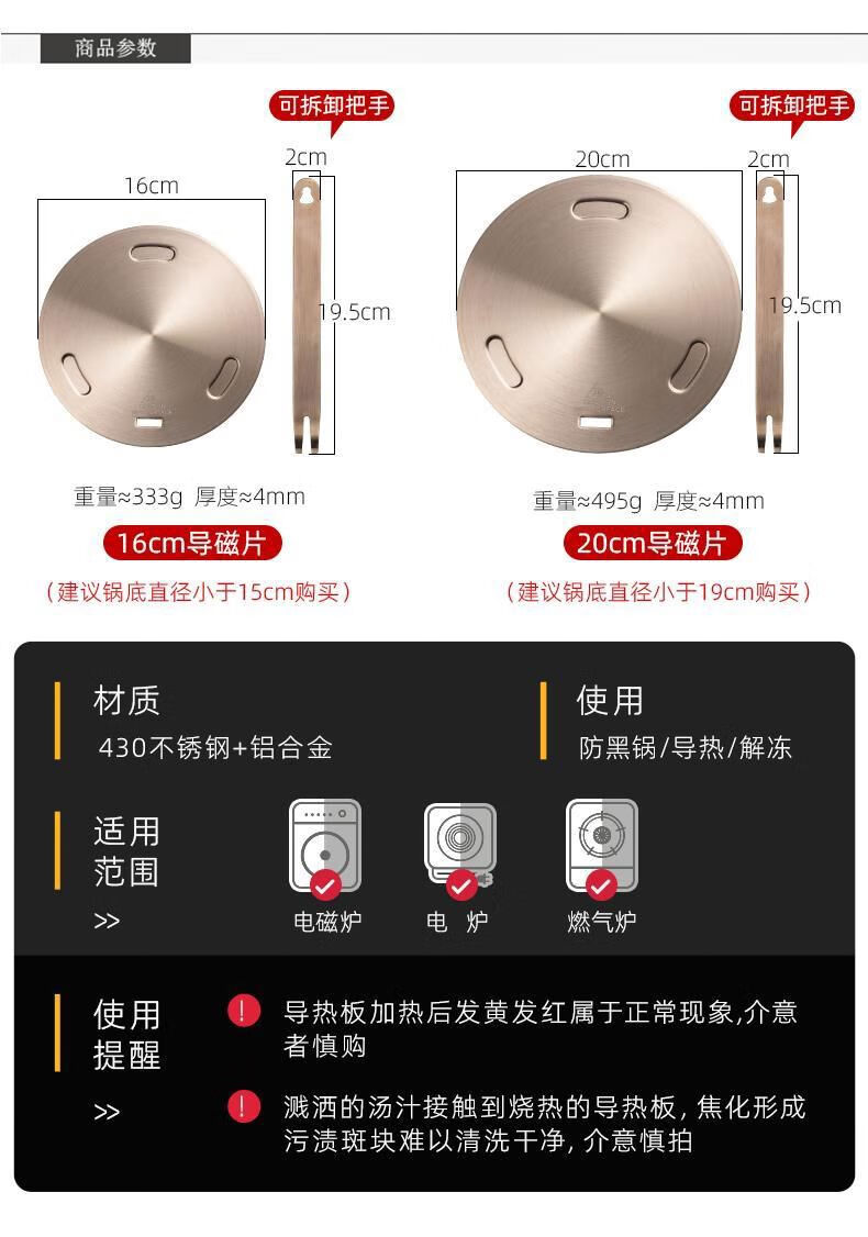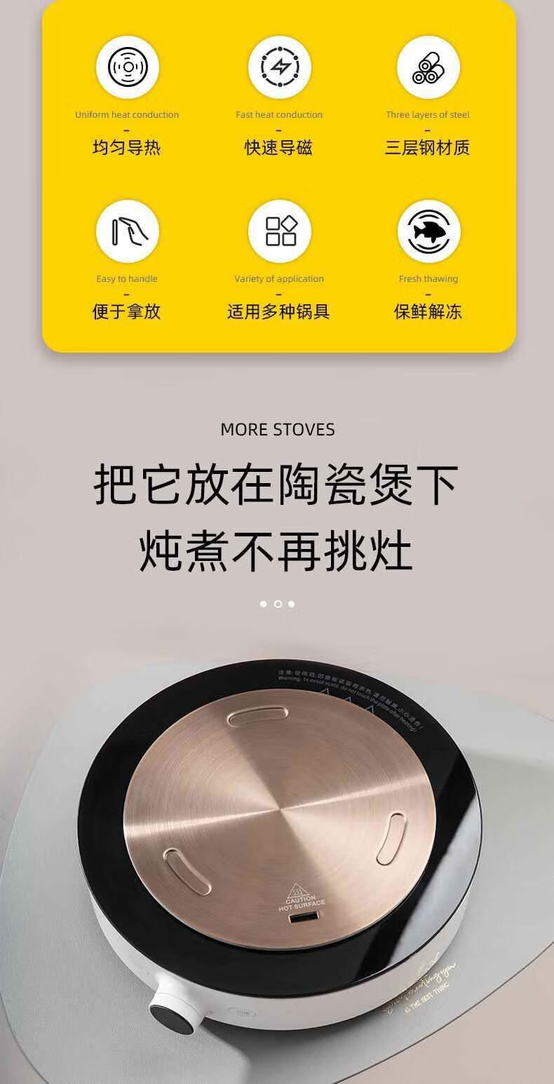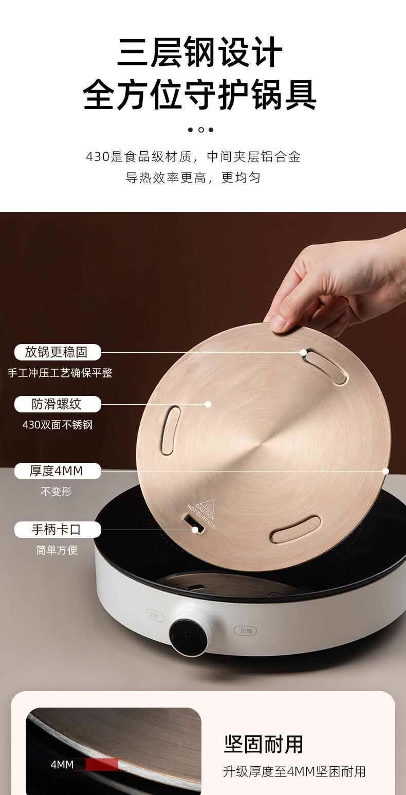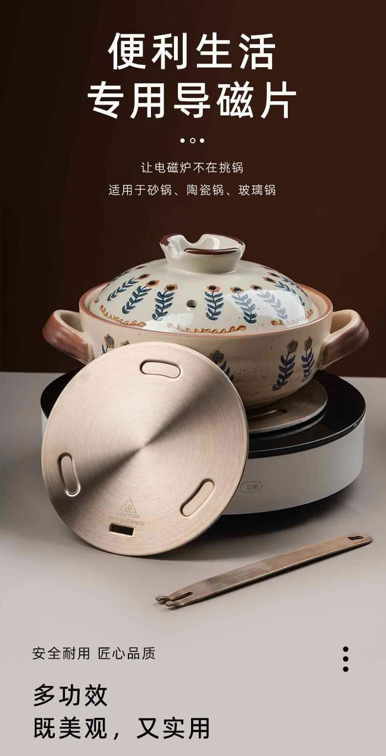 Sanqihu induction cooker magnetic conductive plate thermal conductive plate casserole thermal conductive sheet heating plate glass pot stainless steel 24cm rose gold thickened upgrade
